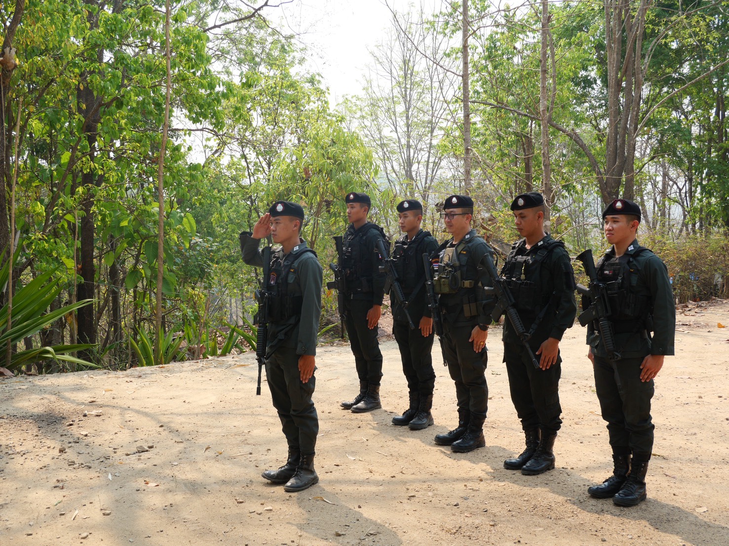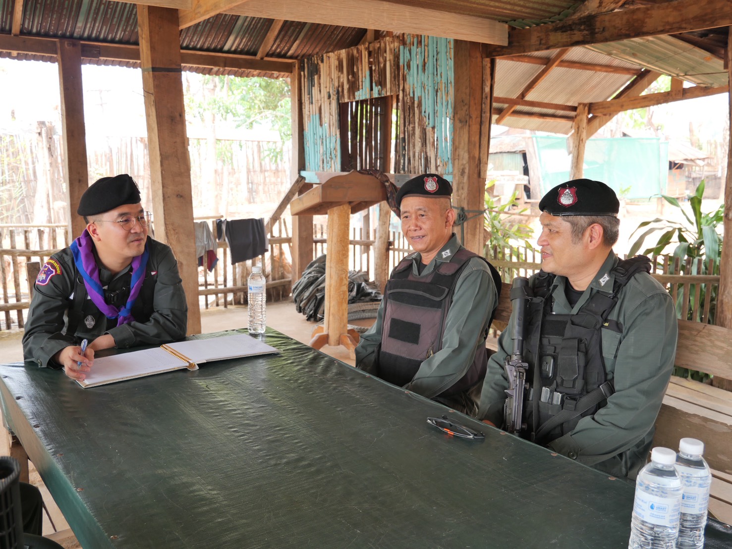 เวลา 10.00 น. ตรวจเยี่ยมฐานปฏิบัติการบ้านแม่หละยาง หมู่ 2 ต.แม่หละ อ.ท่าสองยาง จว.ตาก พบ ด.ต.ราเชนทร์ หล่ายพันธ์ รอง ผบ.มว.ตชด.3442 พร้อมกำลังพลให้การต้อนรับ