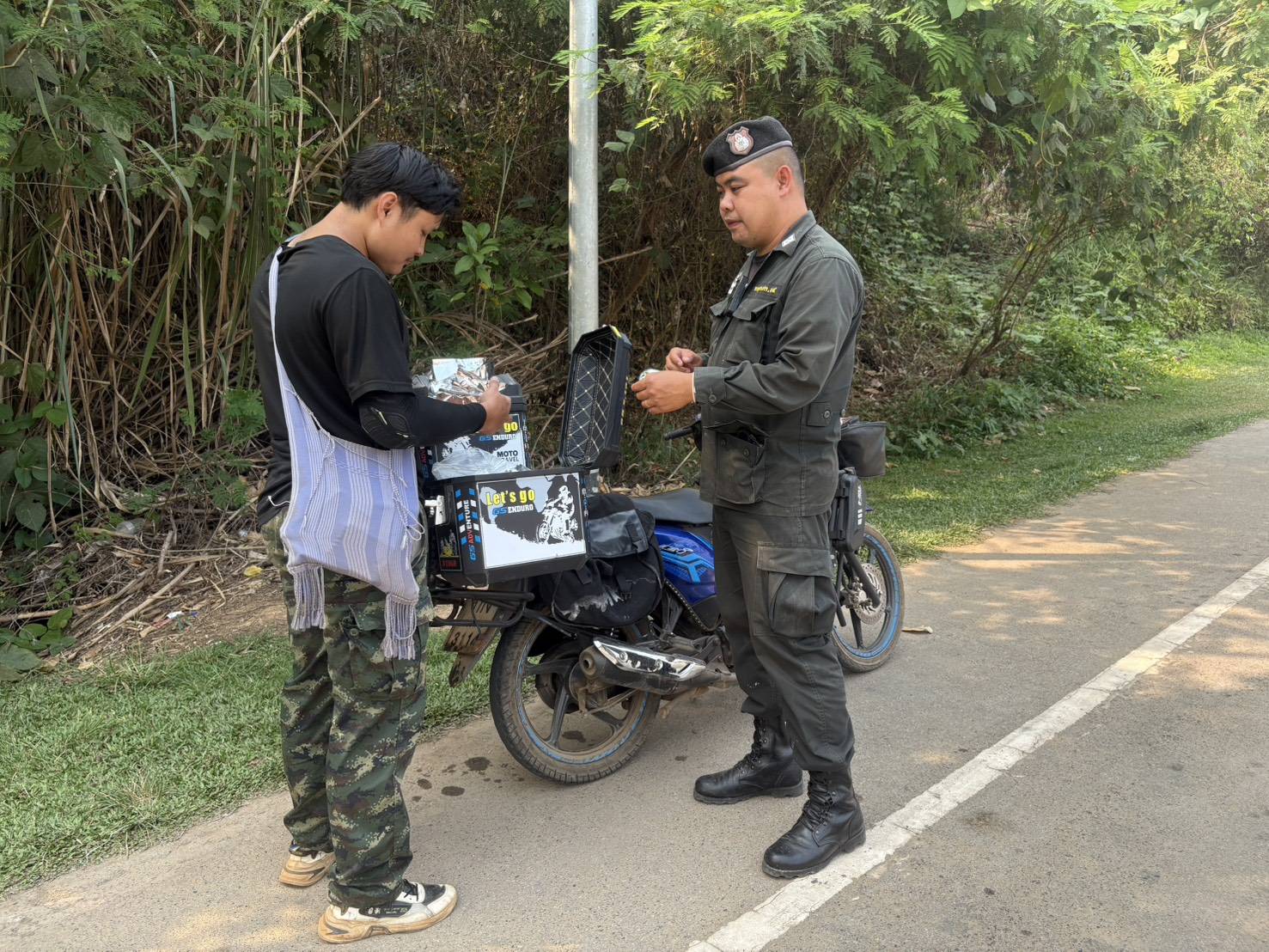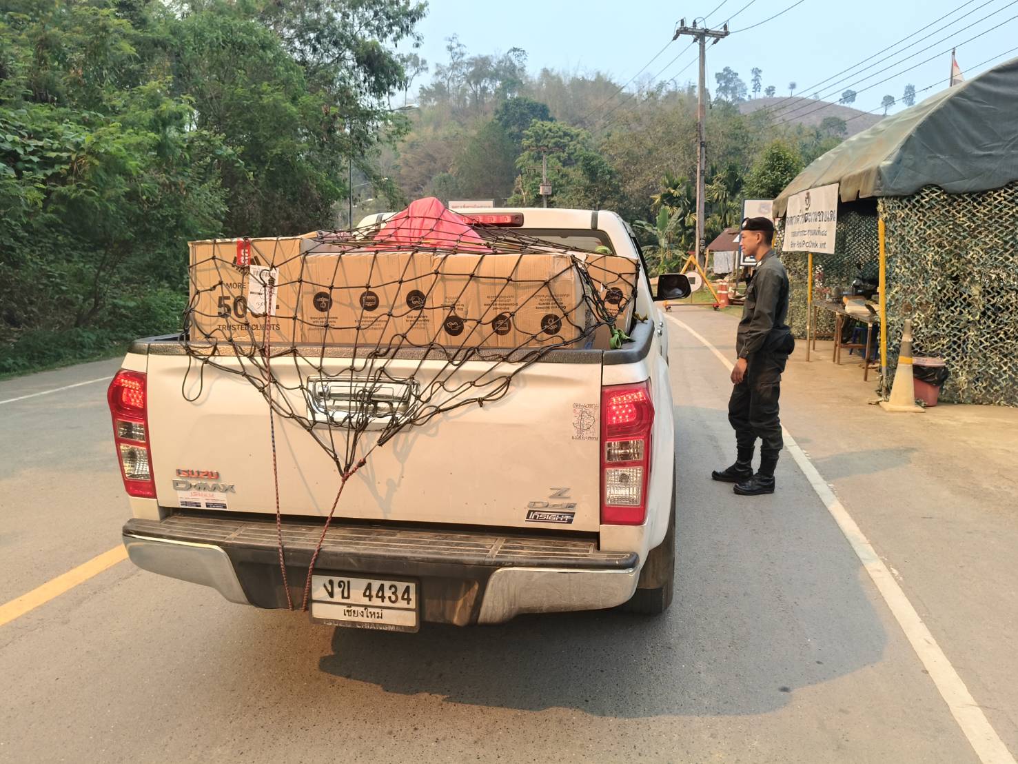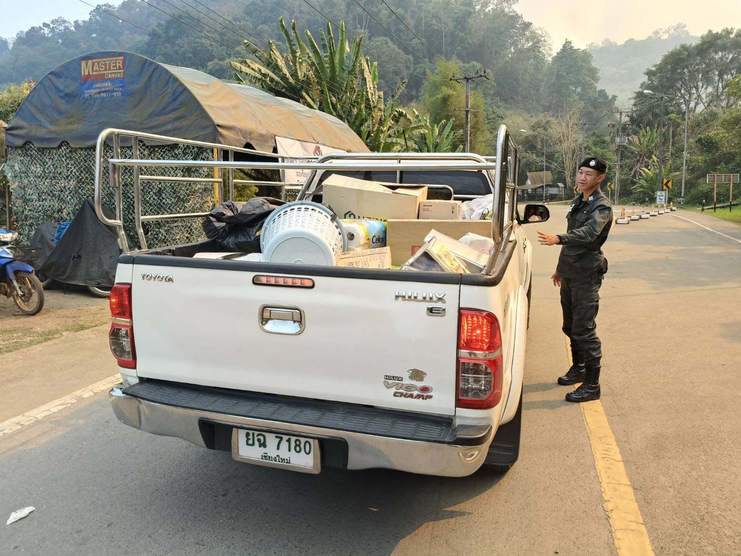เมื่อ 010800-020759 เม.ย.69 ชฝต.บ้านแม่อมกิจัด กพ 3 นายทำการตั้งจุดตรวจ-จุดสกัด บนทางหลวงหมายเลข 105 (แม่สอด-แม่สะเรียง) บริเวณหน้าจุดตรวจบ้านแม่อมกิ ม.4 ต.แม่วะหลวง อ.ท่าสองยาง จ.ตาก เพื่อป้องกันปราบปรามอาชญากรรมสำคัญ การลักลอบลำเลียงยาเสพติด สารตั้งต้นและเคมีภัณฑ์,การปราบปรามคนร้ายข้ามชาติและเข้าเมืองโดยผิดกฎหมาย ประชาสัมพันธ์ให้ประชาชนได้รับทราบ