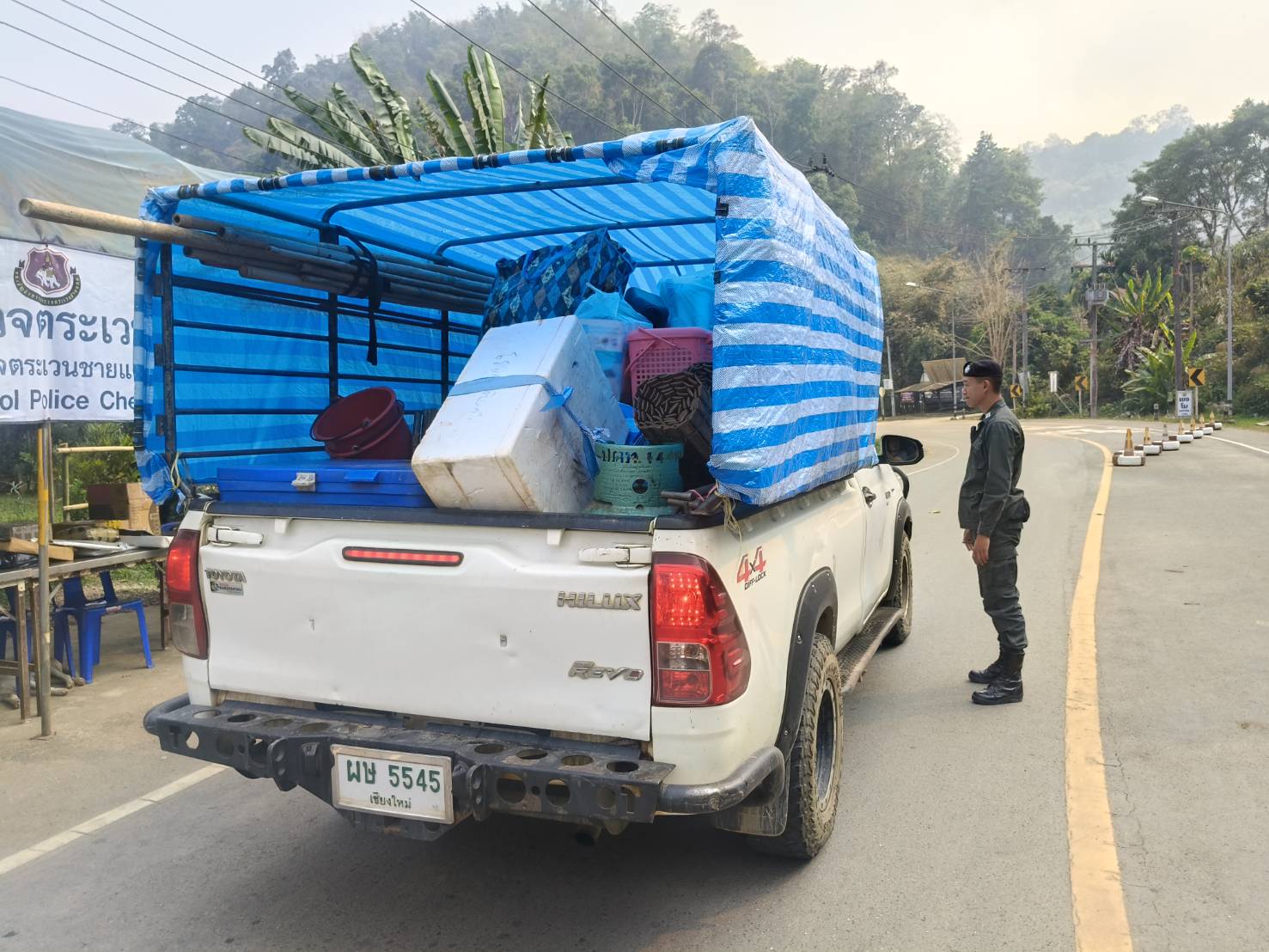 ผลการ ปบ.ยานพาหนะที่สัญจรผ่านไป-มา ให้ความร่วมมือในการตรวจค้นเป็นอย่างดี ทำการตรวจค้น