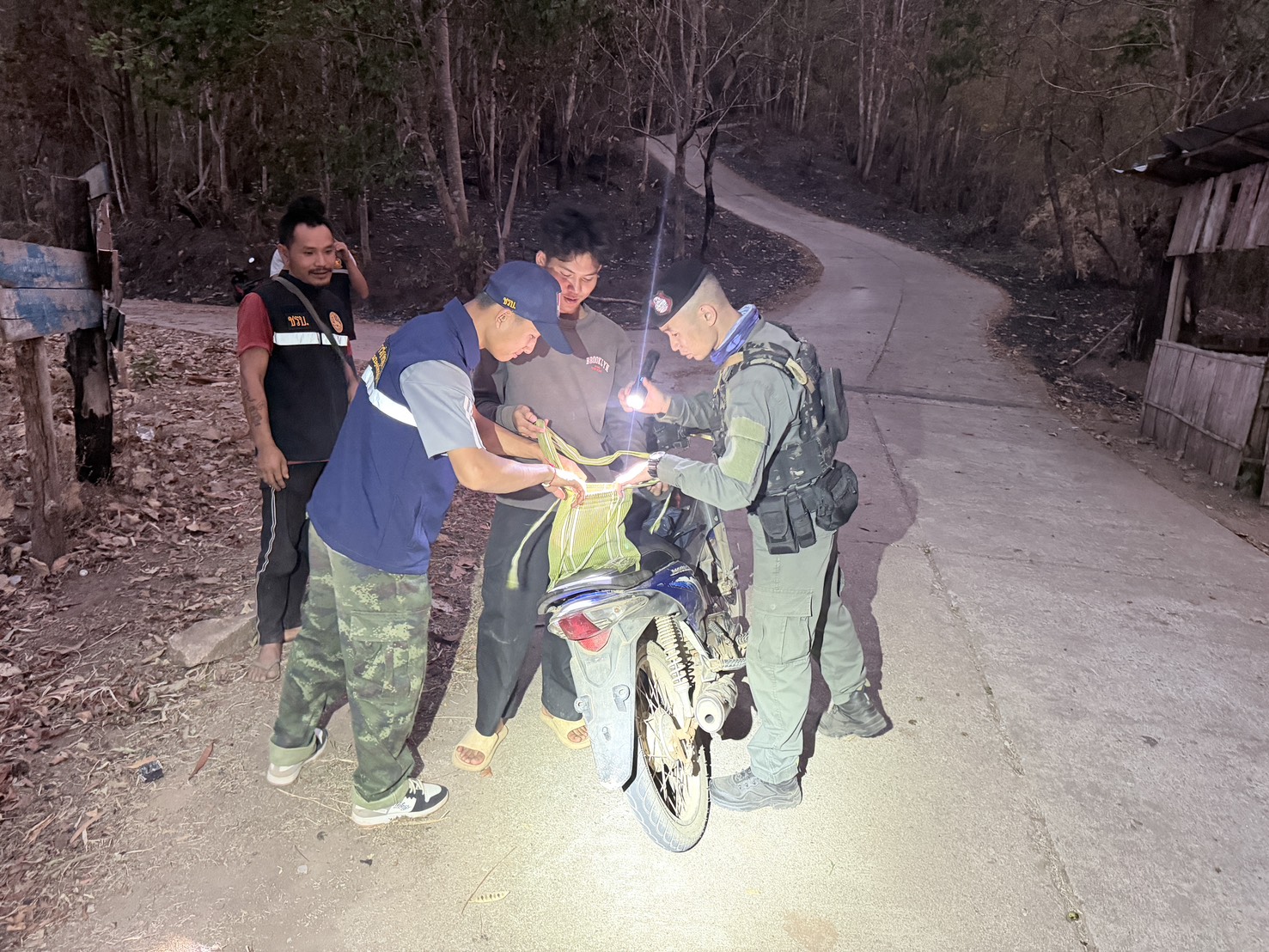 เมื่อ 041700 เม.ษ.69 มว.ตชด.3444 จัดให้ จ.ส.ต.วารินทร์ ยาสมุทร์ พร้อม กพ.มว.รวม 3 นาย ร่วมกับผู้ใหญ่บ้านและชรป.ม.8 ตั้งจุดตรวจ/จุดสกัด บริเวณทางเข้าหมู่บ้าน บ.แม่สองน้อย ม.8 ต.แม่อุสุ อ.ท่าสองยาง จ.ตาก