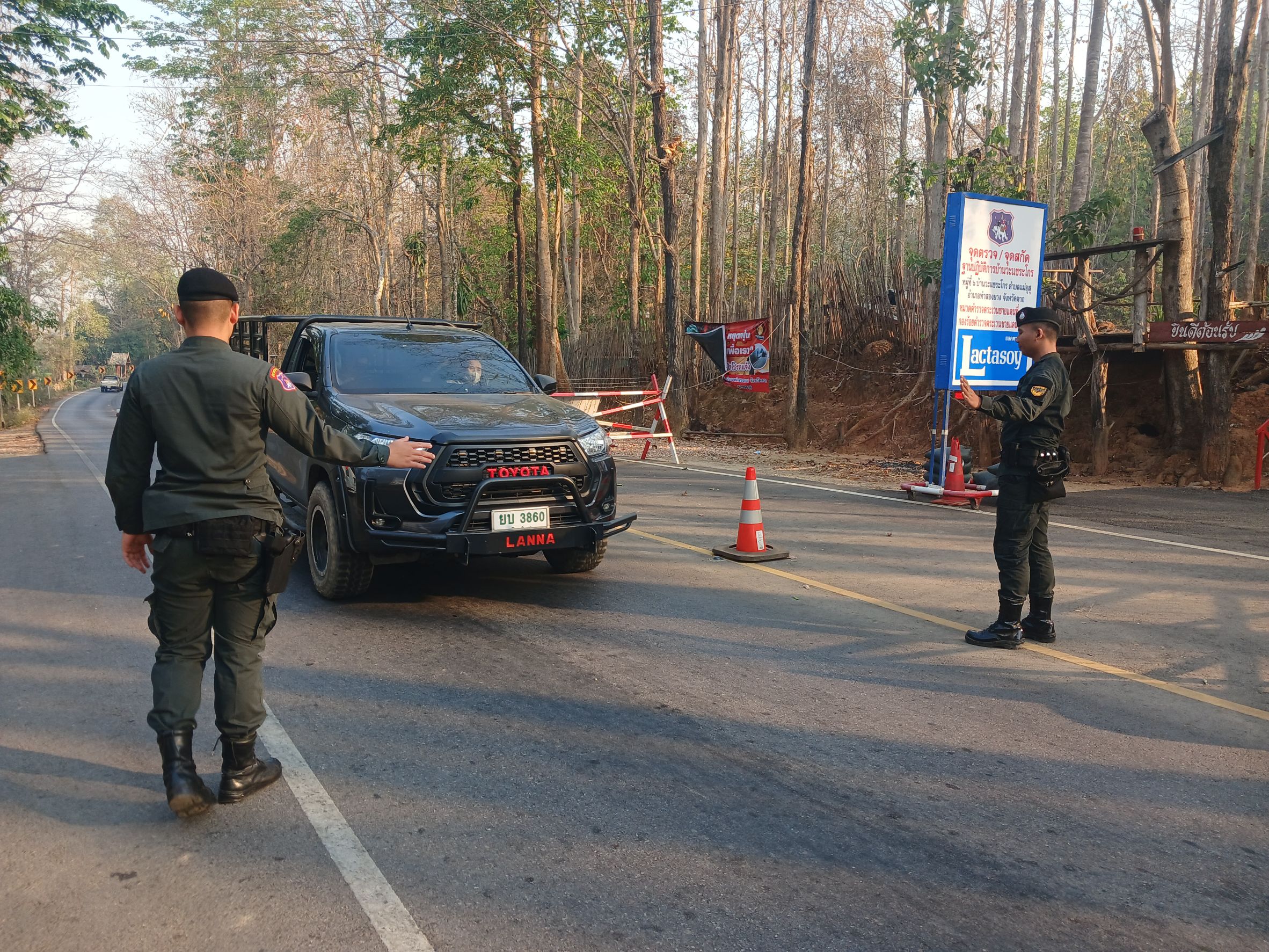 เมื่อ 090730 - 090900 เม.ย.69 มว.ตชด.3444 จัดให้ จ.ส.ต.เอกชัย คำสินธุ์ พร้อมกพ.ใน มว.รวม 4 นาย ตั้งจุดตรวจ/จุดสกัด บนทางหลวงหมายเลข 105 (แม่สอด-แม่สะเรียง) บริเวณหน้าฐานปฏิบัติการบ้านวะแขระโกร ม.6 ต.แม่อุสุ อ.ท่าสองยาง จ.ตาก เพื่อป้องกันปราบปรามอาชญากรรมสำคัญ การลักลอบลำเลียงยาเสพติด สารตั้งต้นและเคมีภัณฑ์,การปราบปรามคนร้ายข้ามชาติและเข้าเมืองโดยผิดกฎหมาย ป้องกันและควบคุมการลักลอบเคลื่อนย้ายสัตว์และซากสัตว์