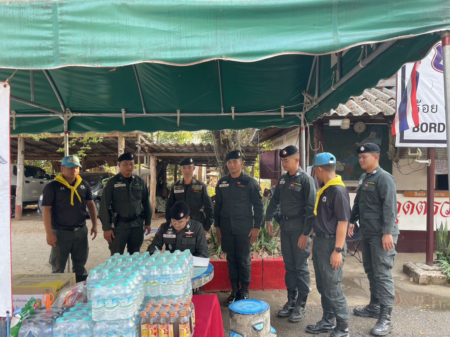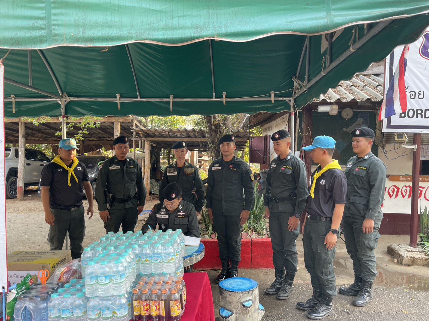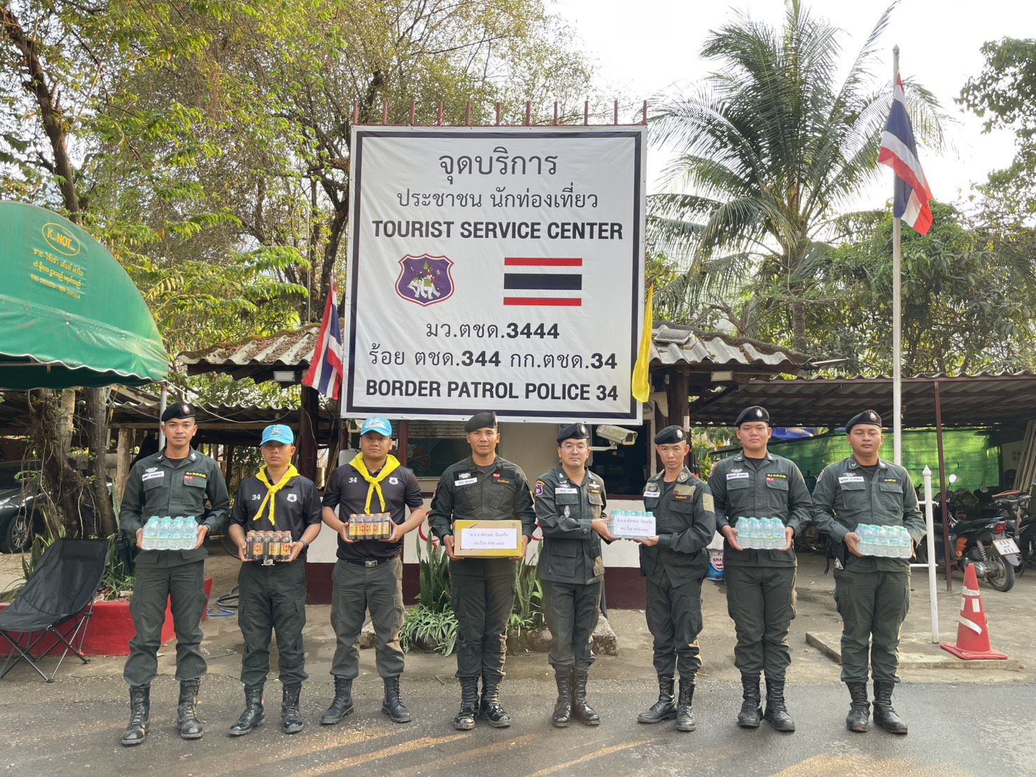 และได้มอบน้ำดื่มและเครื่องดื่มชูกำลังให้แก่กำลังพล เพื่อเป็นขวัญกำลังใจในการปฏิบัติหน้าที่