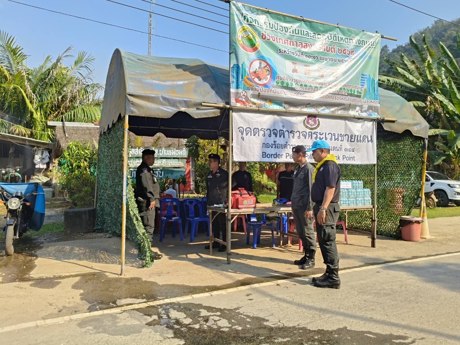เมื่อ 111600 เม.ย. 69 พ.ต.ต.พัชรพล อินเตจ๊ะ ผบ.ร้อย ตชด.344 เดินทางมาตรวจเยี่ยม จุดตรวจ/จุดบริการประชาชน ในช่วงเทศกาลสงกรานต์ 2569 ณ จุดตรวจบ้านแม่อมกิ ม.4 ต.แม่วะหลวง อ.ท่าสองยางฯ ด้วยรถยนต์ โตโยต้ารีโว่ หมายเลขทะเบียน กท 2944 ตาก