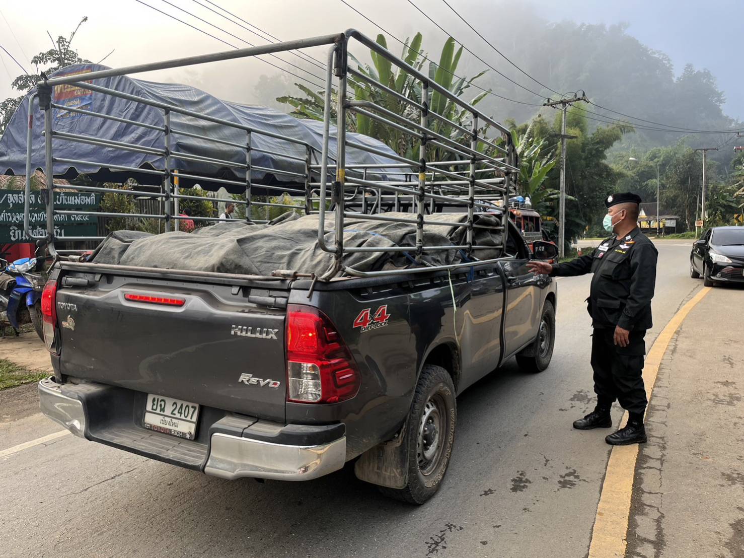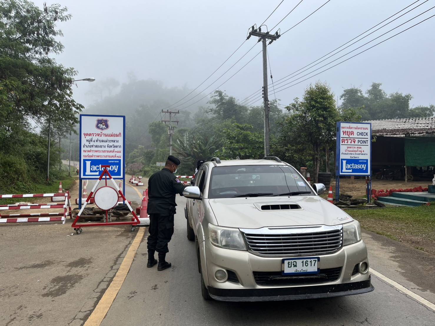 เมื่อ 070800-080759 ธ.ค. 66 ชฝต.บ้านแม่อมกิจัด กพ. 3 นายทำการตั้งจุดตรวจ-จุดสกัด บนทางหลวงหมายเลข 105 (แม่สอด-แม่สะเรียง) บริเวณหน้าจุดตรวจบ้านแม่อมกิ ม.4 ต.แม่วะหลวง อ.ท่าสองยาง จ.ตาก เพื่อตรวจค้นการลักลอบขนสิ่งผิดกฏหมาย สกัดกั้นการลักลอบเข้าเมืองโดยผิดกฏหมายของแรงงานต่างด้าว