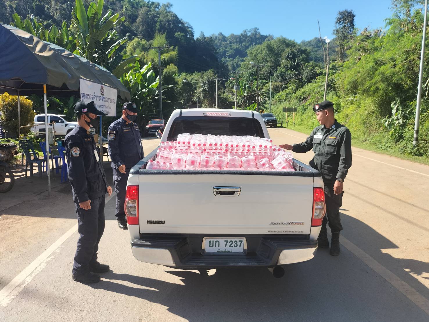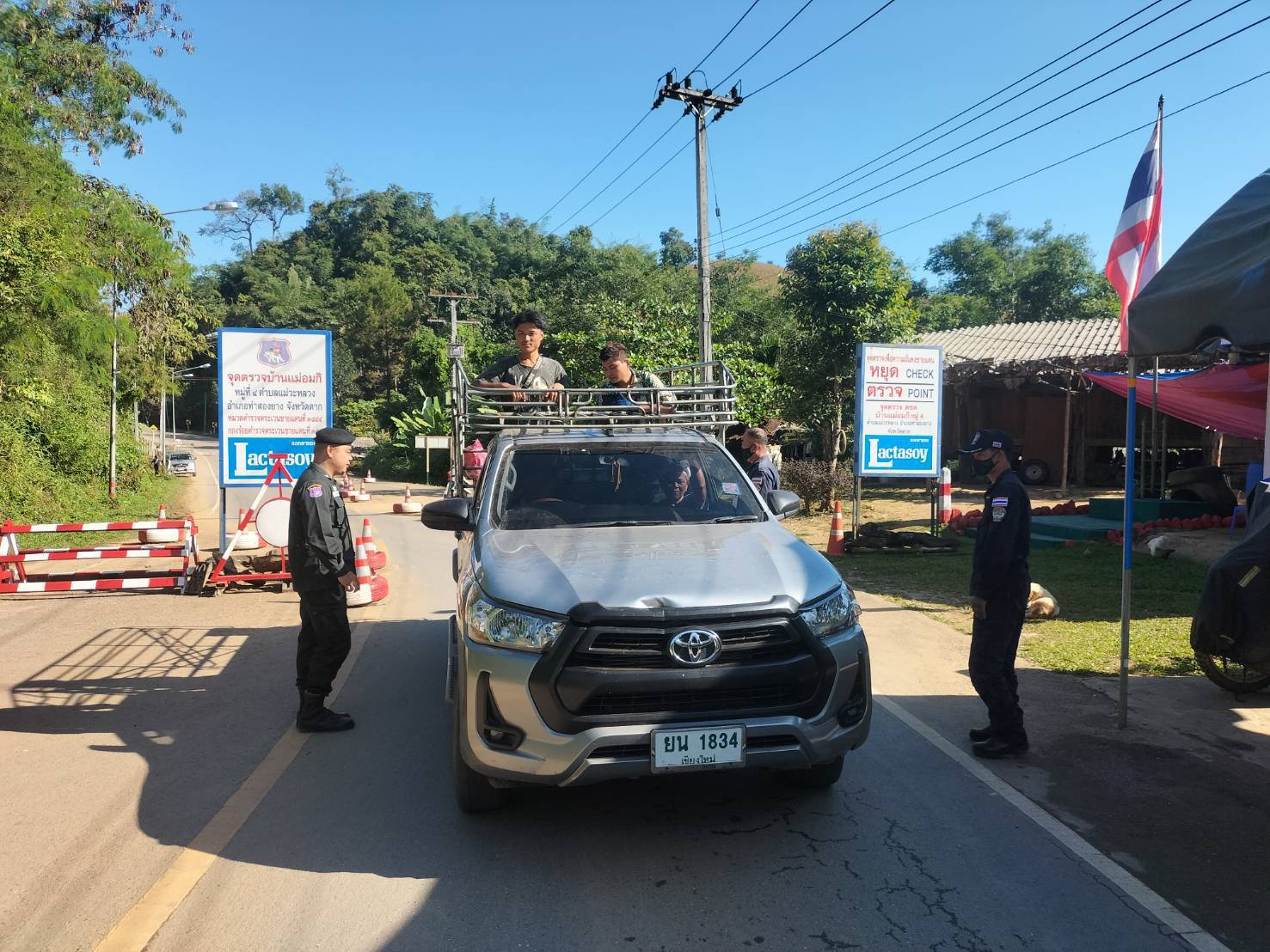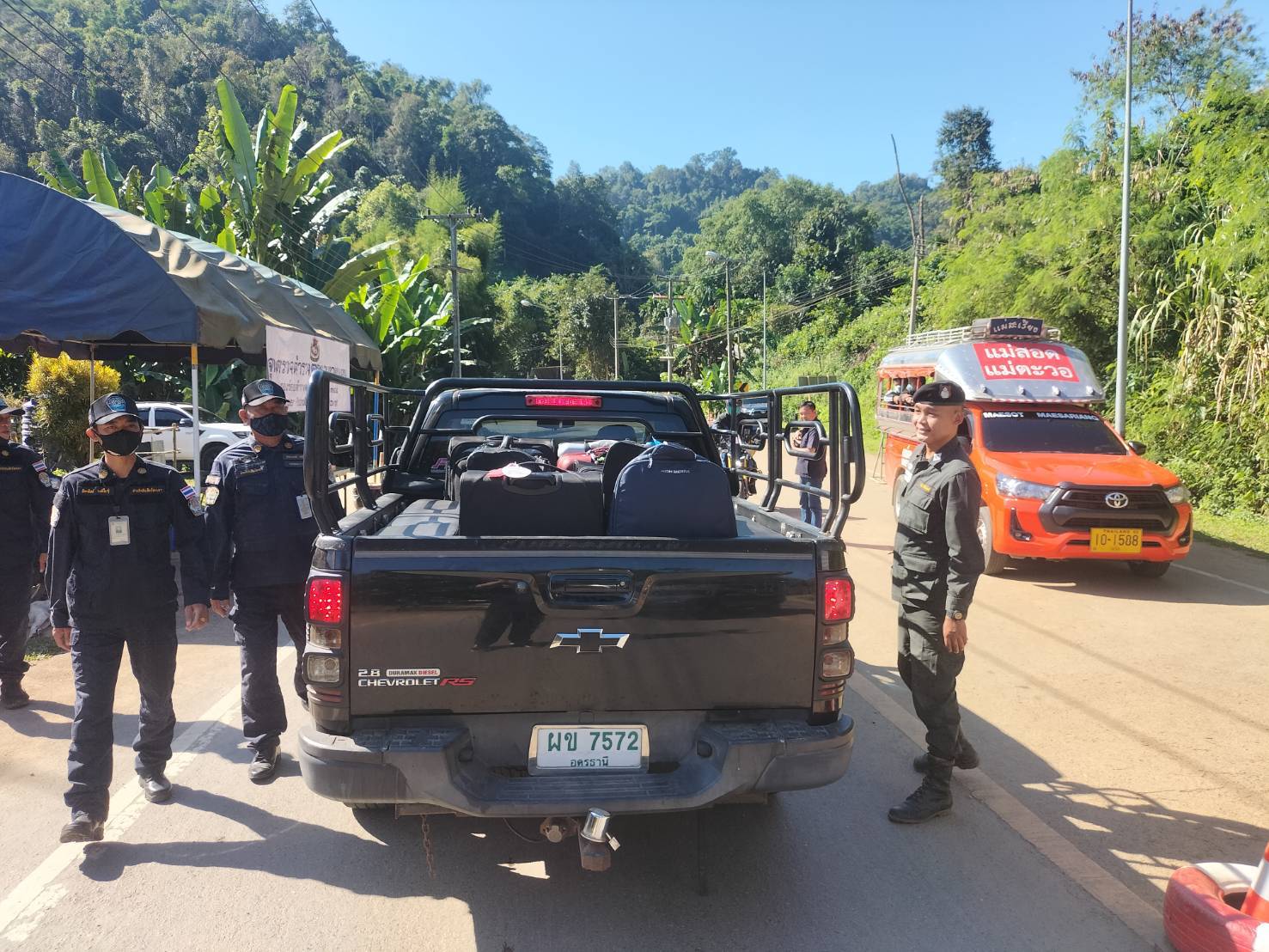 เมื่อ 280800 - 290759 พ.ย.67 ชฝต.บ้านแม่อมกิ​จัด กพ.3 นาย ร่วมกับ เจ้าหน้าที่สารวัตรปศุสัตว์ จ.พะเยา ทำการตั้งจุดตรวจ-จุดสกัด บนทางหลวงหมายเลข 105 (แม่สอด-แม่สะเรียง) บริเวณหน้าจุดตรวจบ้านแม่อมกิ ม.4 ต.แม่วะหลวง อ.ท่าสองยาง จ.ตาก เพื่อตรวจค้นการลักลอบขนสิ่งผิดกฏหมาย สกัดกั้นการลักลอบเข้าเมืองโดยผิดกฏหมายของแรงงานต่างด้าว และตรวจสอบ ป้องกันและควบคุมการลักลอบเคลื่อนย้ายสัตว์และซากสัตว์