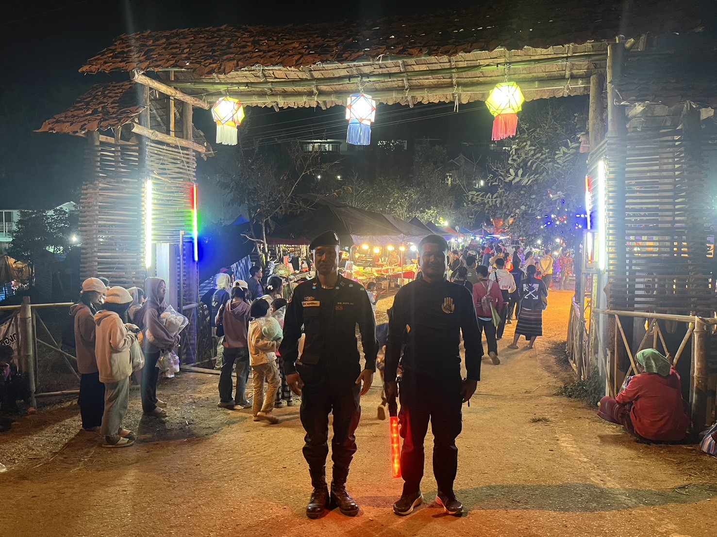 เมื่อ 082030 ก.พ.68 ชฝต บ้านแม่อมกิ จัด กพ.3 นาย ร่วมกับ ตำรวจภูธร สภ.แม่เมย จนท.ทหารพราน 3508 ร่วมกันอำนวยความสะดวกและ รปภ. ให้กับประชาชนที่มาเที่ยวงานสืบสานประเพณีปีใหม่กะเหรี่ยง (นิเทาะซอ)ประจำปี 2568 บริเวณสนามกีฬาโรงเรียนบ้านแม่อมกิ ม.4 ต.แม่วะหลวง อ.ท่าสองยาง จ.ตาก ภายในงานมีกิจกรรมการประกวดร้องเพลง ประกวดธิดาบ้านไพรและการแข่งขันชกมวย มีประชาชนมาเที่ยวงานประมาณ 800 คน