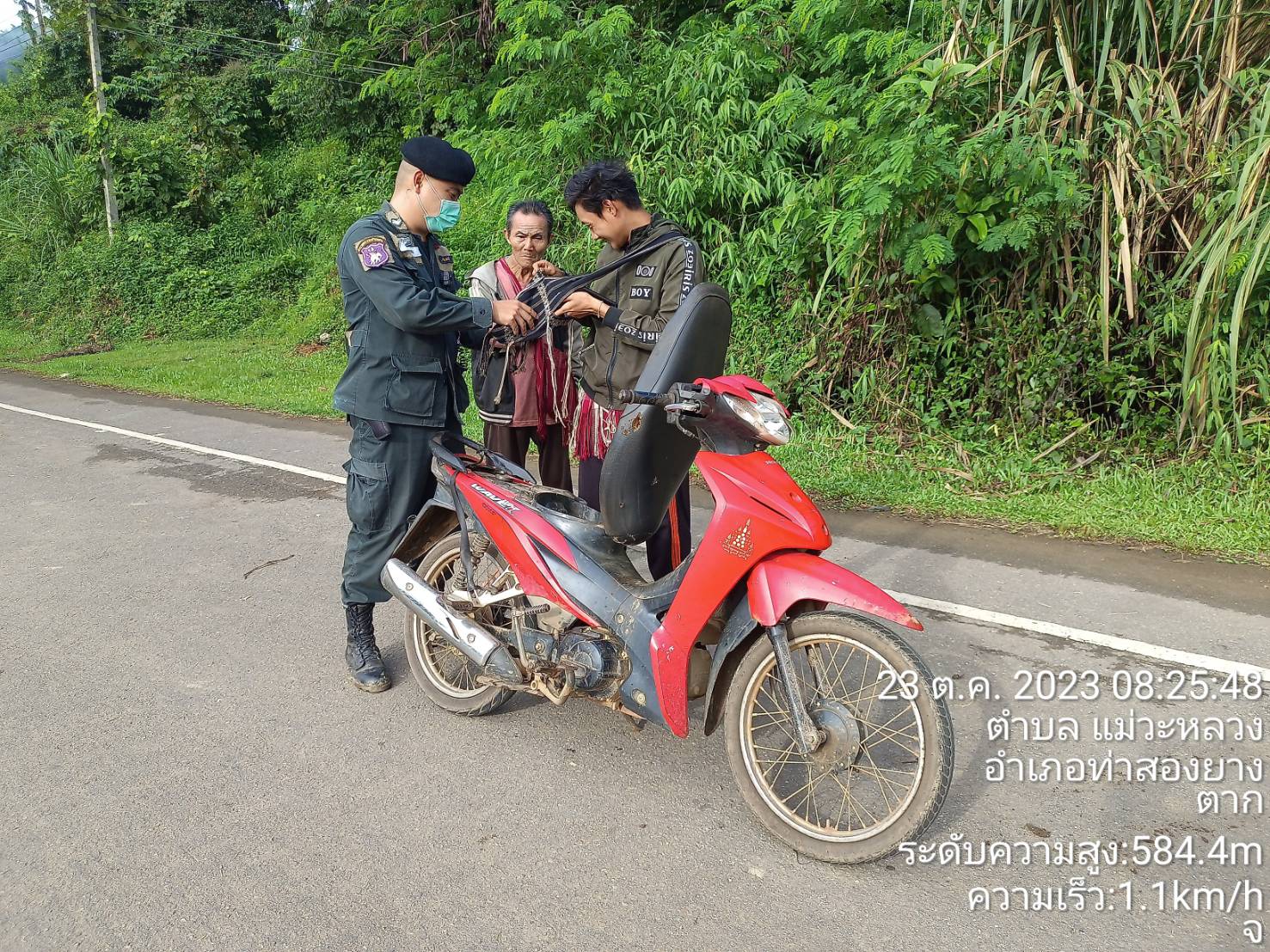 เมื่อ 031830 - 032000 พ.ค.67 มว.ตชด.3443 จัดให้ ส.ต.อ.จักรกฤษณ์ ซ้อนเพชร พร้อม กพ.รวม 3 นาย ตั้งจุดตรวจ/จุดสกัด หน้าฐาน ปบ.การฯ ม.2 ต.แม่ต้าน อ.ท่าสองยาง จว.ตาก เพื่อป้องกัน/ป้องปราม/ตรวจสอบ การลักลอบ เข้า-ออก ของบุคคล/พาหนะ/สิ่งของ/พืชผลทางการเกษตร, ขบวนการนำพาแรงงานต่างด้าวหลบหนีเข้าเมืองโดยผิดกฎหมาย…