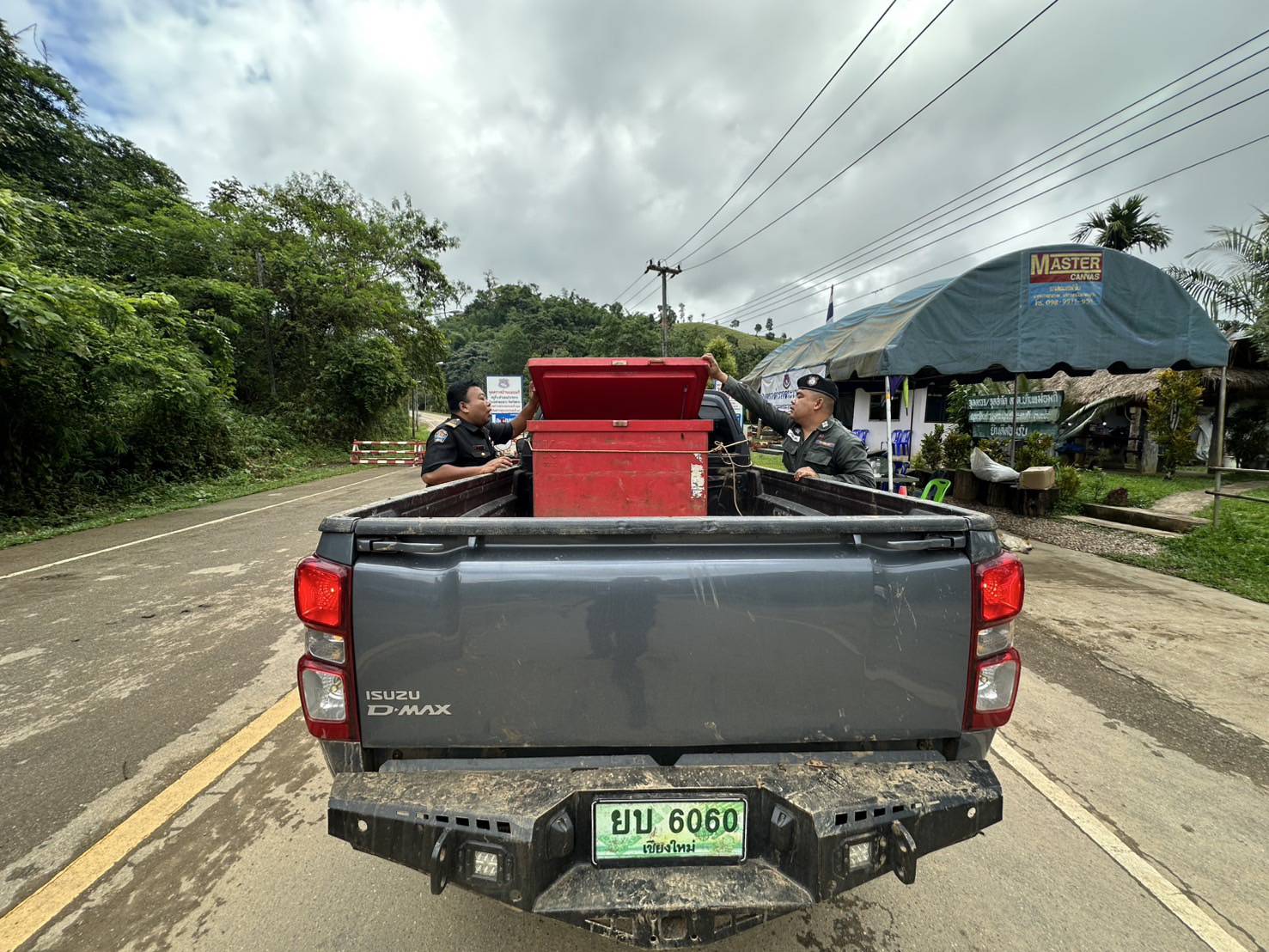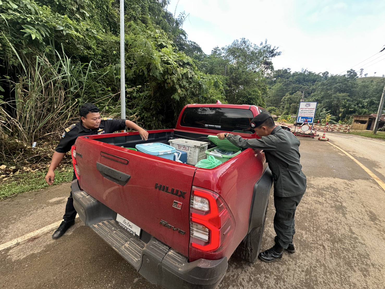 เมื่อ 040800 - 050759 ส.ค.68 ชฝต.บ้านแม่อมกิ​จัด กพ.3 นาย ร่วมกับ เจ้าหน้าที่สารวัตรปศุสัตว์ จ.ตรัง ทำการตั้งจุดตรวจ-จุดสกัด บนทางหลวงหมายเลข 105 (แม่สอด-แม่สะเรียง) บริเวณหน้าจุดตรวจบ้านแม่อมกิ ม.4 ต.แม่วะหลวง อ.ท่าสองยาง จ.ตาก เพื่อป้องกันปราบปรามอาชญากรรมสำคัญ การลักลอบลำเลียงยาเสพติด สารตั้งต้นและเคมีภัณฑ์,การปราบปรามคนร้ายข้ามชาติและเข้าเมืองโดยผิดกฎหมาย ป้องกันและควบคุมการลักลอบเคลื่อนย้ายสัตว์และซากสัตว์ ประชาสัมพันธ์ให้ประชาชนได้รับทราบ