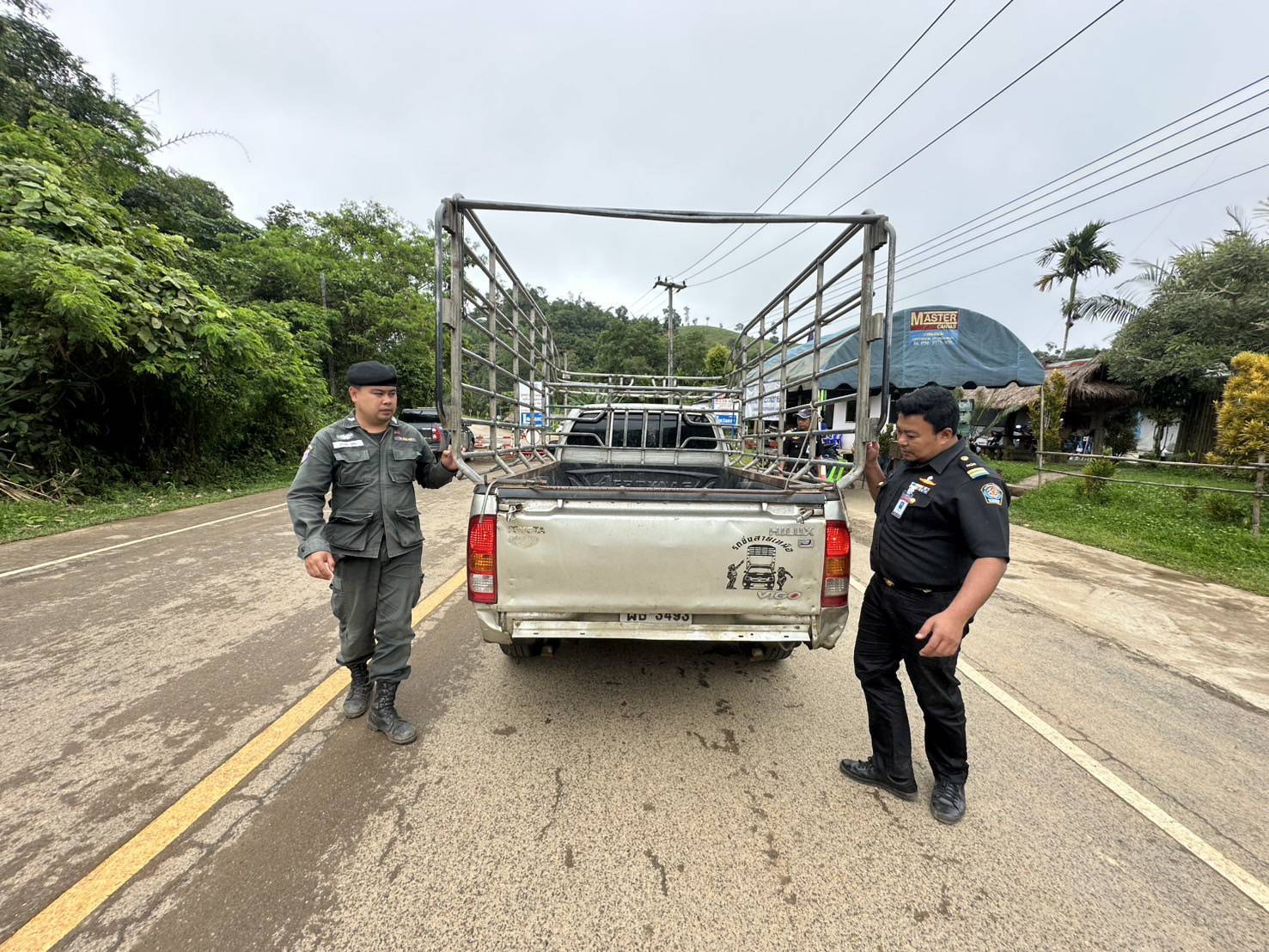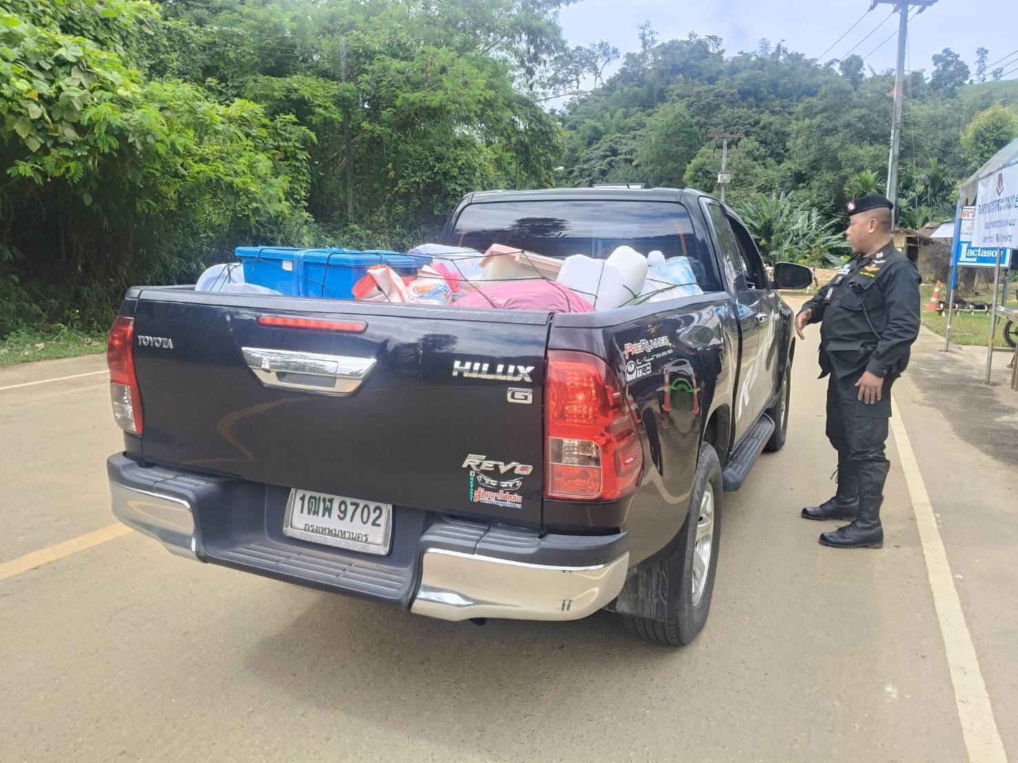 เมื่อ 140800-150759 ส.ค.68 ชฝต.บ้านแม่อมกิจัด กพ 3 นาย ร่วมกับ เจ้าหน้าที่สารวัตรปศุสัตว์ จ.ตรัง ทำการตั้งจุดตรวจ-จุดสกัด บนทางหลวงหมายเลข 105 (แม่สอด-แม่สะเรียง) บริเวณหน้าจุดตรวจบ้านแม่อมกิ ม.4 ต.แม่วะหลวง อ.ท่าสองยาง จ.ตาก เพื่อป้องกันปราบปรามอาชญากรรมสำคัญ การลักลอบลำเลียงยาเสพติด สารตั้งต้นและเคมีภัณฑ์,การปราบปรามคนร้ายข้ามชาติและเข้าเมืองโดยผิดกฎหมาย ป้องกันและควบคุมการลักลอบเคลื่อนย้ายสัตว์และซากสัตว์ ประชาสัมพันธ์ให้ประชาชนได้รับทราบ