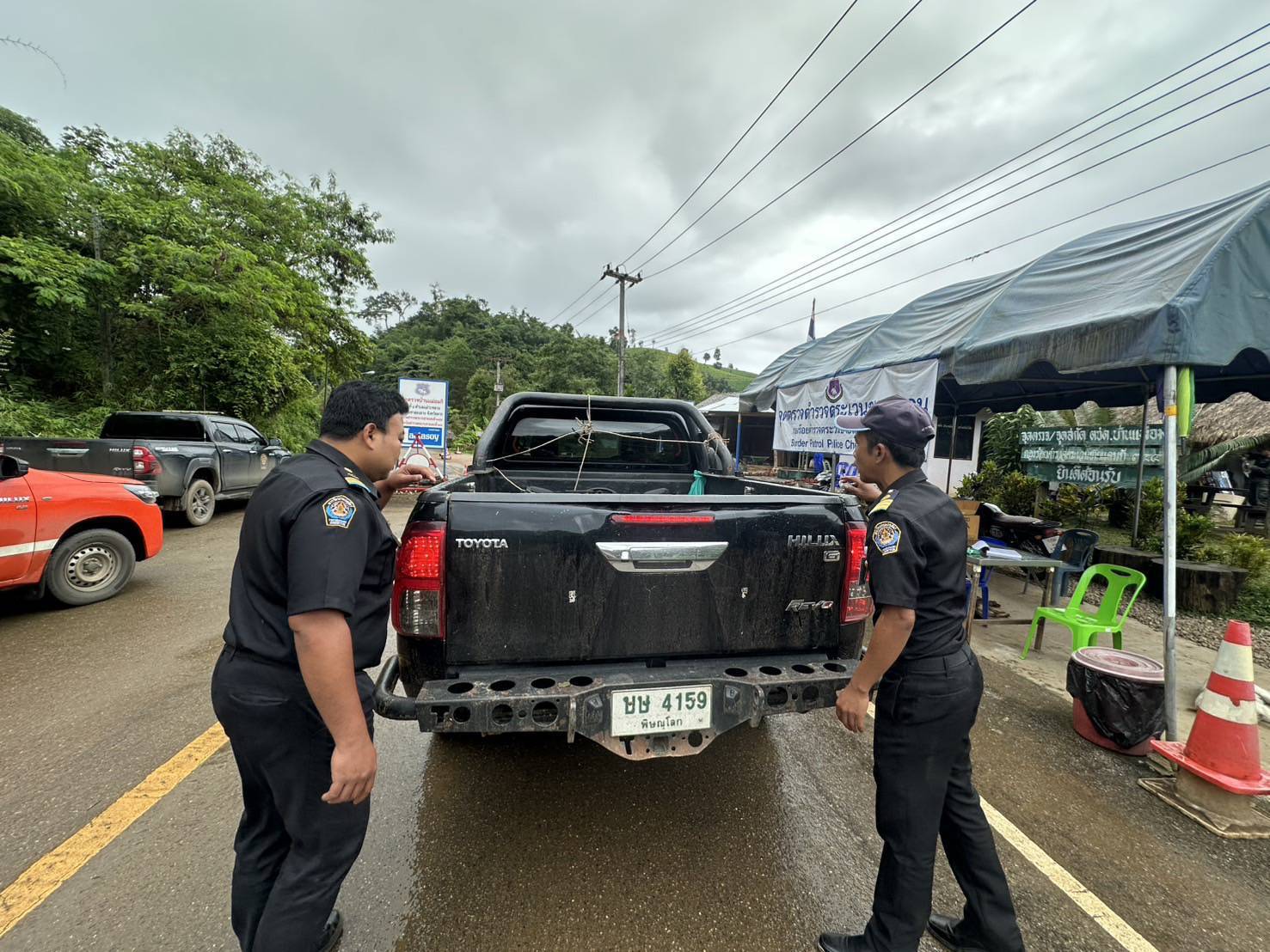 เมื่อ 170800-170759 ส.ค.68 ชฝต.บ้านแม่อมกิจัด กพ ๓ นาย ร่วมกับ เจ้าหน้าที่สารวัตรปศุสัตว์ จ.ตรัง ทำการตั้งจุดตรวจ-จุดสกัด บนทางหลวงหมายเลข 105 (แม่สอด-แม่สะเรียง) บริเวณหน้าจุดตรวจบ้านแม่อมกิ ม.4 ต.แม่วะหลวง อ.ท่าสองยาง จ.ตาก เพื่อป้องกันปราบปรามอาชญากรรมสำคัญ การลักลอบลำเลียงยาเสพติด สารตั้งต้นและเคมีภัณฑ์,การปราบปรามคนร้ายข้ามชาติและเข้าเมืองโดยผิดกฎหมาย ป้องกันและควบคุมการลักลอบเคลื่อนย้ายสัตว์และซากสัตว์ ประชาสัมพันธ์ให้ประชาชนได้รับทราบ
