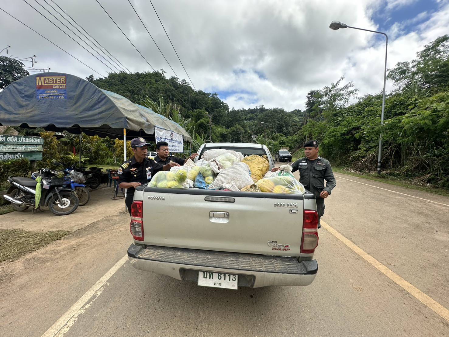 เมื่อ 190800 - 200759 ส.ค.68 ชฝต.บ้านแม่อมกิ​จัด กพ.3 นาย ร่วมกับ เจ้าหน้าที่สารวัตรปศุสัตว์ จ.ตรัง ทำการตั้งจุดตรวจ-จุดสกัด บนทางหลวงหมายเลข 105 (แม่สอด-แม่สะเรียง) บริเวณหน้าจุดตรวจบ้านแม่อมกิ ม.4 ต.แม่วะหลวง อ.ท่าสองยาง จ.ตาก เพื่อป้องกันปราบปรามอาชญากรรมสำคัญ การลักลอบลำเลียงยาเสพติด สารตั้งต้นและเคมีภัณฑ์,การปราบปรามคนร้ายข้ามชาติและเข้าเมืองโดยผิดกฎหมาย ป้องกันและควบคุมการลักลอบเคลื่อนย้ายสัตว์และซากสัตว์ ประชาสัมพันธ์ให้ประชาชนได้รับทราบ