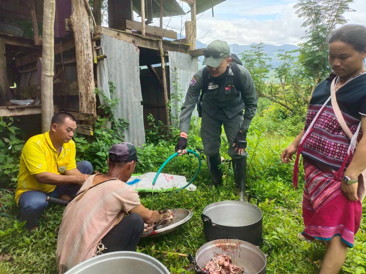 ห้วงวันที่ 21-22 ส.ค.68  ชุดปฏิบัติการ ตชด. กองร้อยที่ 344 นำโดย ร.ต.ท.สมจิตต์ สายชลคีรี หัวหน้าชุดปฏิบัติการ พร้อมกำลังพลรวม 5 นาย ได้เดินทางเข้าพื้นที่เป้าหมายเพื่อดำเนินการตามโครงการป้องกันและยับยั้งการแพร่กระจายพื้นที่ปลูกพืชเสพติด (ฝิ่น) ปี 2568 ในพื้นที่ บ้านปอเล้อ,บ้านทีโบ้คี,บ้านเจาะเก้ปู ต.แม่สอง อ.ท่าสองยาง จ.ตาก เพื่อการป้องกันและแก้ไขปัญหาการลักลอบปลูกฝิ่น และขับได้เคลื่อนการดำเนินงานกุญแจ 9 ดอก โดยได้พบปะพูดคุยกับผู้นำผู้นำหมู่บ้าน ประชาชน เยาวชน แจกจ่ายยาเวชภัณฑ์ประจำบ้าน ให้กับประชาชน ติดป้ายไวนิลกฎระเบียบหมู่บ้านและป้ายไวนิลประวัติหมู่บ้าน บ้านจอเก้ปู และได้ร่วมกิจกรรมวันแม่และงานประเพณีมัดมือกับชาวบ้าน