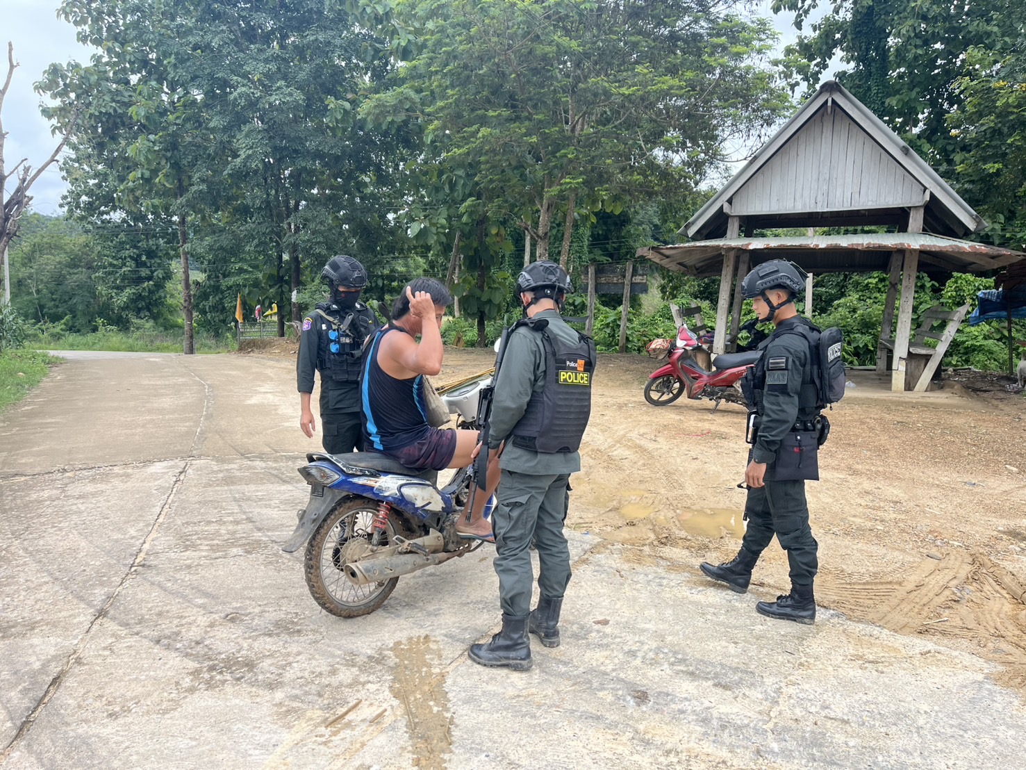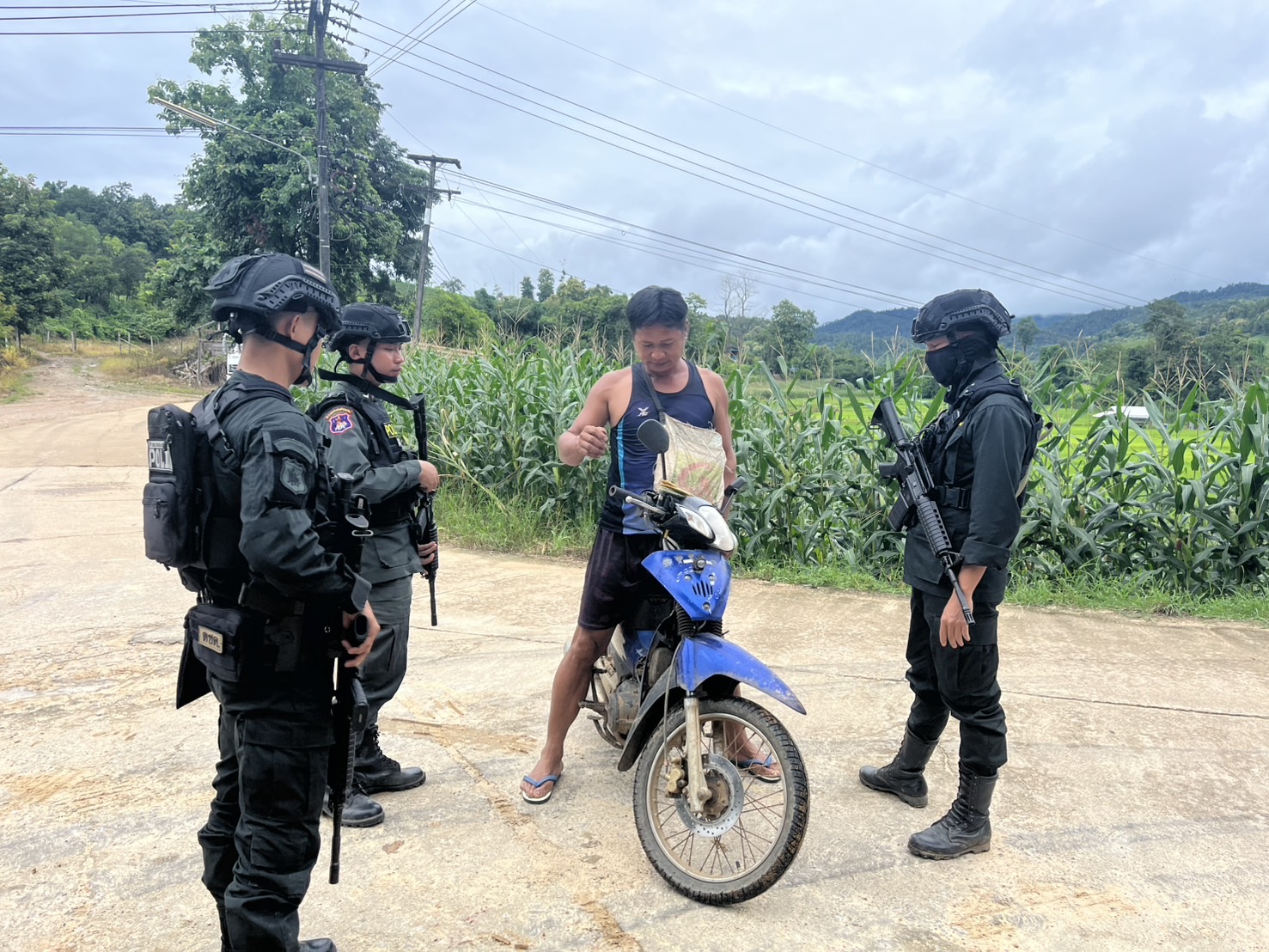 เมื่อ 261430 ส.ค. 68 มว.ตชด.3443 จัดให้ จ.ส.ต.ศิริศักดิ์ เสียงสนั่น  พร้อม กพ. รวม 4 นาย ตั้งจุดสกัดบ้านเเกลมือโจ๊ะและพบปะเยี่ยมเยือน ปชช.ใน พท.รับผิดชอบ/แจกจ่ายยาเวชภัณฑ์ ใน พท. ม.8ต. แม่ต้าน อ.ท่าสองยาง จว.ตาก พิกัด 47QMV 2484603527 พร้อม ออกตรวจ ใน พท.ฯ ม.2,ม.8