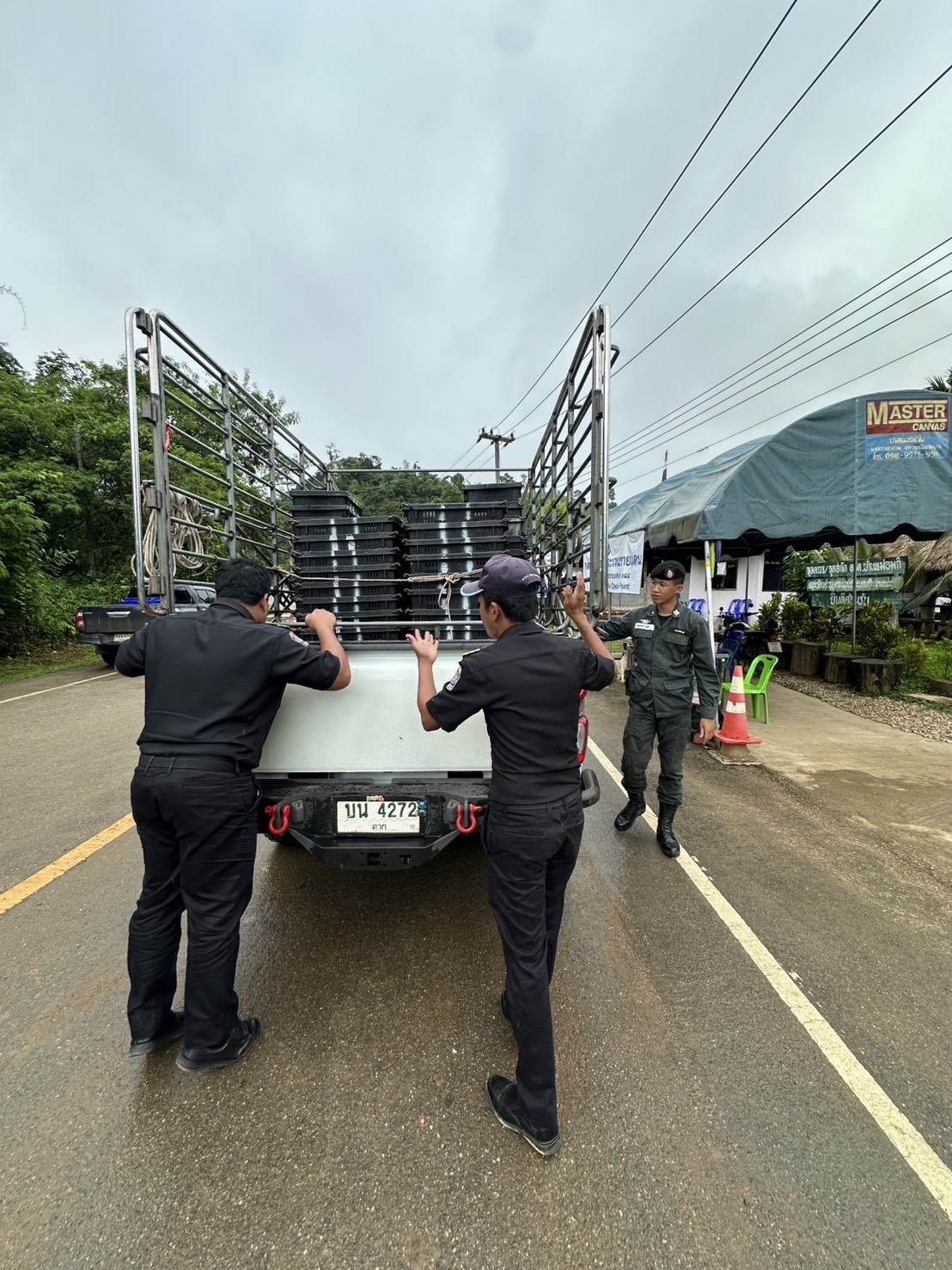 เมื่อ 260800 - 270759 ส.ค. 68 ชฝต.บ้านแม่อมกิ​จัด กพ.3 นาย ร่วมกับ เจ้าหน้าที่สารวัตรปศุสัตว์ จ.ตรัง ทำการตั้งจุดตรวจ-จุดสกัด บนทางหลวงหมายเลข 105 (แม่สอด-แม่สะเรียง) บริเวณหน้าจุดตรวจบ้านแม่อมกิ ม.4 ต.แม่วะหลวง อ.ท่าสองยาง จ.ตาก เพื่อป้องกันปราบปรามอาชญากรรมสำคัญ การลักลอบลำเลียงยาเสพติด สารตั้งต้นและเคมีภัณฑ์,การปราบปรามคนร้ายข้ามชาติและเข้าเมืองโดยผิดกฎหมาย ป้องกันและควบคุมการลักลอบเคลื่อนย้ายสัตว์และซากสัตว์ ประชาสัมพันธ์ให้ประชาชนได้รับทราบ