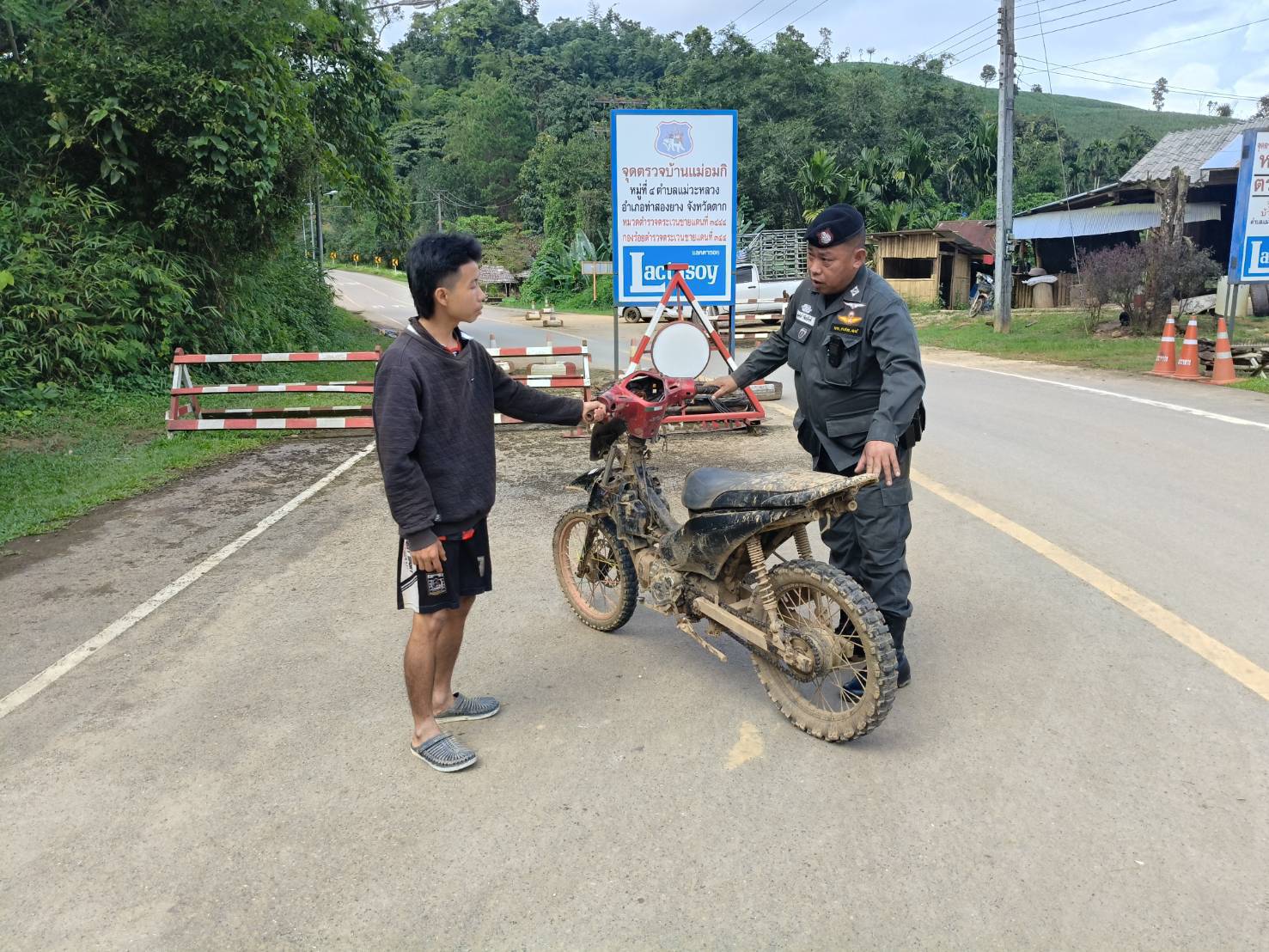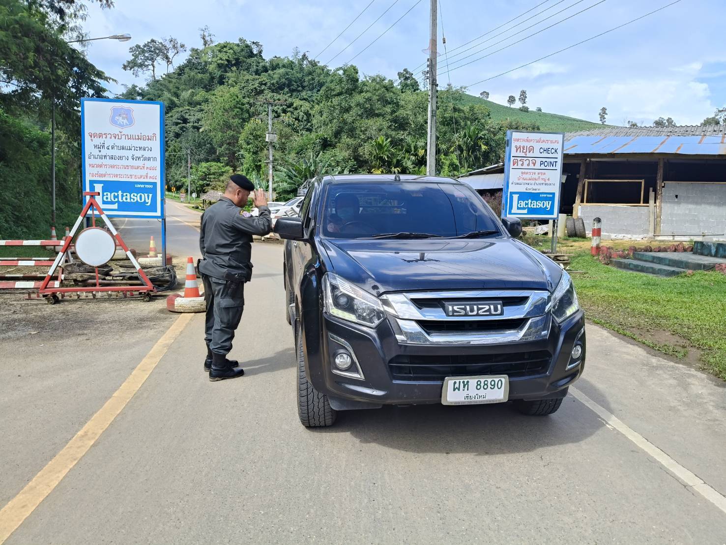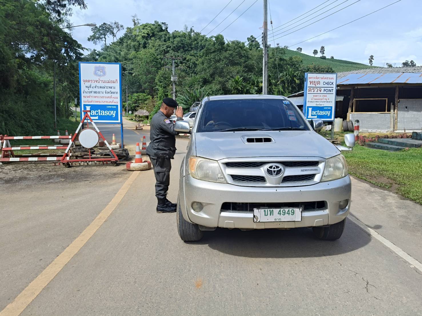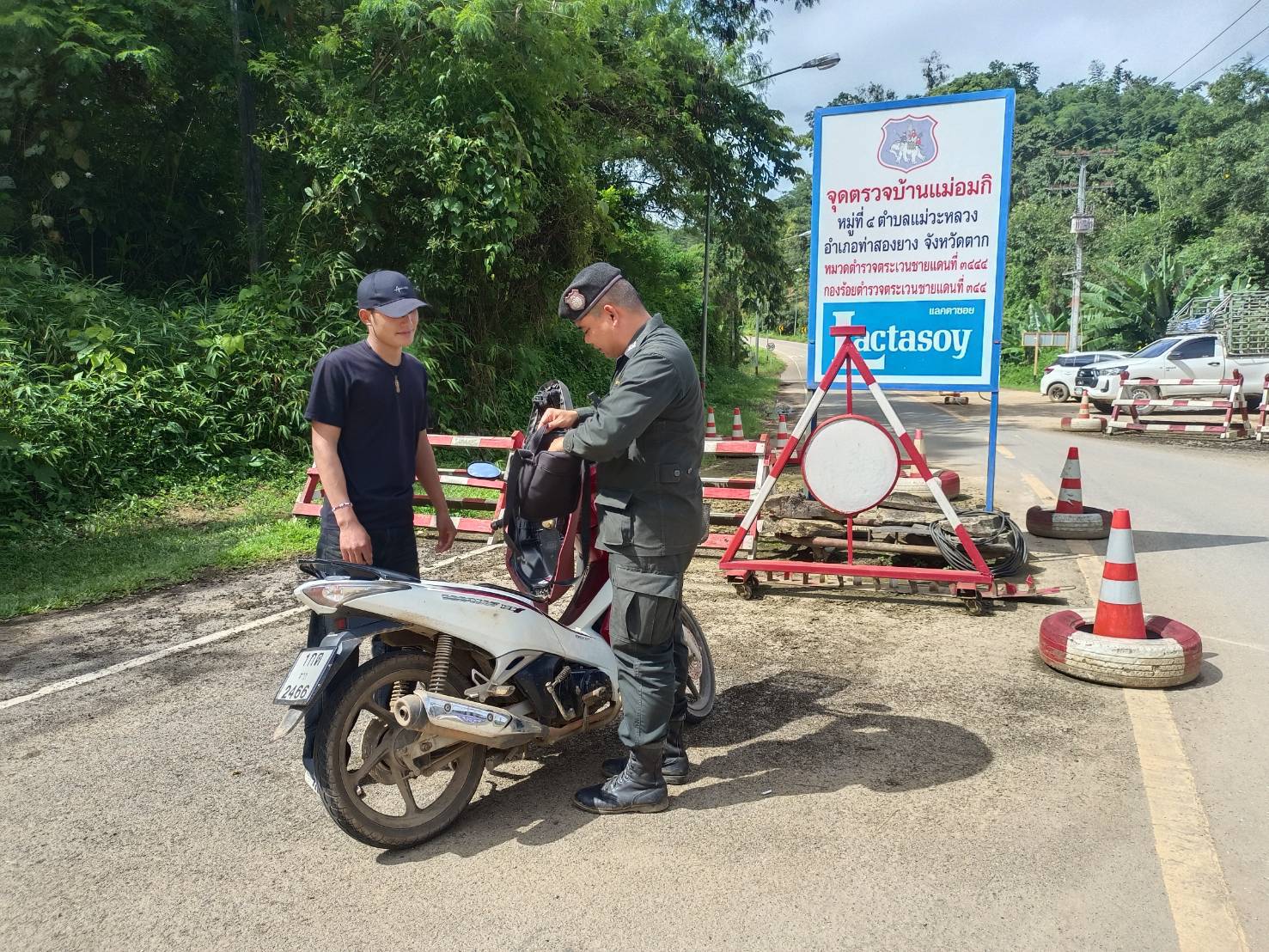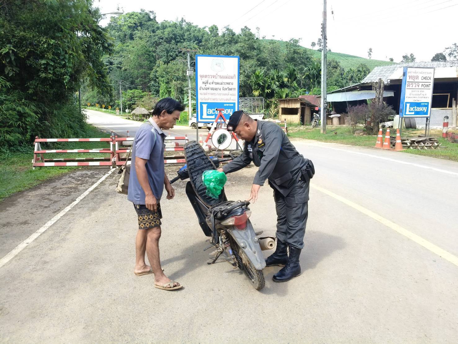 เมื่อ 110800 - 120759 ก.ย. 68 ชฝต.บ้านแม่อมกิจัด กพ 3 นาย ทำการตั้งจุดตรวจ-จุดสกัด บนทางหลวงหมายเลข 105 (แม่สอด-แม่สะเรียง) บริเวณหน้าจุดตรวจบ้านแม่อมกิ ม.4 ต.แม่วะหลวง อ.ท่าสองยาง จ.ตาก เพื่อป้องกันปราบปรามอาชญากรรมสำคัญ การลักลอบลำเลียงยาเสพติด สารตั้งต้นและเคมีภัณฑ์,การปราบปรามคนร้ายข้ามชาติและเข้าเมืองโดยผิดกฎหมาย ประชาสัมพันธ์ให้ประชาชนได้รับทราบ