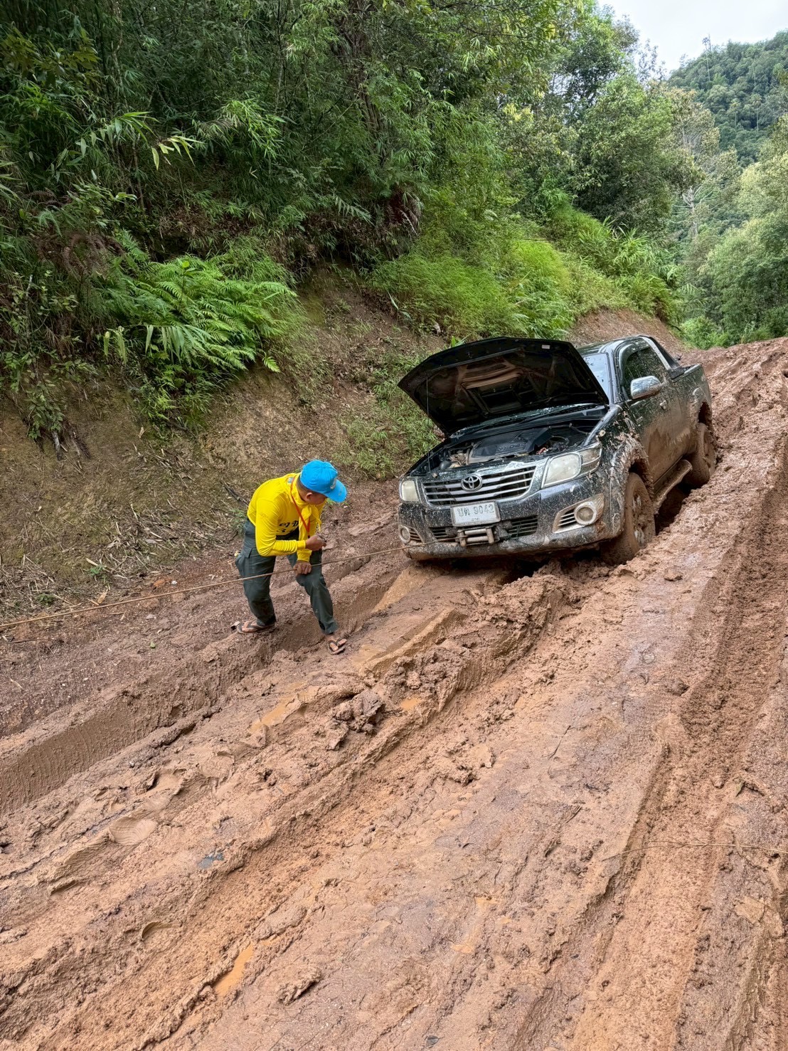 เพื่อนำส่งยังโรงพยาบาลท่าสองยาง ม.1 ต.แม่ต้าน อ.ท่าสองยาง จ.ตาก เนื่องจากฝนตกหนักตลอดหลายวันรถยนต์ภายในหมู่บ้านไม่สามารถสัญจรออกมาได้