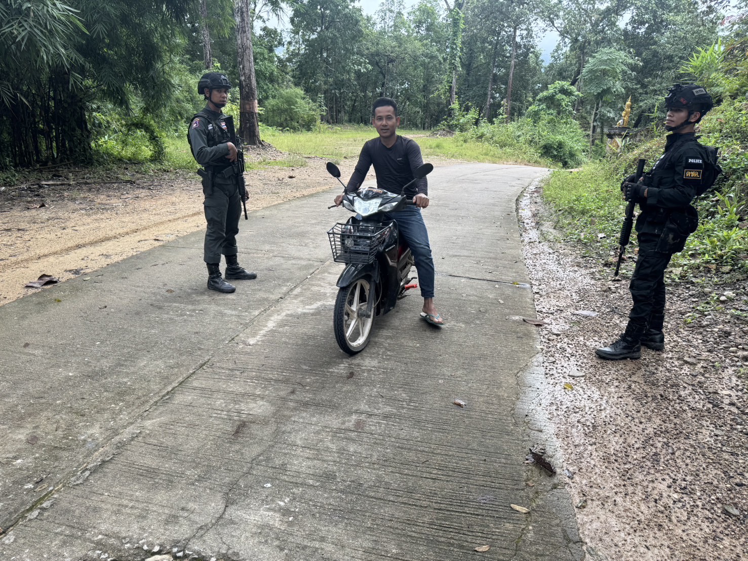 เมื่อ 241400 ก.ย. 68 มว.ตชด.3443 จัดให้ จ.ส.ต.จักรกฤษณ์ ซ้อนเพชร พร้อม กพ. รวม 4 นาย ตั้งจุดสกัด บริเวณเส้นทางรอง บ.เเม่ต้าน ม.1 - บ้านแม่โพ ม.7 ต. แม่ต้าน อ.ท่าสองยาง จว.ตาก (วัดห้วยลึก) พิกัด 47QMV1975805573 พร้อมออกตรวจใน พท.ฯ ม.2 ต.แม่ต้าน อ.ท่าสองยาง จว.ตาก ตามเส้นทาง/ช่องทาง/ท่าข้าม และ พท.สุ่มเสี่ยงก่ออาชญากรรม เพื่อป้องปรามการกระทำผิดกฎหมายตาม พ.ร.บ.ที่มีโทษทางอาญา สกัดกั้นการลักลอบนำเข้า -ส่งออก พืชผลทางการเกษตร สินค้าหนีภาษี และแรงงานต่างด้าวเข้าเมืองโดยผิดกฎหมาย ตรวจสอบเครือข่ายแก๊งคอลเซ็นเตอร์ และป้องกันการลักลอบลำเลียงยาเสพติด สารตั้งต้น และเคมีภัณฑ์