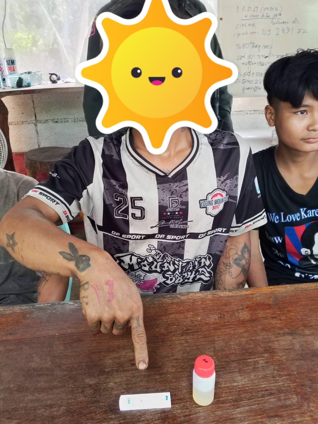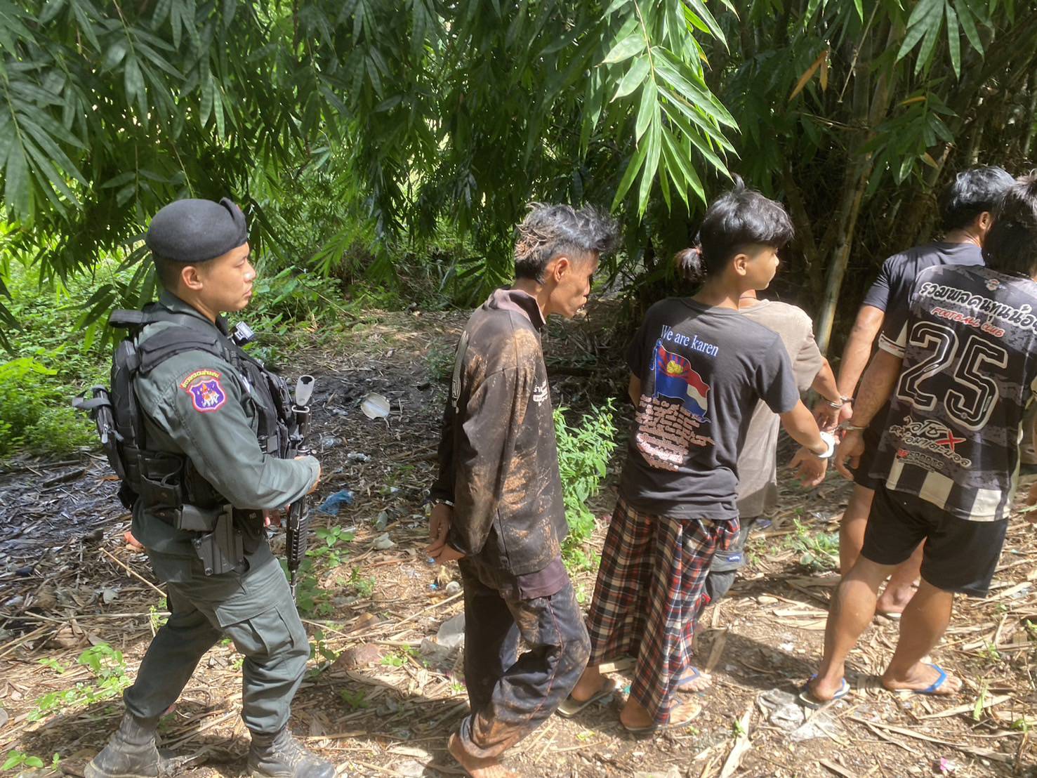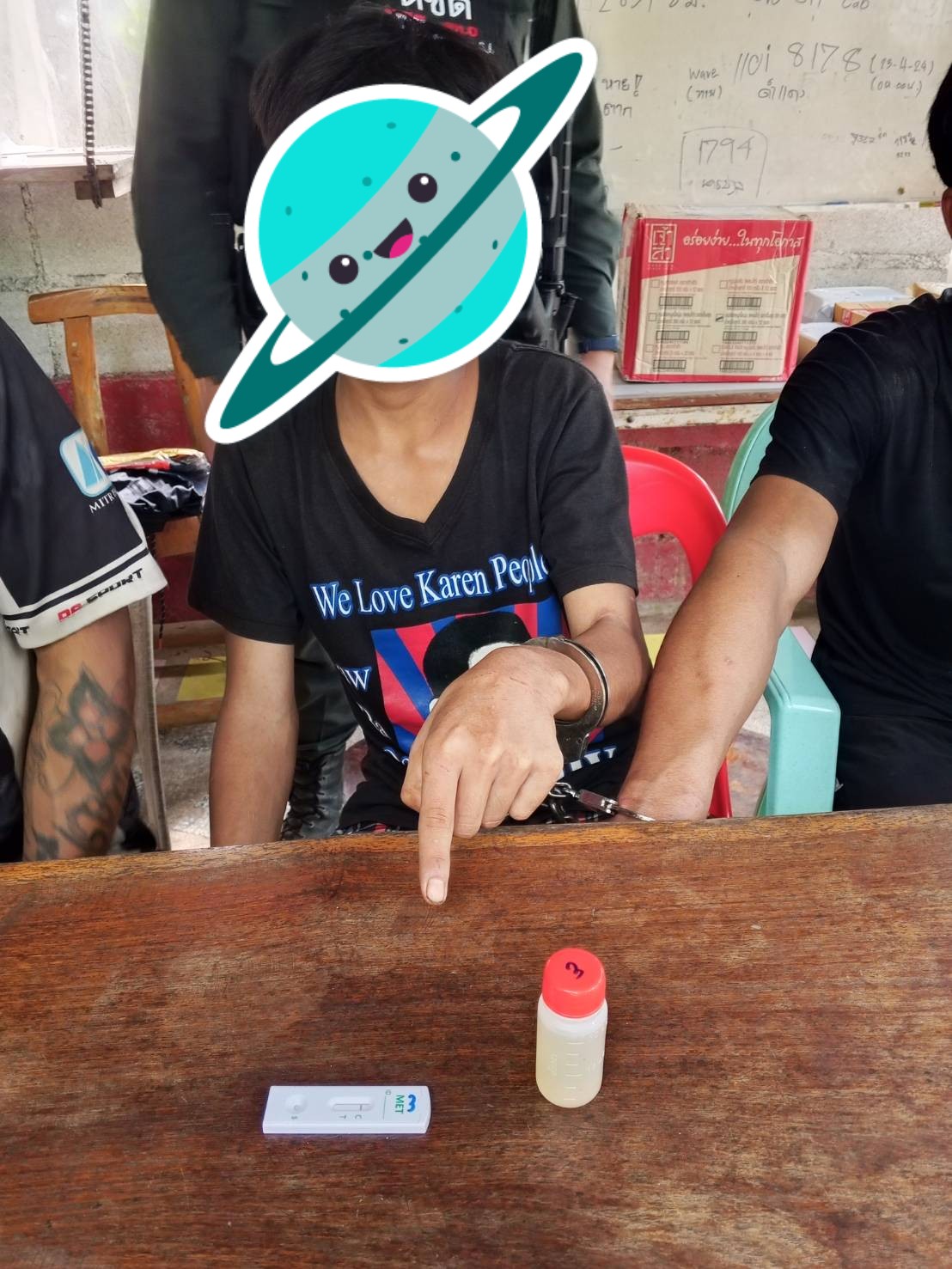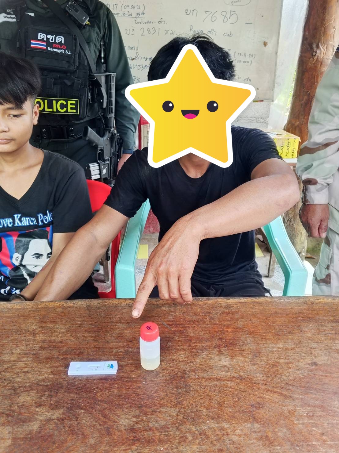 โดยกล่าวหาว่า เสพยาเสพติดให้โทษประเภท 1 (ยาบ้า) โดยไม่ได้รับอนุญาต , เป็นบุคคลต่างด้าวพักอาศัยอยู่ในราชอาณาจักรโดยไม่ได้รับอนุญาติ โดยนำตัวส่งตรวจสารเสพติดที่ รพ.ท่าสองยาง และนำส่ง พงส.สภ.ท่าสองยาง เพื่อดำเนินคดีต่อไป จนถึงเวลา 20.30 น.เดินทางกลับ เหตุการณ์ปกติ