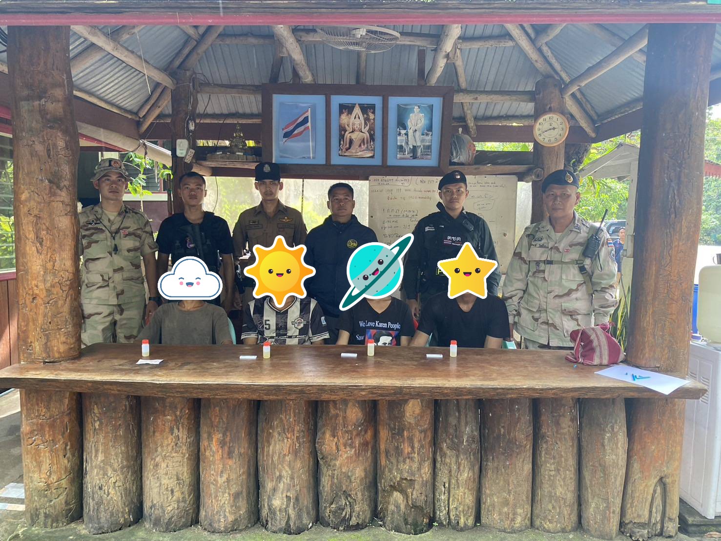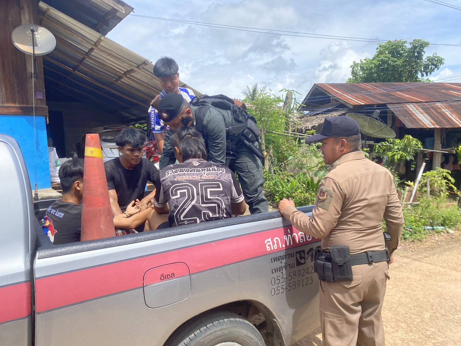 เมื่อ 261400 ก.ย. 68 ส.ต.อ.กมลศักดิ์ กิจโดมกุล พร้อม กพ.ชุด ชปข.มว.ตชด.3442 รวม 4 นาย ร่วมกับ จนท.ตร.สภ.ท่าสองยาง(จุดตตรวจแม่หละ) , ผู้ใหญ่บ้าน-ชรบ.หมู่ 2 ร่วมกันออก ลว.ฯ ภายในหมู่บ้านแม่หละยาง เพื่อตรวจสอบเป้าหมายมั่วสุมเสพยาเสพติด บริเวณห้องน้ำเก่า ข้างกระท่อมไม่มีเลขที่ ภายในหมู่บ้านแม่หละยาง หมู่ 2 ต.แม่หละ อ.ท่าสองยาง จว.ตาก พิกัด 47Q MU271955 พบผู้ต้องหา 4 ราย มั่วสุมเสพยาอยู่ในห้องน้ำดังกล่าว ดังนี้