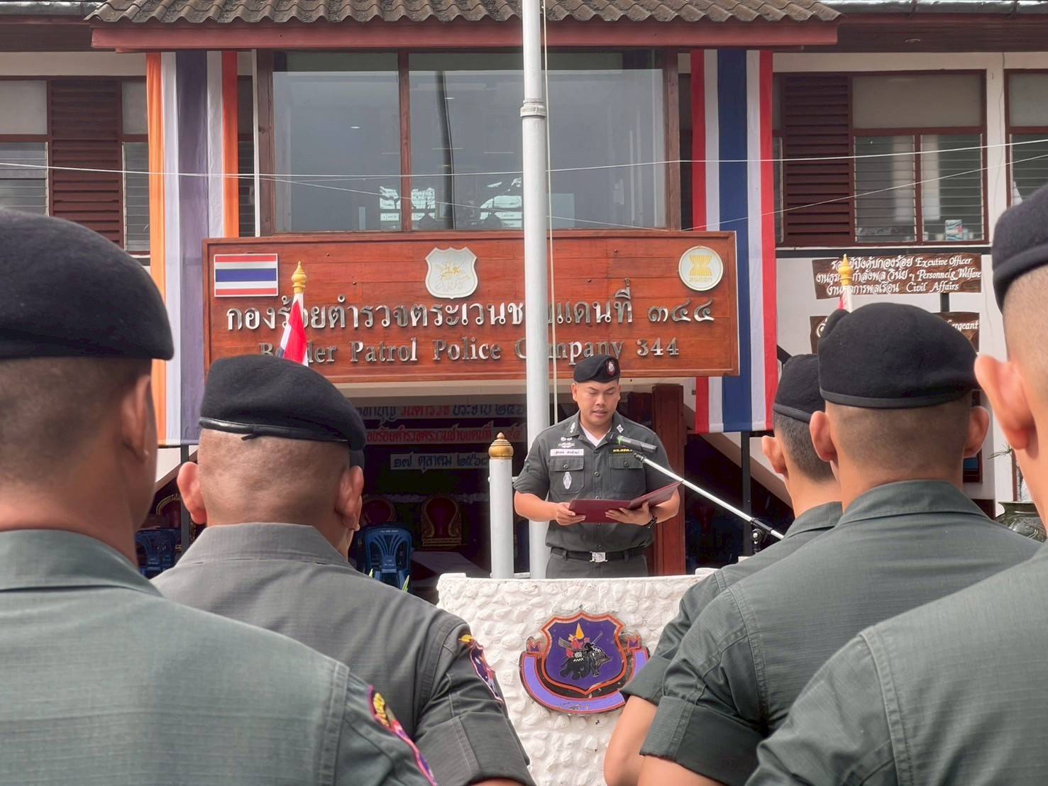 โดยมี พ.ต.ท.ฐัตพล สายโรจน์ ผบ.ร้อยฯ เป็นผู้อ่านสาร และมอบประกาศเกียรติคุณให้กับหน่วยในสังกัด ร้อย ตชด.344 ที่ปฏิบัติหน้าที่ดีเด่น ประจำปี 2568