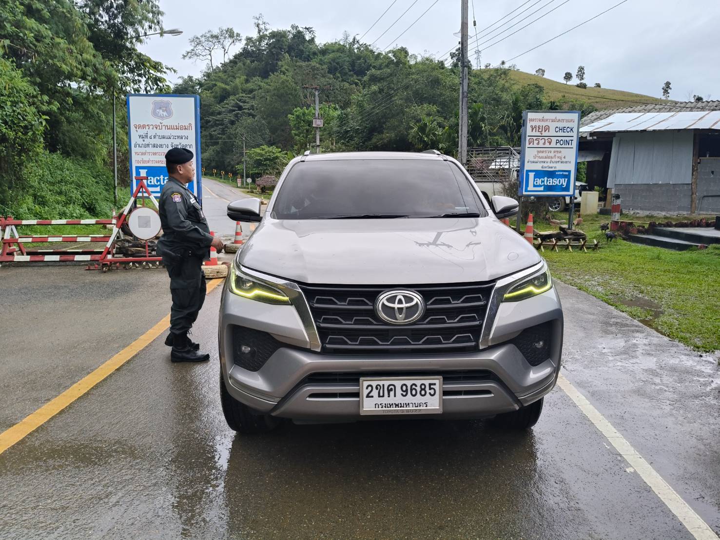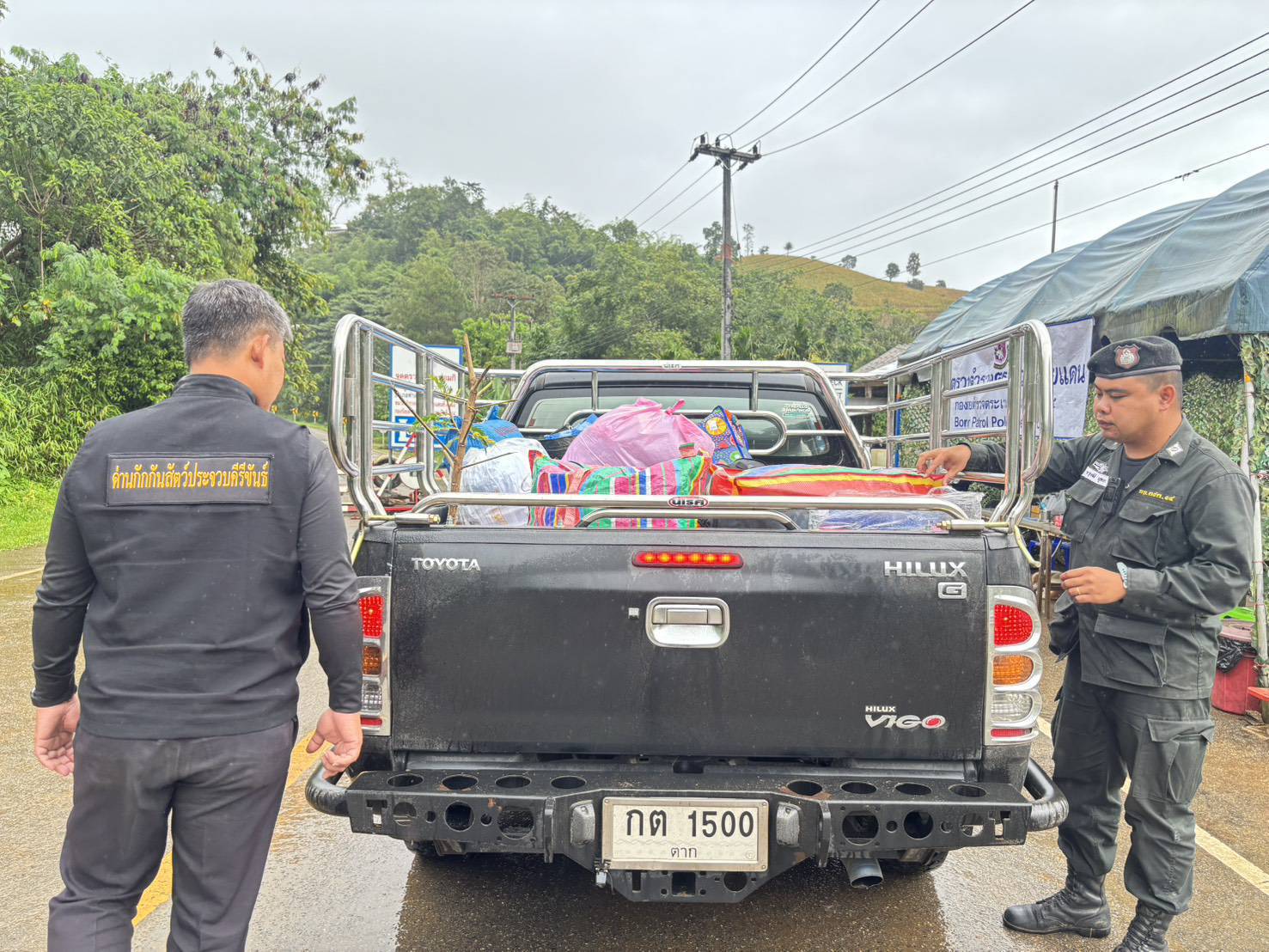 เมื่อ 100800 - 110759 พ.ย. 68 ชฝต.บ้านแม่อมกิ​จัด กพ. 3 นาย ร่วมกับ เจ้าหน้าที่สารวัตรปศุสัตว์ จ.ประจวบคีรีขันธ์ ทำการตั้งจุดตรวจ-จุดสกัด บนทางหลวงหมายเลข 105 (แม่สอด-แม่สะเรียง) บริเวณหน้าจุดตรวจบ้านแม่อมกิ ม.4 ต.แม่วะหลวง อ.ท่าสองยาง จ.ตาก เพื่อป้องกันปราบปรามอาชญากรรมสำคัญ การลักลอบลำเลียงยาเสพติด สารตั้งต้นและเคมีภัณฑ์,การปราบปรามคนร้ายข้ามชาติและเข้าเมืองโดยผิดกฎหมาย ป้องกันและควบคุมการลักลอบเคลื่อนย้ายสัตว์และซากสัตว์ ประชาสัมพันธ์ให้ประชาชนได้รับทราบ ผลการ ปบ.ยานพาหนะที่สัญจรผ่านไป-มา ให้ความร่วมมือในการตรวจค้นเป็นอย่างดี​ ทำการตรวจค้น