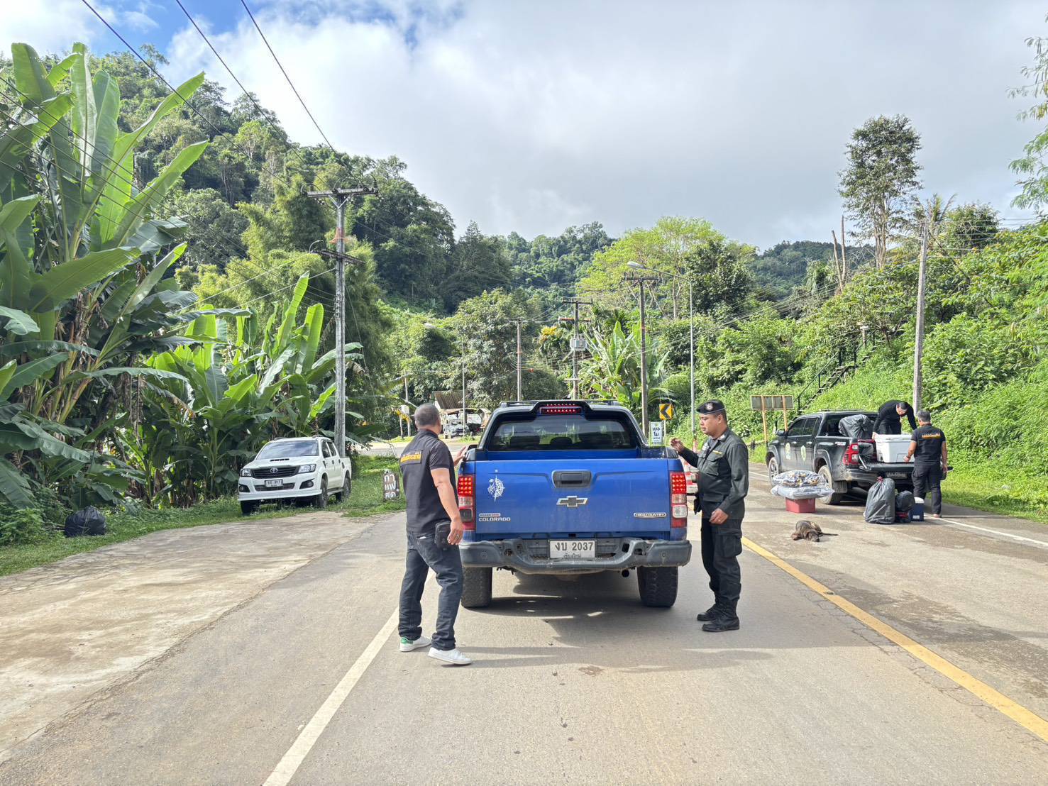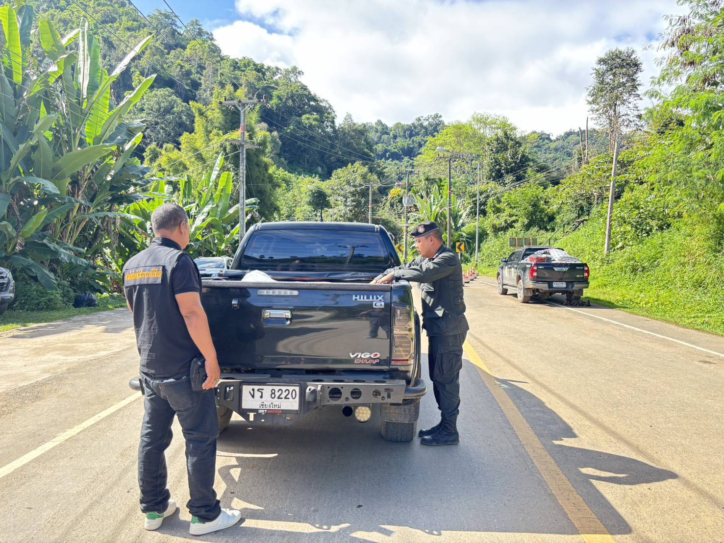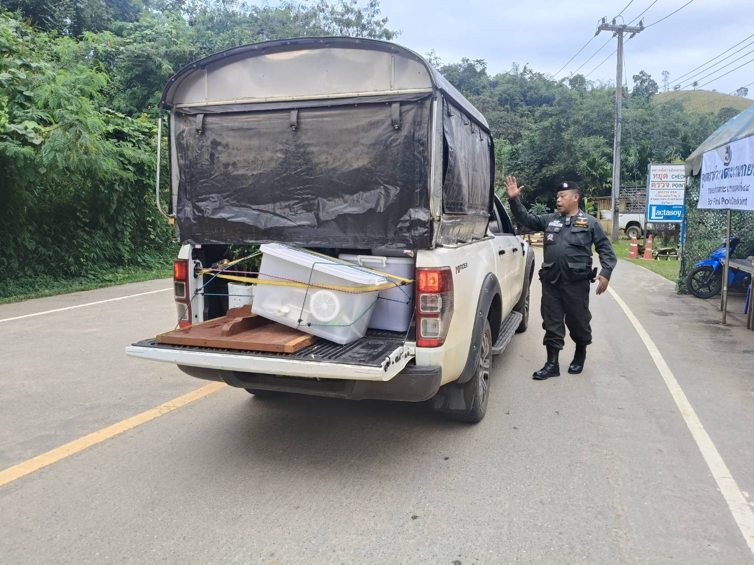 เมื่อ 110800 - 120759 พ.ย. 68 ชฝต.บ้านแม่อมกิจัด กพ.3 นาย ร่วมกับ เจ้าหน้าที่สารวัตรปศุสัตว์ จ.ประจวบคีรีขันธ์ ทำการตั้งจุดตรวจ-จุดสกัด บนทางหลวงหมายเลข 105 (แม่สอด-แม่สะเรียง) บริเวณหน้าจุดตรวจบ้านแม่อมกิ ม.5 ต.แม่วะหลวง อ.ท่าสองยาง จ.ตาก เพื่อป้องกันปราบปรามอาชญากรรมสำคัญ การลักลอบลำเลียงยาเสพติด สารตั้งต้นและเคมีภัณฑ์,การปราบปรามคนร้ายข้ามชาติและเข้าเมืองโดยผิดกฎหมาย ป้องกันและควบคุมการลักลอบเคลื่อนย้ายสัตว์และซากสัตว์ ประชาสัมพันธ์ให้ประชาชนได้รับทราบ
