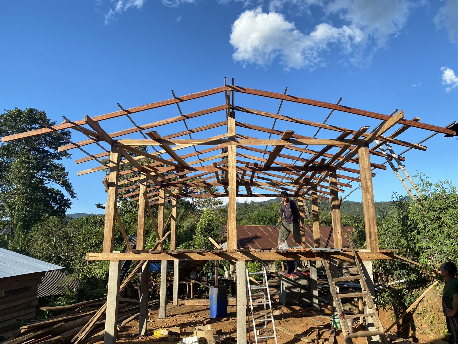 ร้อย ตชด.344 มอบหมายให้ ร.ต.ท. สมจิตต์ สายชลคีรี ผบ.มว.มชส.ร้อย ตชด.344 พร้อม กพ.ชุดจิตอาสาฯ ดำเนินการขึ้นโครงหลังคา ตามโครงการมูลนิธิ ซี.ซี.เอฟ
