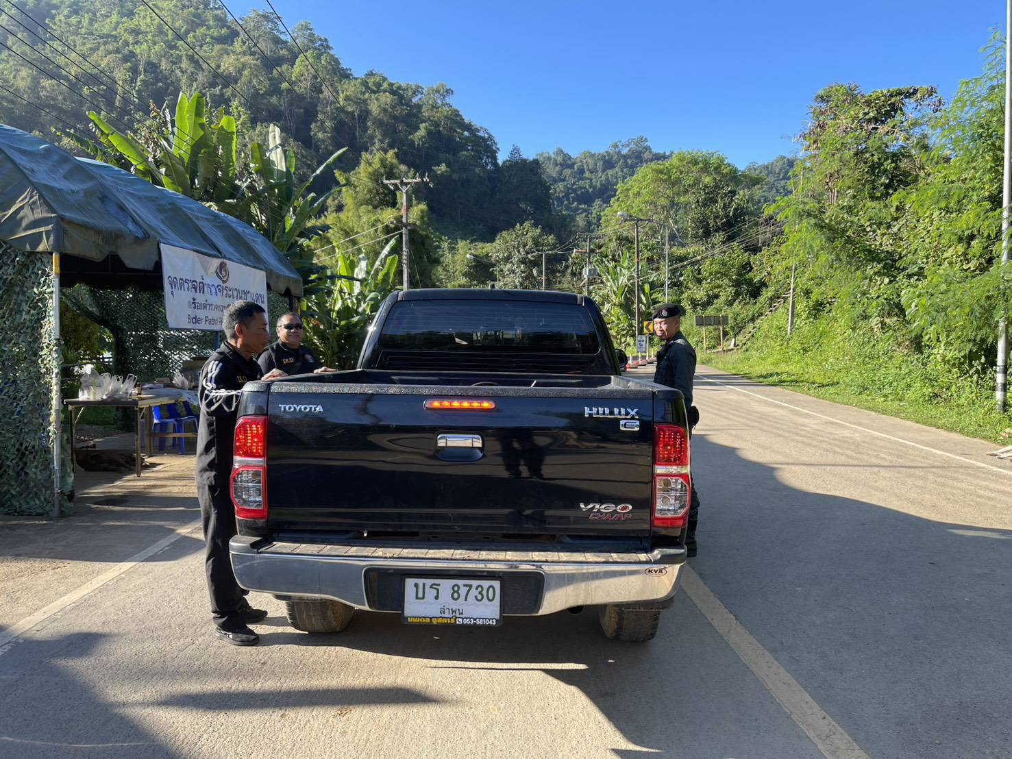 เมื่อ 160800 - 170759 พ.ย.68 ชฝต.บ้านแม่อมกิจัด กพ 3 นาย ร่วมกับ เจ้าหน้าที่สารวัตรปศุสัตว์ จ.ประจวบคีรีขันธ์ ทำการตั้งจุดตรวจ-จุดสกัด บนทางหลวงหมายเลข 105 (แม่สอด-แม่สะเรียง) บริเวณหน้าจุดตรวจบ้านแม่อมกิ ม.4 ต.แม่วะหลวง อ.ท่าสองยาง จ.ตาก เพื่อป้องกันปราบปรามอาชญากรรมสำคัญ การลักลอบลำเลียงยาเสพติด สารตั้งต้นและเคมีภัณฑ์,การปราบปรามคนร้ายข้ามชาติและเข้าเมืองโดยผิดกฎหมาย ป้องกันและควบคุมการลักลอบเคลื่อนย้ายสัตว์และซากสัตว์ ประชาสัมพันธ์ให้ประชาชนได้รับทราบ