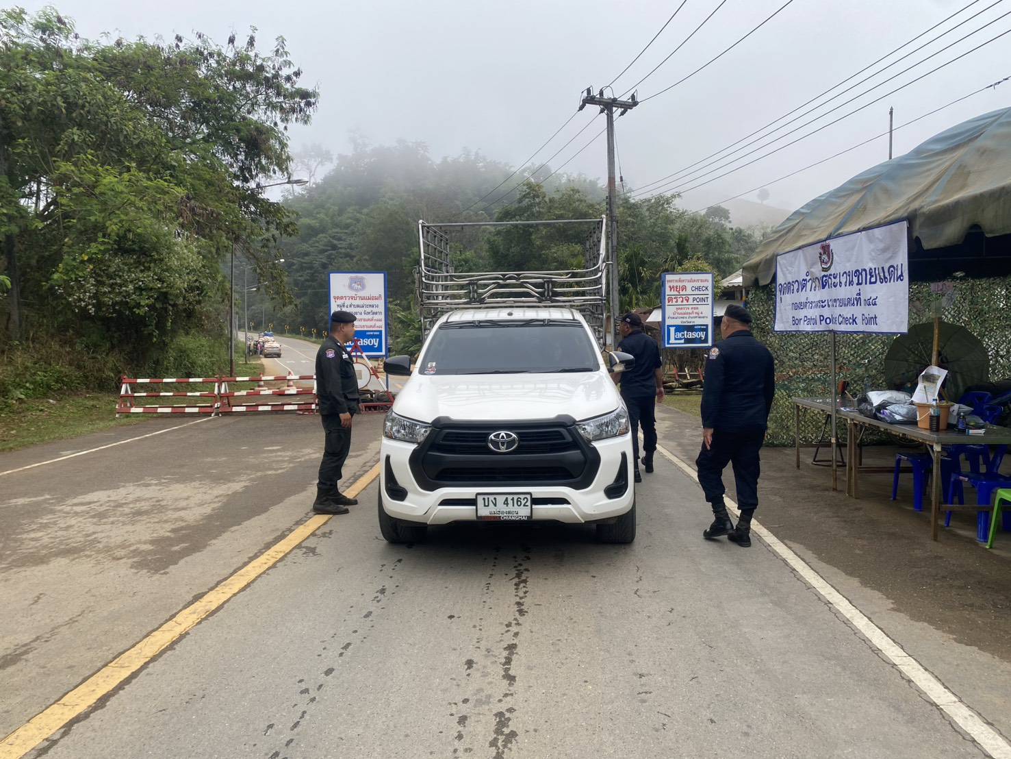 เมื่อ 080800-090759 ธ.ค.68 ชฝต.บ้านแม่อมกิจัด กพ 3 นาย ร่วมกับ เจ้าหน้าที่สารวัตรปศุสัตว์ จ.ลพบุรี ทำการตั้งจุดตรวจ-จุดสกัด บนทางหลวงหมายเลข 105 (แม่สอด-แม่สะเรียง) บริเวณหน้าจุดตรวจบ้านแม่อมกิ ม.4 ต.แม่วะหลวง อ.ท่าสองยาง จ.ตาก เพื่อป้องกันปราบปรามอาชญากรรมสำคัญ การลักลอบลำเลียงยาเสพติด สารตั้งต้นและเคมีภัณฑ์,การปราบปรามคนร้ายข้ามชาติและเข้าเมืองโดยผิดกฎหมาย ป้องกันและควบคุมการลักลอบเคลื่อนย้ายสัตว์และซากสัตว์ ประชาสัมพันธ์ให้ประชาชนได้รับทราบ
