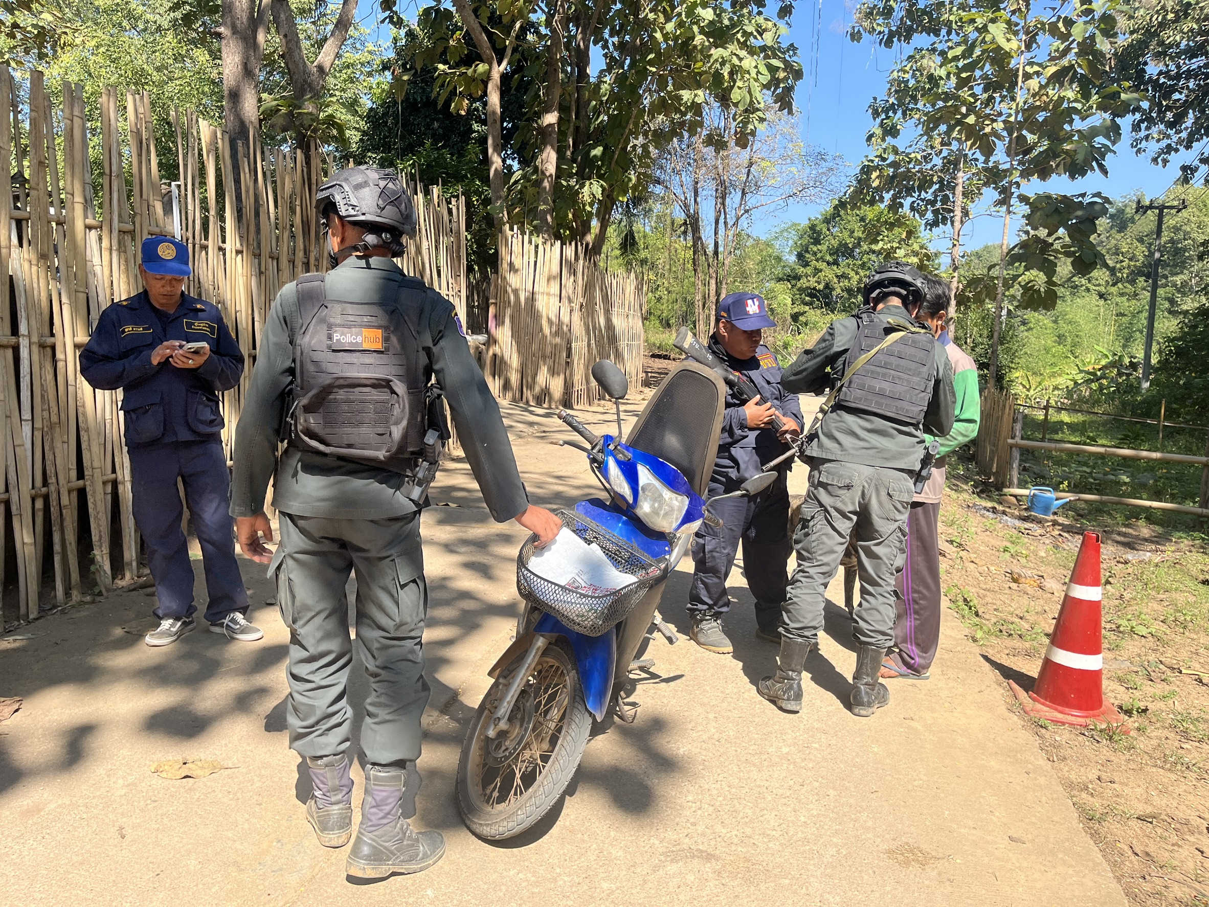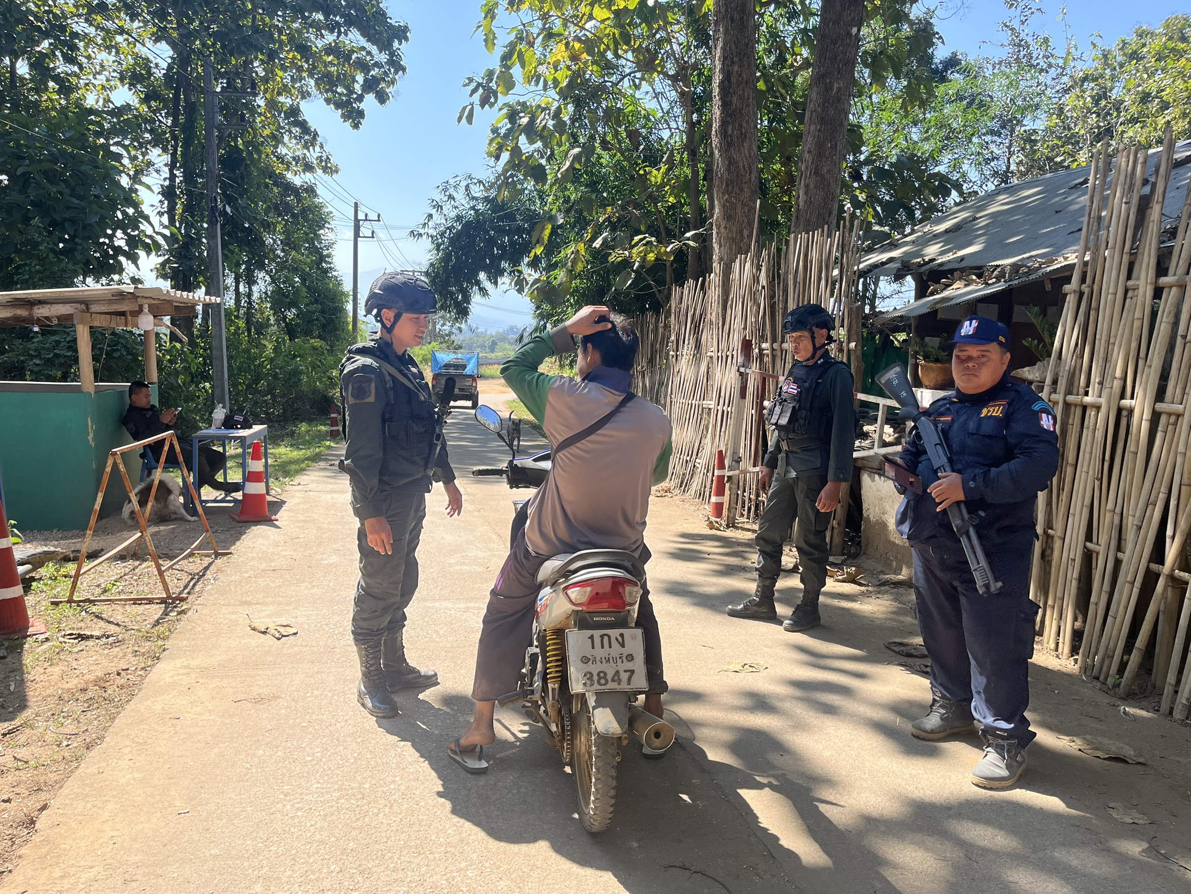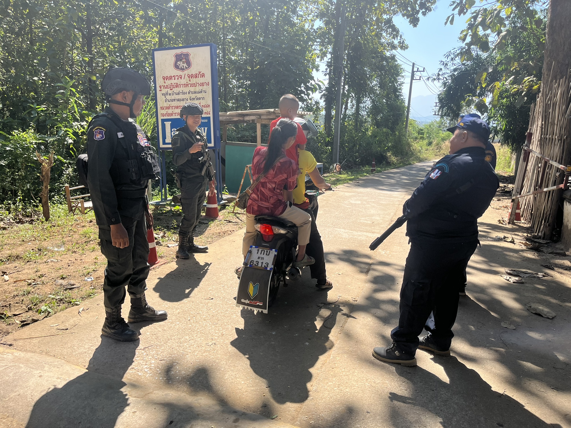 เมื่อ 100930 ธ.ค. 68 ร.ต.ต.ศักดิ์ สายทอง รองฯ รรท.ผบ.มว.ตชด.3443 พร้อม กพ. รวม 3 นาย , ผญบ.ม.2/ชรบ.ต.แม่ต้าน อ.ท่าสองยาง จว.ตาก ออกตรวจ พท.ฯ ม.2 ต.แม่ต้าน อ.ท่าสองยาง จว.ตาก ตรวจสอบประชากรแฝง/พบปะ ลข.และ ตรวจค้นกระท่อมไม่มีเลขที่เพื่อหาสิ่งผิดกฎหมาย พร้อมตั้งจุดตรวจ/จุดสกัด หน้าฐาน ปบ.การฯ  ม.2 ต.แม่ต้าน อ.ท่าสอยาง จว.ตาก เพื่อป้องปรามการกระทำผิดกฎหมายตาม พ.ร.บ.ที่มีโทษทางอาญา สกัดกั้นการลักลอบนำเข้า - ส่งออก พืชผลทางการเกษตร สินค้าหนีภาษี และแรงงานต่างด้าวเข้าเมืองโดยผิดกฎหมาย ตรวจสอบเครือข่ายแก๊งคอลเซ็นเตอร์ และป้องกันการลักลอบลำเลียงยาเสพติด สารตั้งต้น และเคมีภัณฑ์