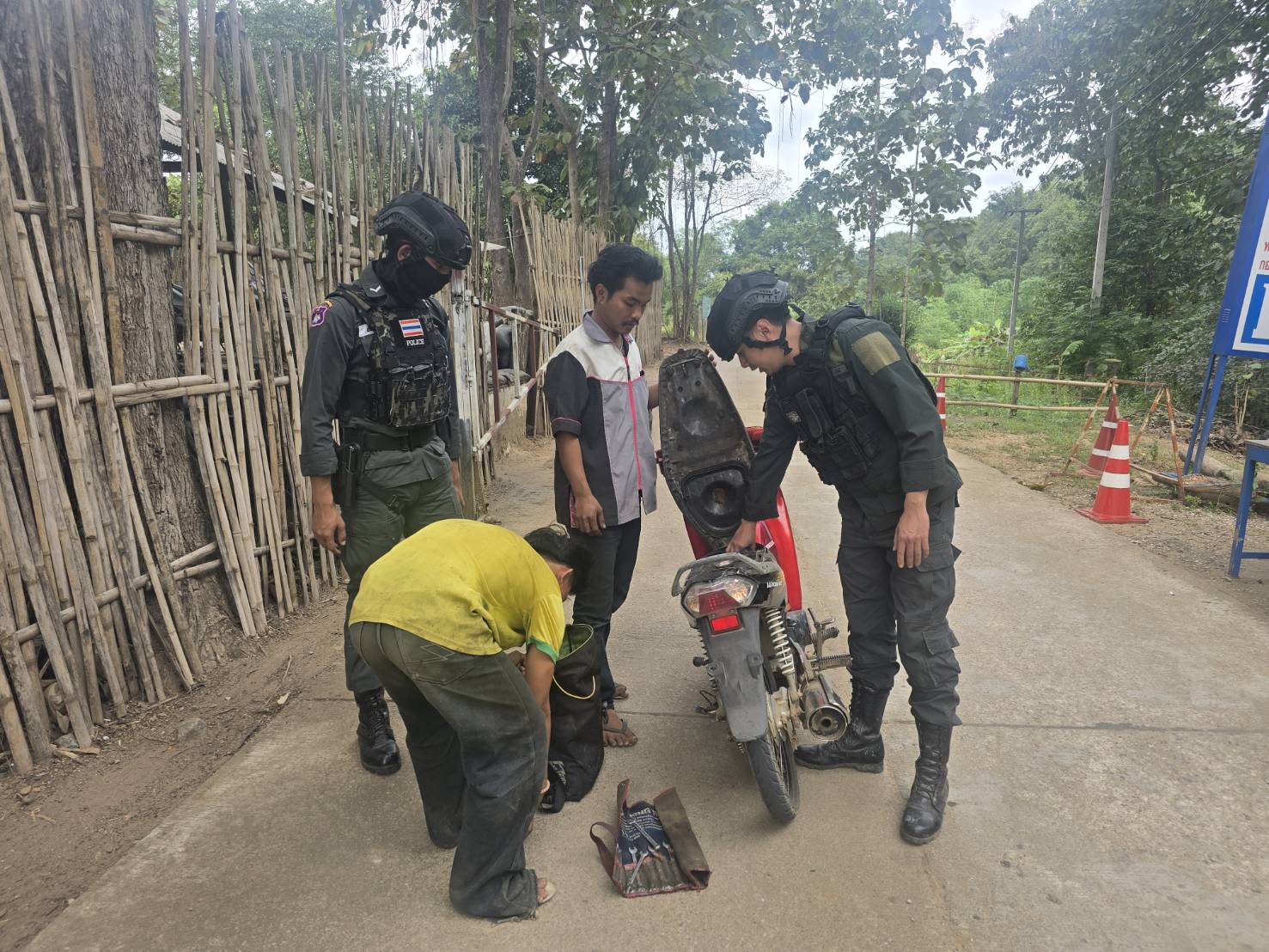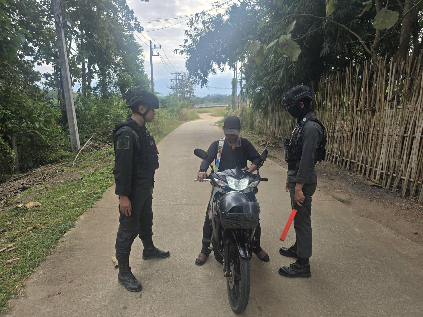 เมื่อ 131300 ธ.ค.68 มว.ตชด.3443 จัดให้ จ.ส.ต.เจษฎา ธนะปัด พร้อม กพ.รวม 3 นาย ตั้งจุดตรวจ/จุดสกัด  หน้าฐานปฏิบัติการ ห้วยปางยาง ม.2 ต.แม่ต้าน อ.ท่าสองยาง จว.ตาก เพื่อป้องปรามการกระทำผิดกฎหมายตาม พ.ร.บ.ที่มีโทษทางอาญา,สกัดกั้นการลักลอบนำเข้า - ส่งออกพืชผลทางการเกษตร,สินค้าหนีภาษี และ แรงงานต่างด้าวหลบหนีเข้าเมืองโดยผิดกฎหมาย,ตรวจสอบเครือข่ายแก็งคอลเซ็นเตอร์ และ ป้องกันการลักลอบลำเลียงยาเสพติด/สารตั้งต้นและเคมีภัณฑ์ ผลการ ปบ.ไม่พบการกระทำผิดแต่อย่างใด