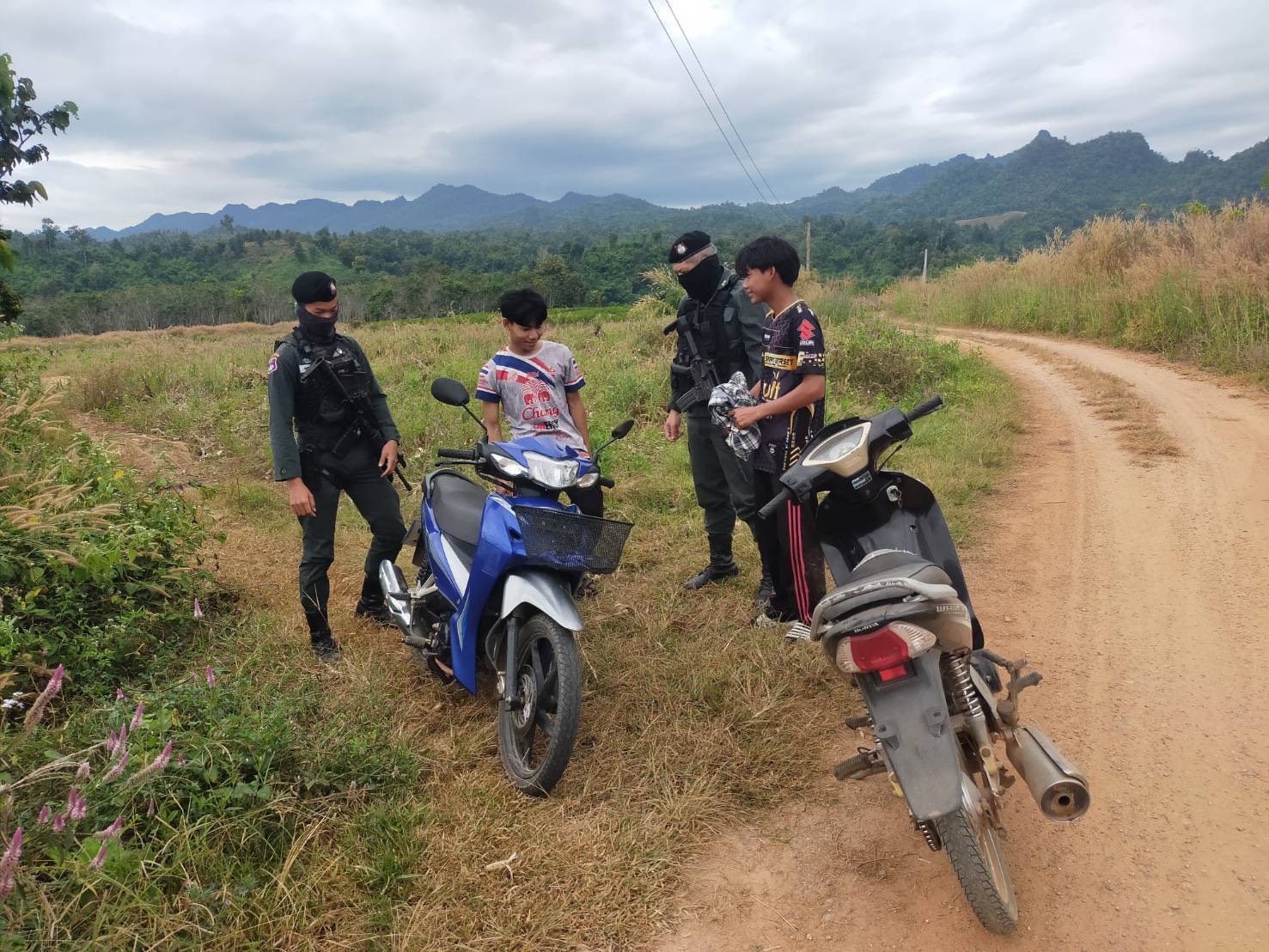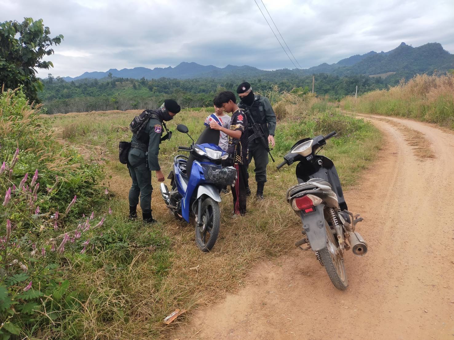 เมื่อ 150900 ธ.ค.68 มว.ตชด.3442 ชป.ตชด.บ้านแม่หละไทย จัดให้ ด.ต.คำภีร์ ขวัญอ่อน พร้อมพวก รวม 3 นาย ร่วมกันออก ลว.หาข่าวพื้นที่แนวชายแดนเพื่อป้องกันการลักลอบนำสินค้าการเกษตร เข้ามาในราชอาณาจักร การลักลอบโจรกรรมรถยนต์-รถจักรยานยนต์ข้ามฝั่ง การกระทำผิดกฎหมายตาม พ.ร.บ.ที่มีโทษทางอาญา การลักลอบหลบหนีเข้าเมืองโดยผิดกฏหมาย ตรวจสอบเครือข่ายแก๊งคอลเซ็นเตอร์ และป้องกันการลักลอบลำเลียงยาเสพติด สารตั้งต้น และเคมีภัณฑ์ บริเวณช่องทางท่าข้ามตามธรรมชาติ พื้นที่บ้านแม่หละไทย หมู่ 1 ต.แม่หละ อ.ท่าสองยาง จ.ตาก