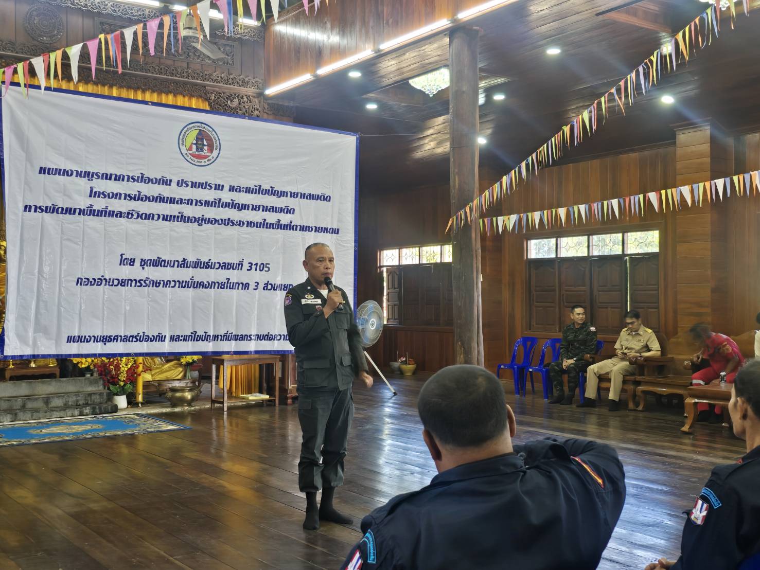 เมื่อ 150900 ธ.ค.68 ร้อย ตชด.344 มอบหมายให้ ร.ต.ต.ศักดิ์ สายทอง รองฯ รรท.ผบ.มว.ตชด.3443 พร้อม กพ.รวม 2 นาย เดินทางไป สำนักสงฆ์บ้านใหม่เทพนิมิต ม.1 ต.แม่ต้าน อ.ท่าสองยาง จว.ตาก เพื่อร่วมพิธีเปิดการฝึกอบรมโครงการราษฎรอาสาป้องกันภัยยาเสพติดรุ่นที่ 1 ประจำปีงบประมาณ 2569 โดยชุดพัฒนาสัมพันธ์มวลชนที่ 3105 และร่วมเป็นวิทยากร/ครูฝึก มีวิทยากร/ครูฝึก จาก ชพส.3105,มูลนิธิเพชรเกษมท่าสองยาง,ชป.กร.305,ร้อย ทพ.3505 มีนาย ณัฐพล สนใจ ปลัดอำเภอท่าสองยางเป็นประธานเปิดการฝึกอบรมฯ มี ชรบ,อสม.ม.1,ม.2 ต.แม่ต้าน อ.ท่าสองยาง จว.ตาก เป็นผู้เข้ารับการฝึกอบรม จำนวน 30 คน