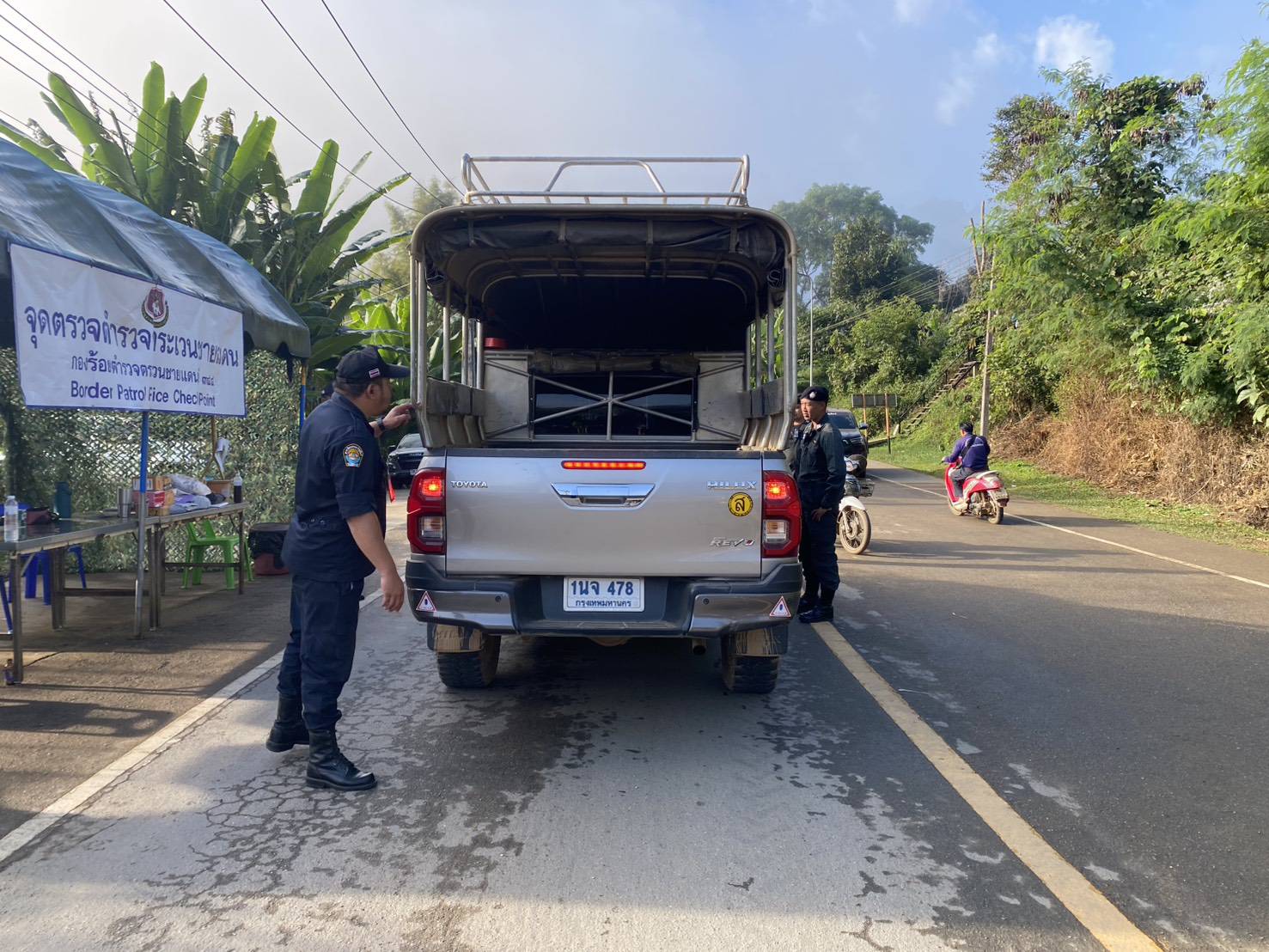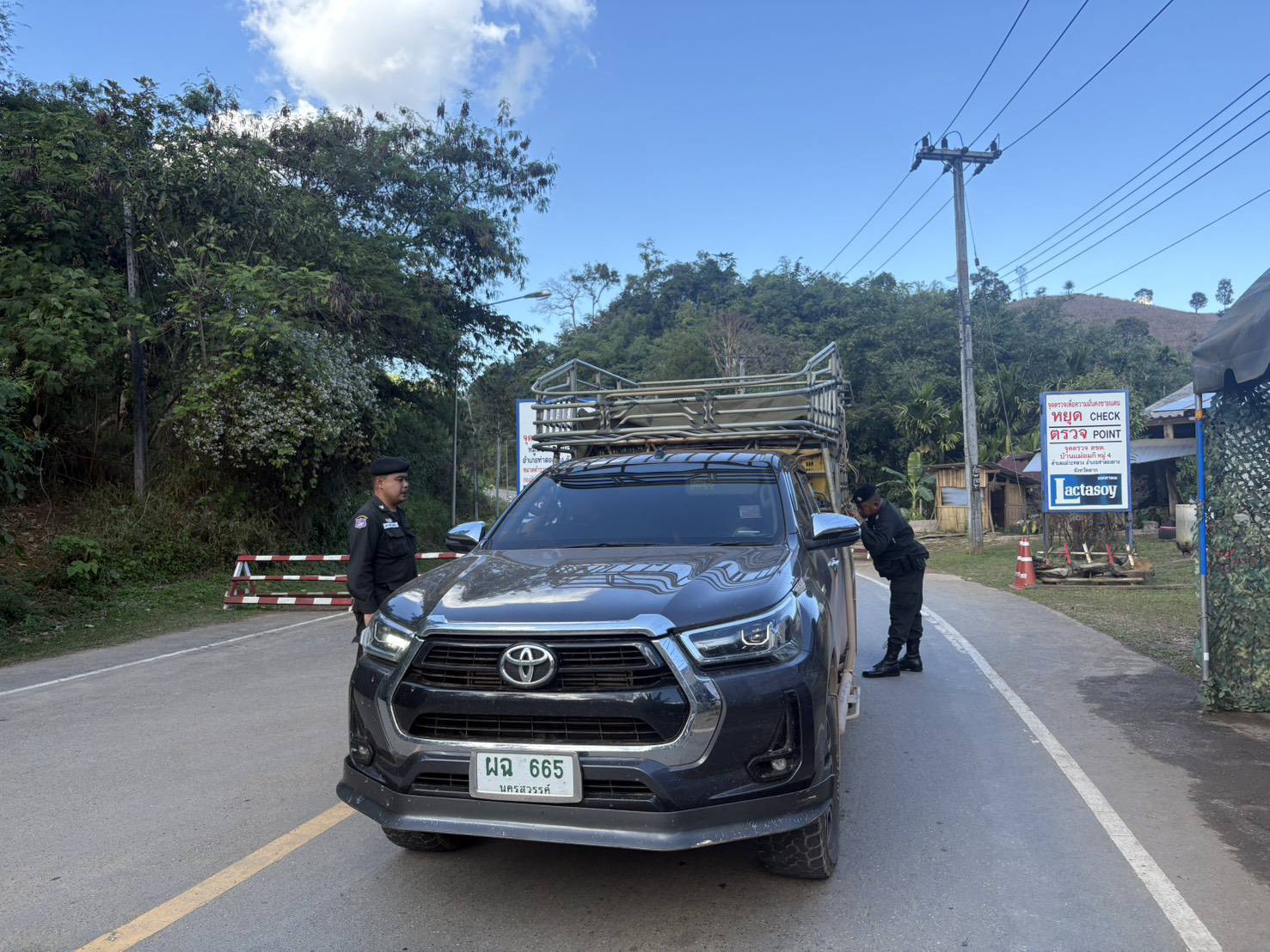 เมื่อ 180800-190759 ธ.ค.68 ชฝต.บ้านแม่อมกิจัด กพ 3 นาย ร่วมกับ เจ้าหน้าที่สารวัตรปศุสัตว์ จ.ลพบุรี ทำการตั้งจุดตรวจ-จุดสกัด บนทางหลวงหมายเลข 105 (แม่สอด-แม่สะเรียง) บริเวณหน้าจุดตรวจบ้านแม่อมกิ ม.4 ต.แม่วะหลวง อ.ท่าสองยาง จ.ตาก เพื่อป้องกันปราบปรามอาชญากรรมสำคัญ การลักลอบลำเลียงยาเสพติด สารตั้งต้นและเคมีภัณฑ์,การปราบปรามคนร้ายข้ามชาติและเข้าเมืองโดยผิดกฎหมาย ป้องกันและควบคุมการลักลอบเคลื่อนย้ายสัตว์และซากสัตว์ ประชาสัมพันธ์ให้ประชาชนได้รับทราบ