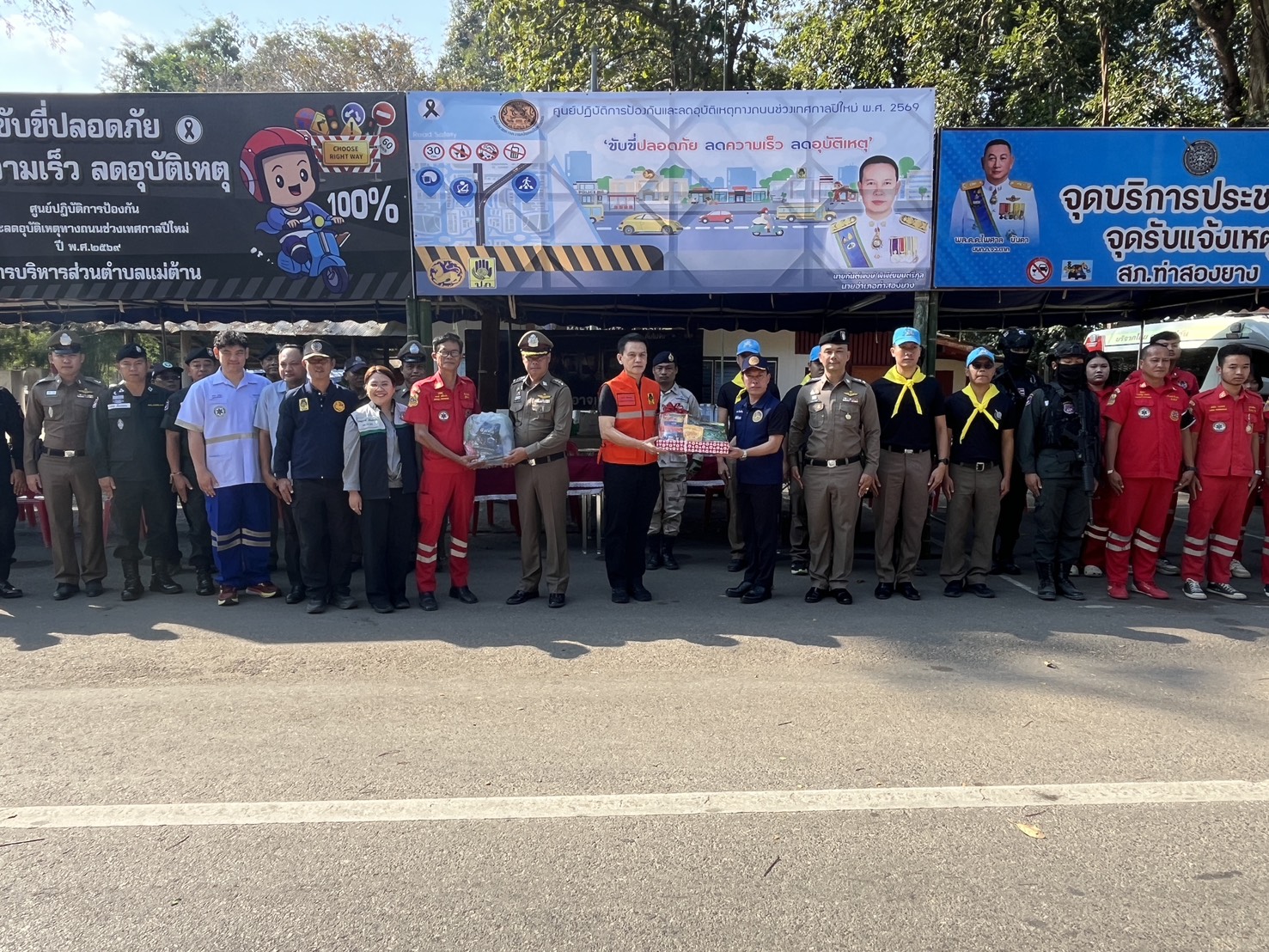 เมื่อ 021030 ม.ค.69 ร้อย ตชด.344 มอบหมายให้ม ร.ต.อ.ธวัช ปั้นเหน่ง รอง ผบ.ร้อย ตชด.344 พร้อม กพ.มว.ตชด.3443 รวม 6 นาย เดินทางไปที่พักสายตรวจตำบลแม่ต้าน ม.2 ต.แม่ต้าน อ.ท่าสองยาง จว.ตาก เพื่อร่วมต้อนรับ นาย อาทร พิมชะนกรอง ผวจ.ตาก เดินทางมาตรวจเยี่ยมพร้อมมอบเครื่องอุปโภคเพื่อเป็นขวัญและกำลังใจให้แก่ กพ.ที่ปฎิบัติหน้าที่ประจำศูนย์ปฎิบัติการ ป้องกันและลดอุบัติเหตุทางถนนในช่วงเทศกาลปีใหม่ 2569 โดยมีผู้ร่วมให้การต้อนรับ จนท.ตร.สภ.ท่าสองยาง,ร้อย ทพ.3503,ร้อย อส.อ.ท่าสองยาง,รพ.ท่าสองยาง,สธ.อ.ท่าสองยาง,อบต.แม่ต้าน,มูลนิธิเพชรเกษมท่าสองยาง,อสม.ต.แม่ต้าน,กำนัน/ผญบ.และ ชรบ. ต.แม่ต้าน อ.ท่าสองยาง จว.ตาก. รวมประมาณ 30 คน จนถึงเวลา 10.45 น.