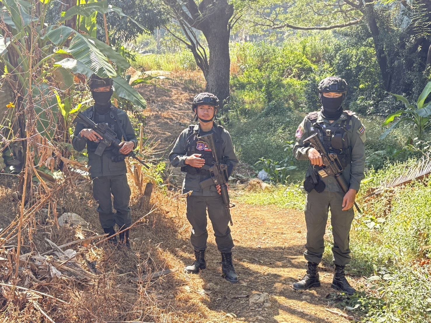 เมื่อ 051100 ม.ค. 69 มว.ตชด.3443 จัดให้ จ.ส.ต.จักรกฤษณ์ ซ้อนเพชร พร้อม กพ. รวม 4 นาย ออกตรวจใน พท.ฯ ม.1,ม.2 ต.แม่ต้าน อ.ท่าสองยาง จว.ตาก ตามเส้นทาง/ช่องทาง/ท่าข้าม และ พท.สุ่มเสี่ยงก่ออาชญากรรม เพื่อ ตรวจสอบ /ป้องกัน /ป้องปราม การลักลอบนําเข้า - ส่งออก ของโค ,สุกร ,พืชผลทางการเกษตร ,แรงงานต่างด้าว ,เฝ้าระวังการรุกล้ำอธิปไตย ของ กกล. ต่างชาติ และการกระทำผิดตาม พรบ. ที่มีโทษทางอาญา ตรวจสอบเครือข่ายแก็งคอลเซ็นเตอร์ฯ เเละป้องกันการลักลอบเข้า/ออกราชอาณาจักรโดยผิดกฎหมาย การลักลอบขนน้ำมันเชื้อเพลิงออกนอกราชอาณาจักร ป้องกันการลักลอบลำเลียงยาเสพติด สารตั้งต้น และเคมีภัณฑ์