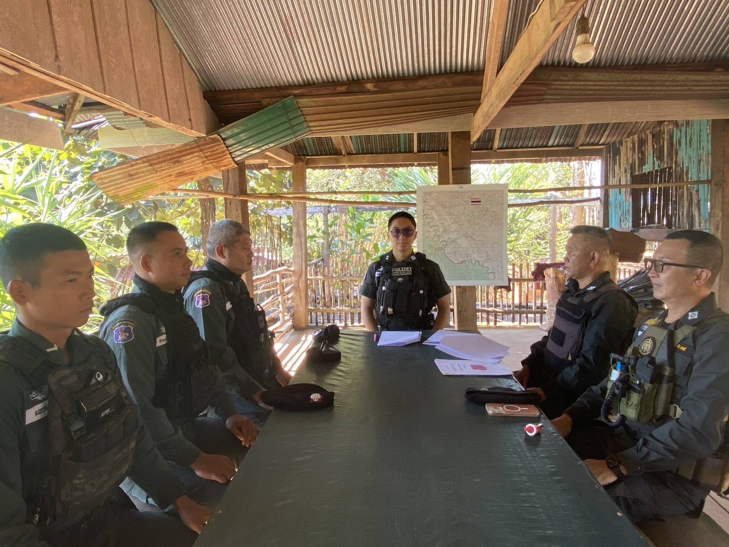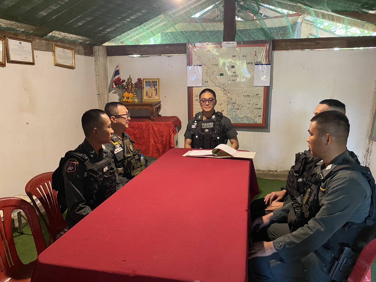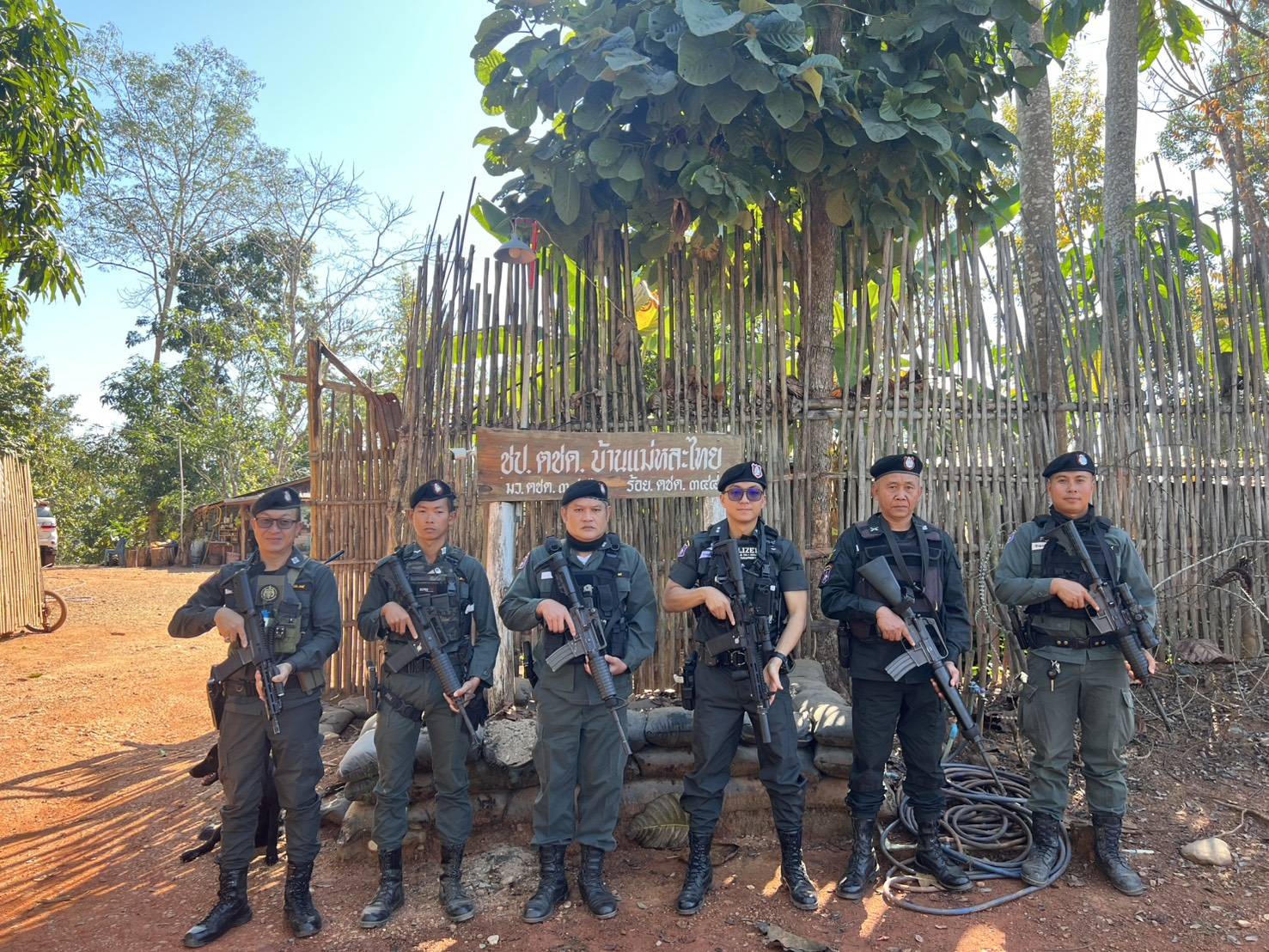 เวลา 10.00 น. ตรวจเยี่ยมฐานปฏิบัติการบ้านแม่หละยาง หมู่ 2 ต.แม่หละ อ.ท่าสองยาง จว.ตาก พบ ด.ต.ราเชนทร์ หล่ายพันธ์ รอง ผบ.มว.ตชด.3442 พร้อมกำลังพลให้การต้อนรับ