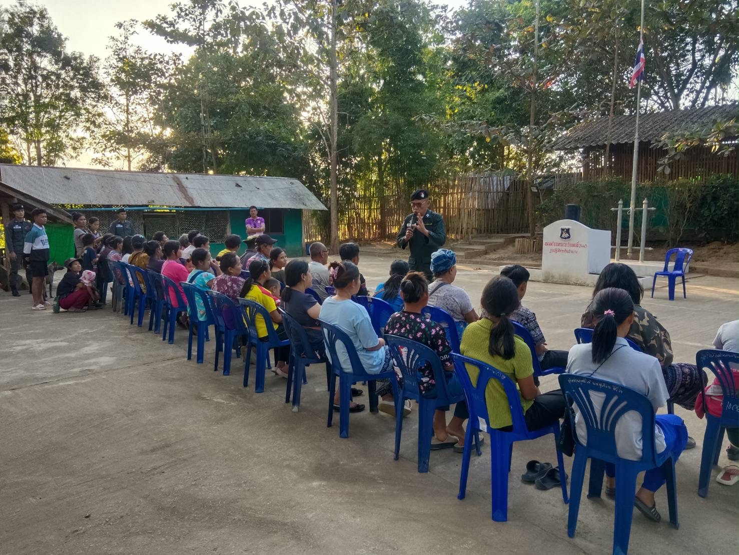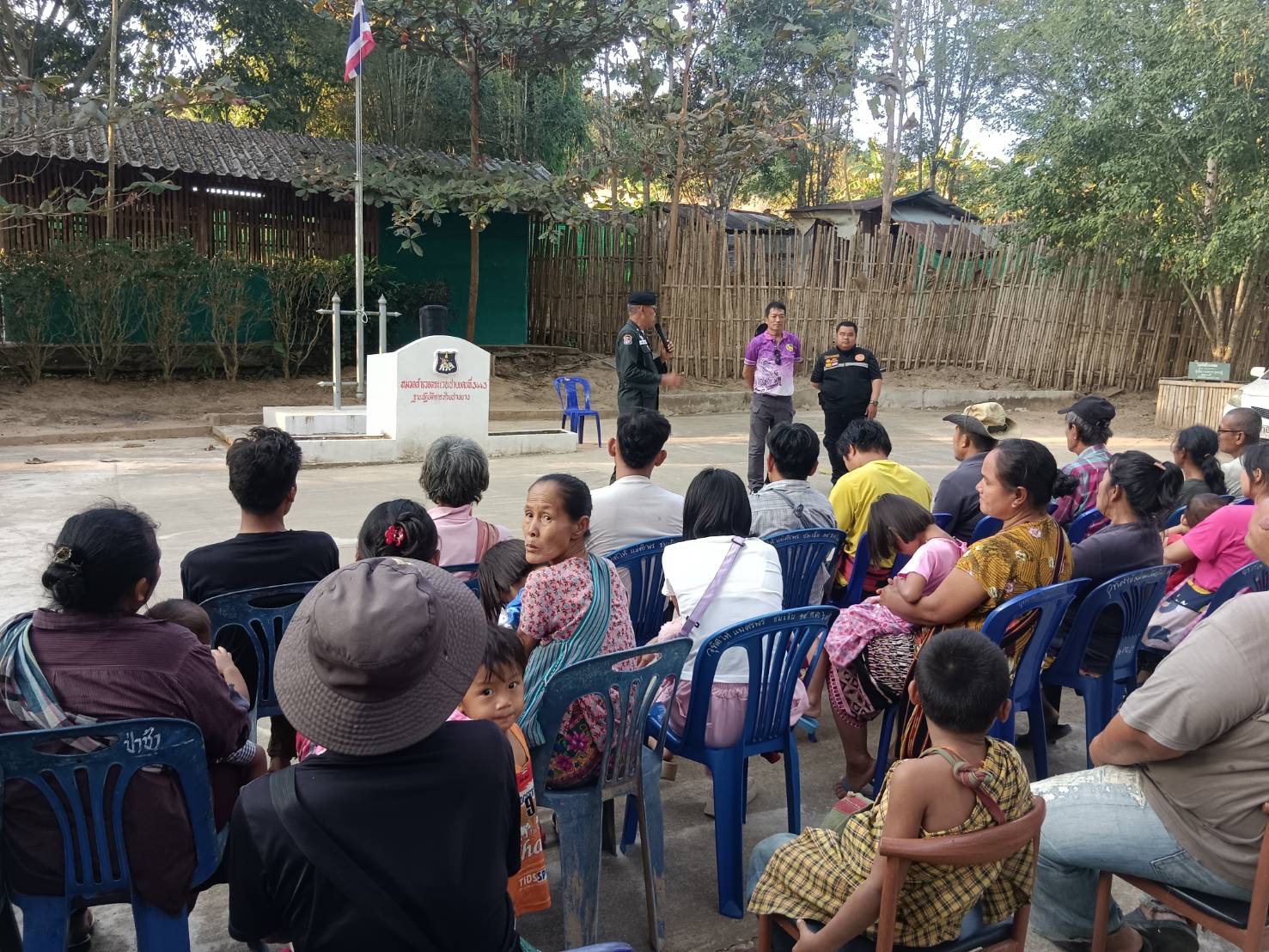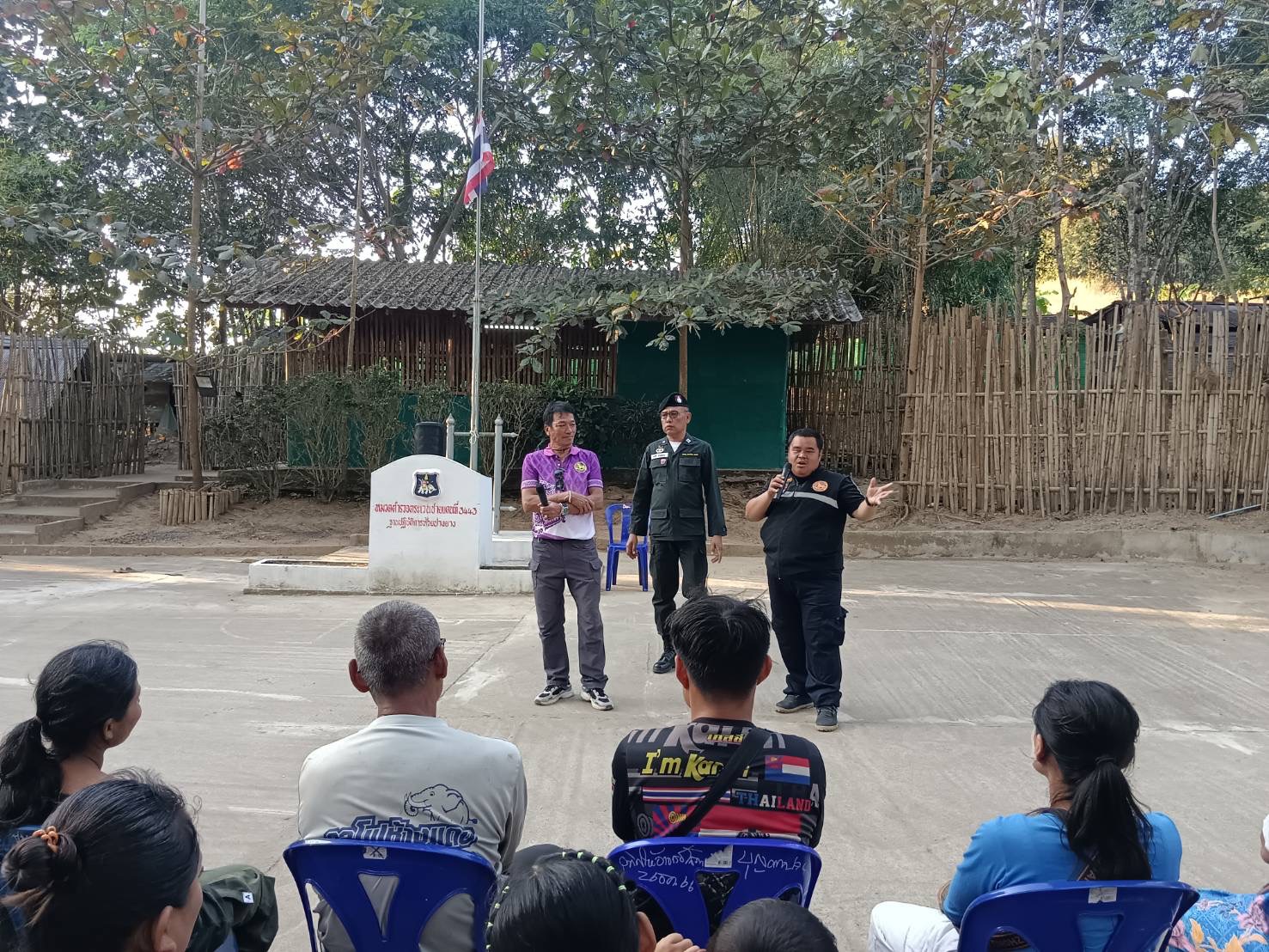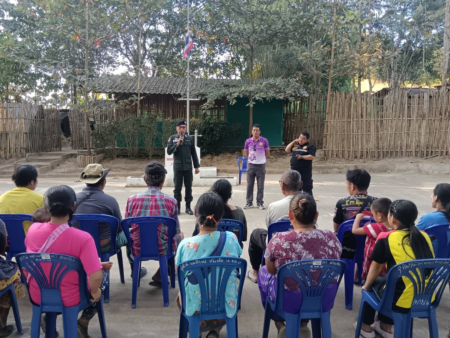 ร.ต.ต.ศักดิ์ สายทอง รองฯ รรท.ผบ.มว.ตชด.3443 พร้อม นาย สุชาติ กาวงศ์ ผญบ.ม.2 ต.แม่ต้าน อ.ท่าสองยาง จว.ตาก ประชุมชี้แจงประชาชน เรื่องมาตรการควบคุมไฟป่า