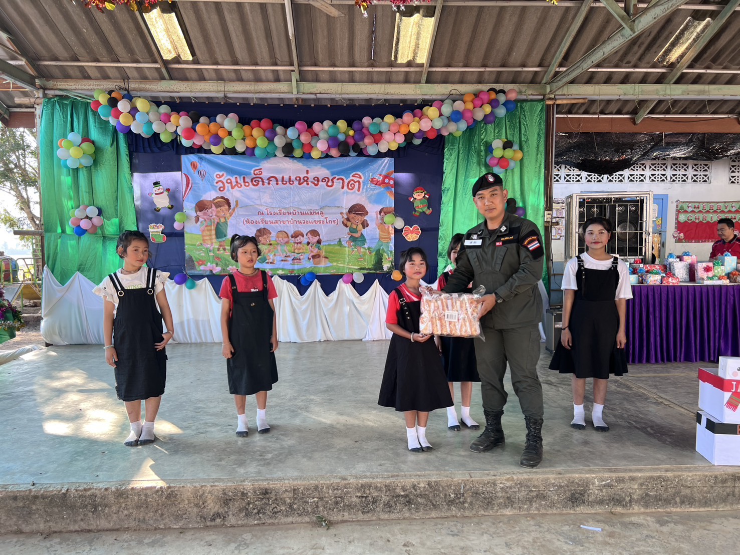 เมื่อ 080900 ม.ค.69 มว.ตชด.3444 จัดให้ ส.ต.ต.ธนากร จีนวงศ์ พร้อมพวกรวม 3 นาย ได้เดินทางไปเข้าร่วมกิจกรรมงานวันเด็กแห่งชาติ และได้มอบขนมและของรางวัล ณ โรงเรียนบ้านวะแขระโกร(สาขาโรงเรียนบ้านแม่พลู) ต.แม่อุสุ อ.ท่าสองยาง จ.ตาก มีคณะครูนักเรียนและผู้ปกครองเข้าร่วมกิจกรรมประมาณ 150 คน
