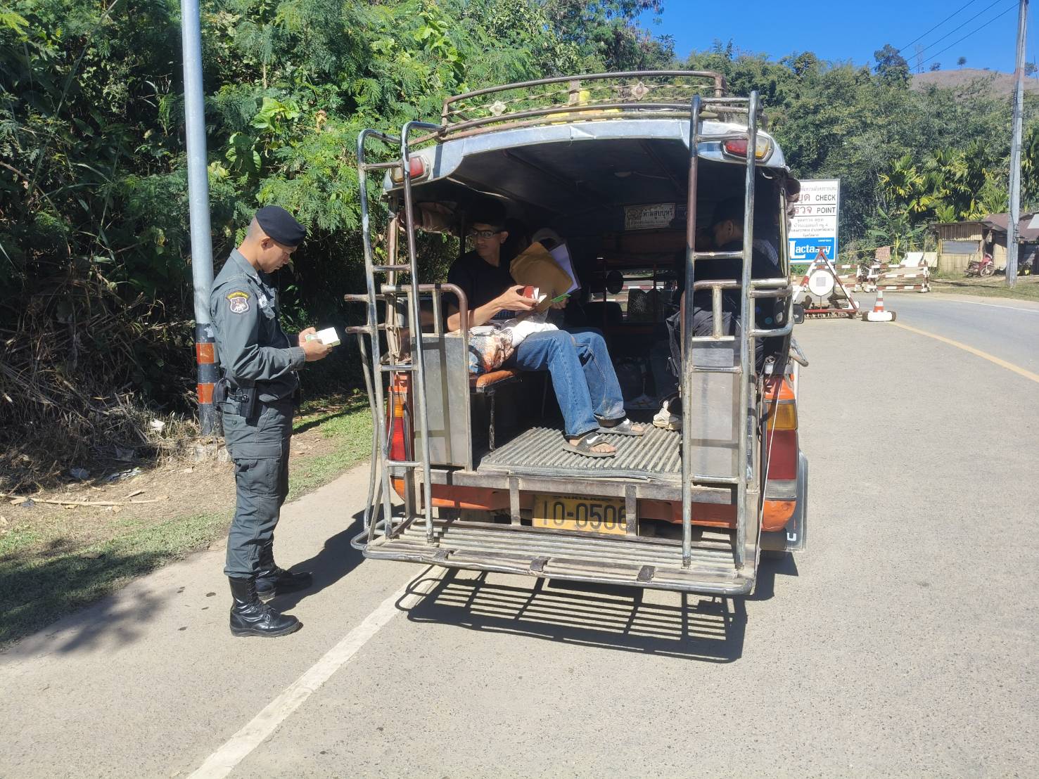 เมื่อ 090800 - 100759 ม.ค.69 ชฝต.บ้านแม่อมกิ​จัด กพ.3 นาย ร่วมกับ เจ้าหน้าที่สารวัตรปศุสัตว์ จ.ชัยนาท ทำการตั้งจุดตรวจ-จุดสกัด บนทางหลวงหมายเลข 105 (แม่สอด-แม่สะเรียง) บริเวณหน้าจุดตรวจบ้านแม่อมกิ ม.4 ต.แม่วะหลวง อ.ท่าสองยาง จ.ตาก เพื่อป้องกันปราบปรามอาชญากรรมสำคัญ การลักลอบลำเลียงยาเสพติด สารตั้งต้นและเคมีภัณฑ์,การปราบปรามคนร้ายข้ามชาติและเข้าเมืองโดยผิดกฎหมาย ป้องกันและควบคุมการลักลอบเคลื่อนย้ายสัตว์และซากสัตว์ ประชาสัมพันธ์ให้ประชาชนได้รับทราบ