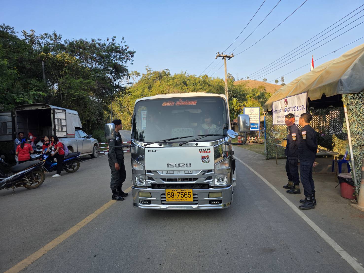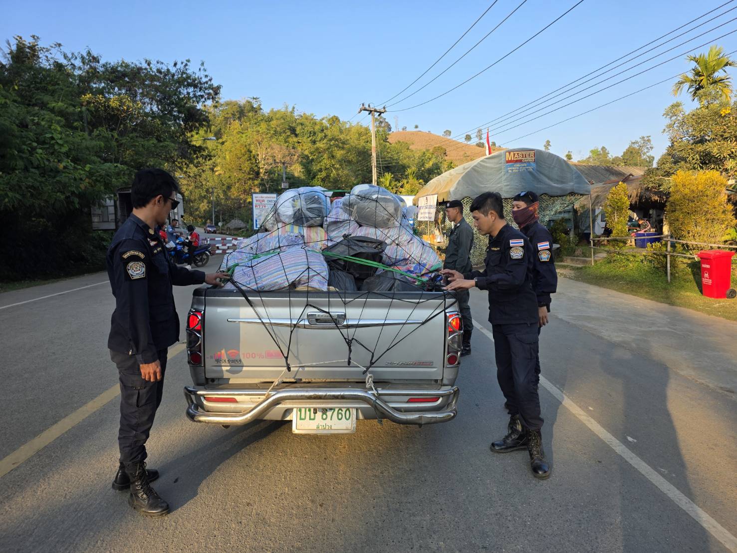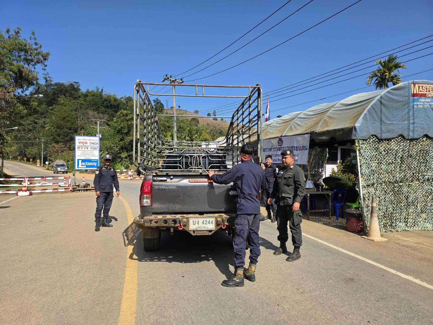 เมื่อ 130800 - 140759 ม.ค. 69 ชฝต.บ้านแม่อมกิจัด กพ. 3 นาย ร่วมกับ เจ้าหน้าที่สารวัตรปศุสัตว์ จ.ชัยนาท ทำการตั้งจุดตรวจ-จุดสกัด บนทางหลวงหมายเลข 105 (แม่สอด-แม่สะเรียง) บริเวณหน้าจุดตรวจบ้านแม่อมกิ ม.4 ต.แม่วะหลวง อ.ท่าสองยาง จ.ตาก เพื่อป้องกันปราบปรามอาชญากรรมสำคัญ การลักลอบลำเลียงยาเสพติด สารตั้งต้นและเคมีภัณฑ์,การปราบปรามคนร้ายข้ามชาติและเข้าเมืองโดยผิดกฎหมาย ป้องกันและควบคุมการลักลอบเคลื่อนย้ายสัตว์และซากสัตว์ ประชาสัมพันธ์ให้ประชาชนได้รับทราบ