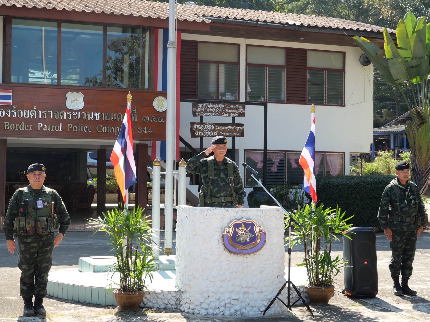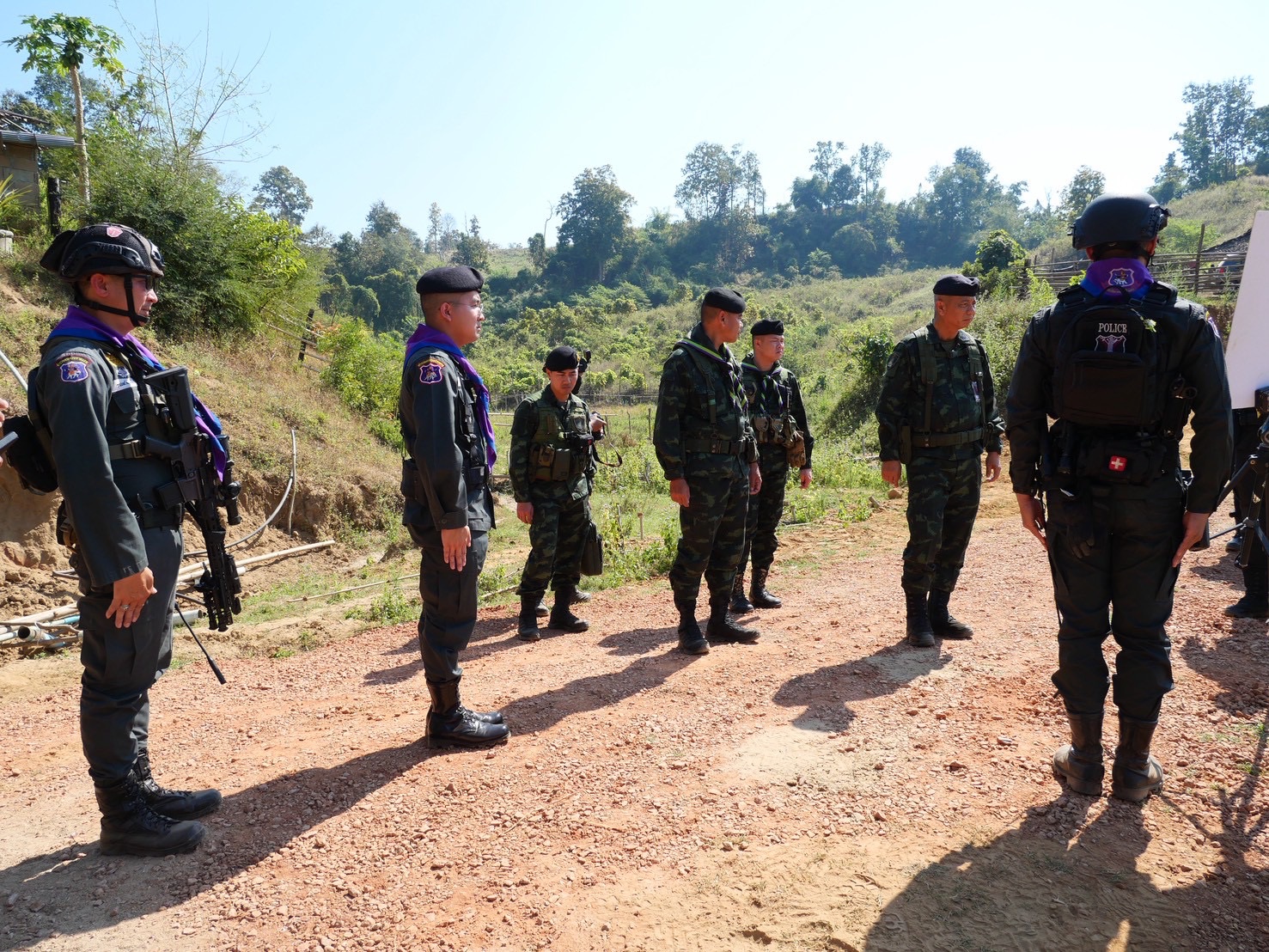 - เวลา 10.30 - 11.50 น. ได้เดินทางมาตรวจเยี่ยม มว.ตชด.3442 (ฐานปฏิบัติการบ้านแม่หละยาง) พบ ว่าที่ ร.ต.ท.ธนพนธ์ บุญสุข ผบ.มว.ตชด.3442 พร้อมกำลังพลให้การต้อนรับ พร้อมตรวจท่าข้ามในพื้นที่รับผิดชอบ พร้อมรับฟังบรรยายสรุปสถานการณ์ในพื้นที่