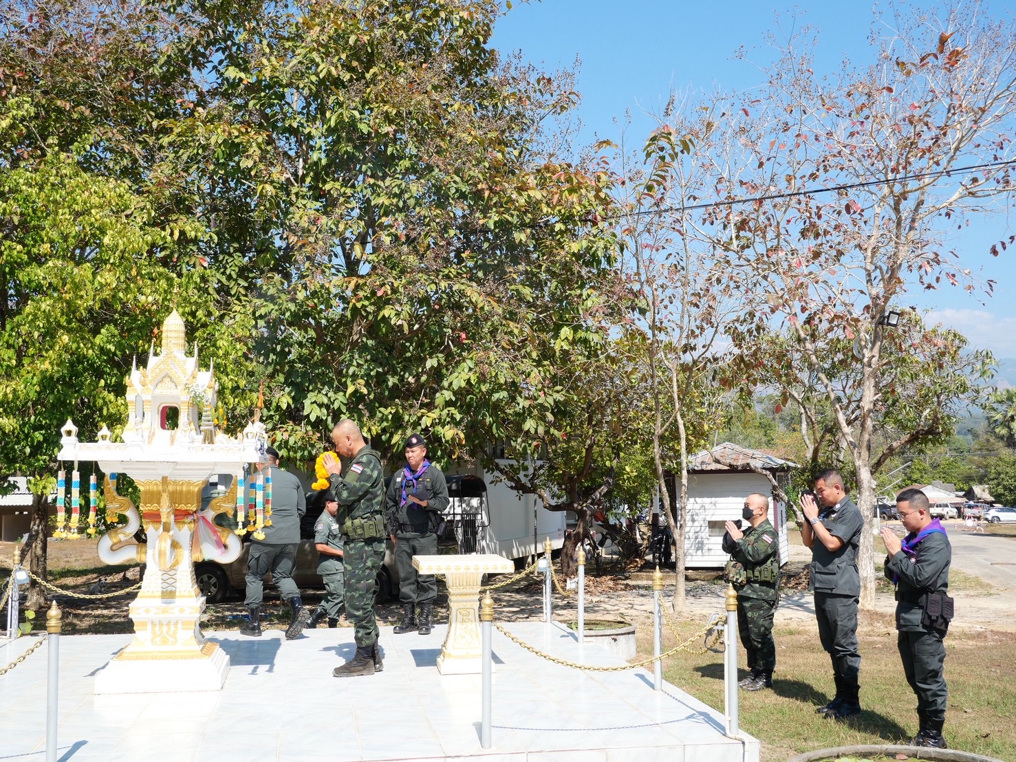 - เวลา 12.30 - 12.59 น.เดินทางตรวจเยี่ยม มว.ตชด.3443 (ฐานปฏิบัติการห้วยปางยาง) โดยมี ร.ต.ต.ศักดิ์ สายทอง รอง ผบ.มว.ฯ รรท.ผบ.มว.ตชด.3443 พร้อมกำลังพลให้การต้อนรับ ได้เดินทางตรวจท่าข้ามในพื้นที่รับผิดชอบ พร้อมรับฟังบรรยายสรุปสถานการณ์ในพื้นที่