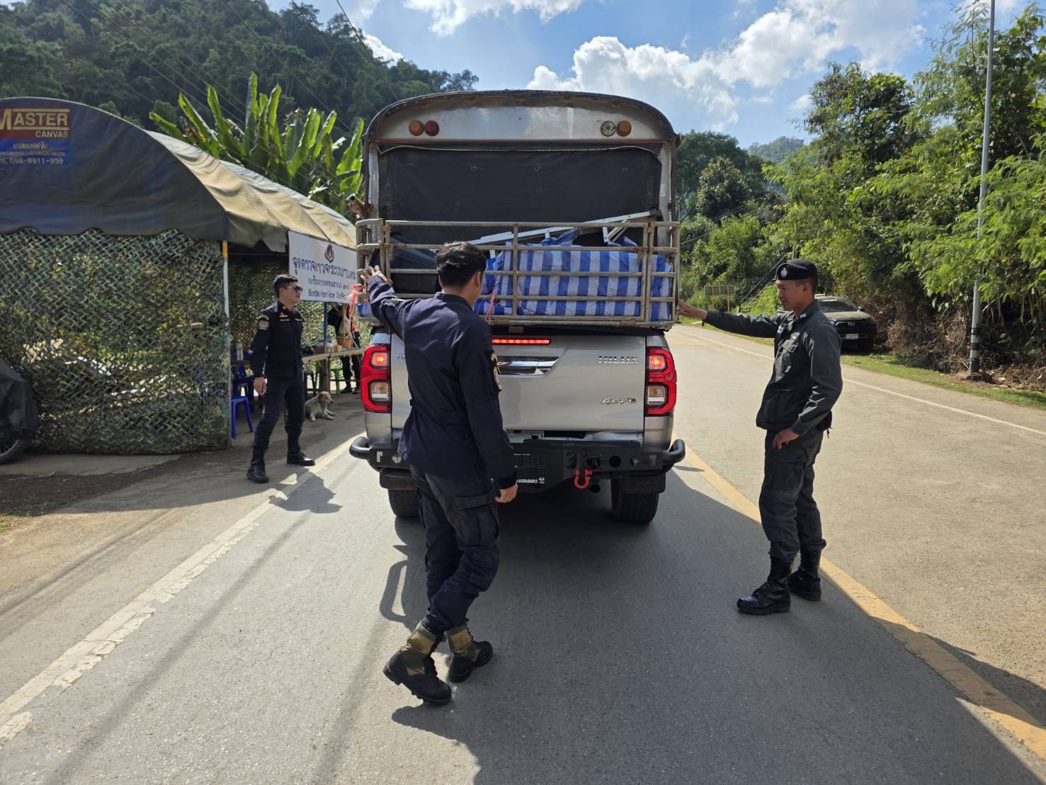 เมื่อ 160800-170759 ม.ค.69 ชฝต.บ้านแม่อมกิจัด กพ 3 นาย ร่วมกับ เจ้าหน้าที่สารวัตรปศุสัตว์ จ.ชัยนาท ทำการตั้งจุดตรวจ-จุดสกัด บนทางหลวงหมายเลข 105 (แม่สอด-แม่สะเรียง) บริเวณหน้าจุดตรวจบ้านแม่อมกิ ม.4 ต.แม่วะหลวง อ.ท่าสองยาง จ.ตาก เพื่อป้องกันปราบปรามอาชญากรรมสำคัญ การลักลอบลำเลียงยาเสพติด สารตั้งต้นและเคมีภัณฑ์,การปราบปรามคนร้ายข้ามชาติและเข้าเมืองโดยผิดกฎหมาย ป้องกันและควบคุมการลักลอบเคลื่อนย้ายสัตว์และซากสัตว์ ประชาสัมพันธ์ให้ประชาชนได้รับทราบ