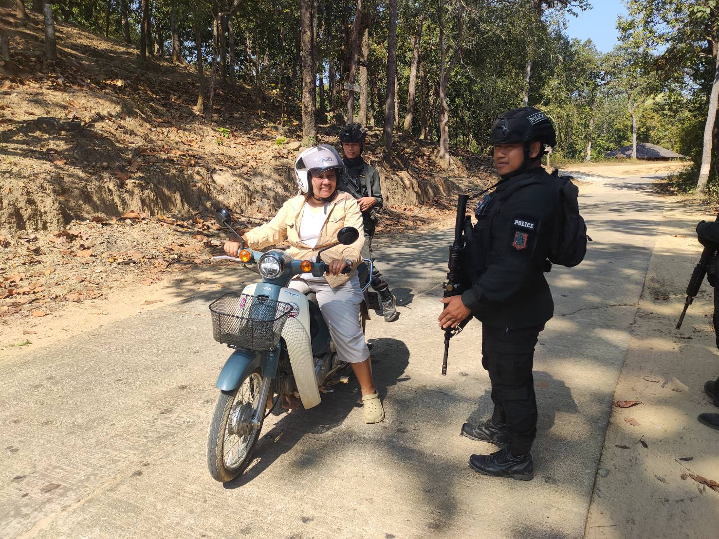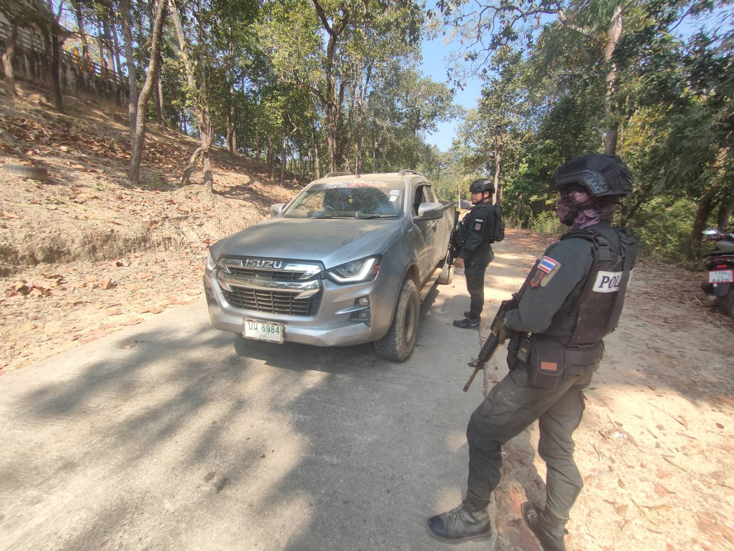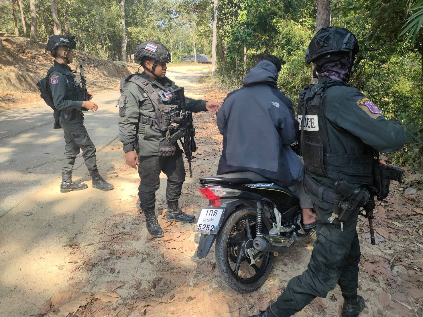 เมื่อ 221200 ม.ค. 69 มว.ตชด.3443 จัดให้ จ.ส.ต.เจษฎา ธนปัด พร้อม กพ. รวม 4 นาย ตั้งจุดสกัด บริเวณเส้นทางรอง บ.เเม่ต้าน ม.1 - บ้านแม่โพ ม.7 ต. แม่ต้าน อ.ท่าสองยาง จว.ตาก (วัดห้วยลึก) พิกัด 47QMV1975805573 พร้อมออกตรวจใน พท.ฯ ม.2 ต.แม่ต้าน อ.ท่าสองยาง จว.ตาก ตามเส้นทาง/ช่องทาง/ท่าข้าม และ พท.สุ่มเสี่ยงก่ออาชญากรรม เพื่อป้องปรามการกระทำผิดกฎหมายตาม พ.ร.บ.ที่มีโทษทางอาญา สกัดกั้นการลักลอบนำเข้า -ส่งออก พืชผลทางการเกษตร สินค้าหนีภาษี และแรงงานต่างด้าวเข้าเมืองโดยผิดกฎหมาย ตรวจสอบเครือข่ายแก๊งคอลเซ็นเตอร์ และป้องกันการลักลอบลำเลียงยาเสพติด สารตั้งต้น และเคมีภัณฑ์