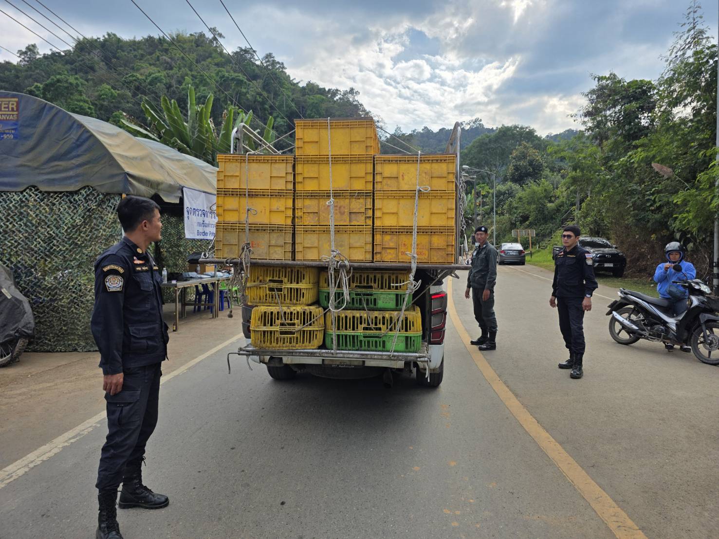 เมื่อ 240800-250759 ม.ค.69 ชฝต.บ้านแม่อมกิจัด กพ 3 นาย ร่วมกับ เจ้าหน้าที่สารวัตรปศุสัตว์ จ.ชัยนาท ทำการตั้งจุดตรวจ-จุดสกัด บนทางหลวงหมายเลข 105 (แม่สอด-แม่สะเรียง) บริเวณหน้าจุดตรวจบ้านแม่อมกิ ม.4 ต.แม่วะหลวง อ.ท่าสองยาง จ.ตาก เพื่อป้องกันปราบปรามอาชญากรรมสำคัญ การลักลอบลำเลียงยาเสพติด สารตั้งต้นและเคมีภัณฑ์,การปราบปรามคนร้ายข้ามชาติและเข้าเมืองโดยผิดกฎหมาย ป้องกันและควบคุมการลักลอบเคลื่อนย้ายสัตว์และซากสัตว์ ประชาสัมพันธ์ให้ประชาชนได้รับทราบ