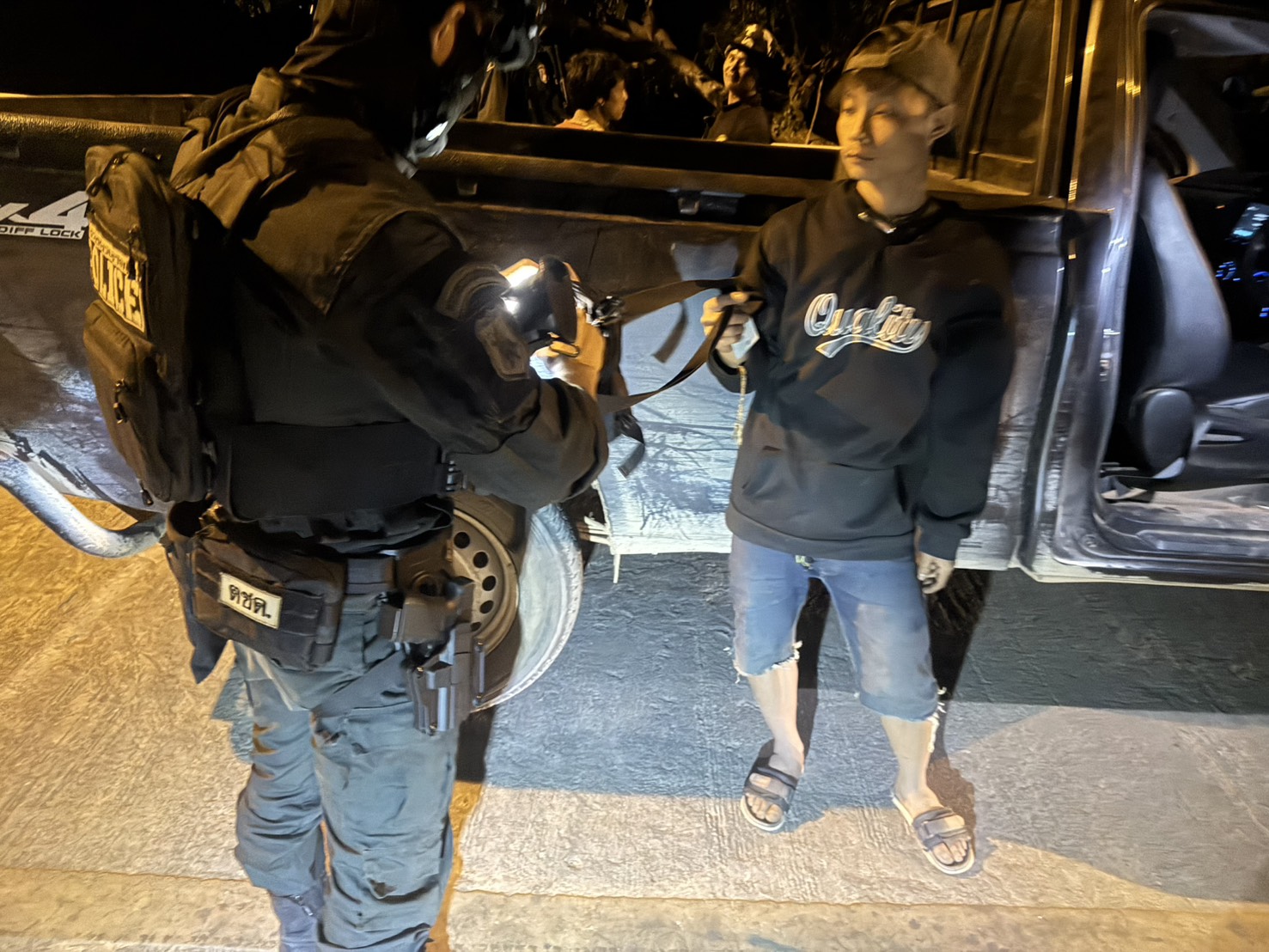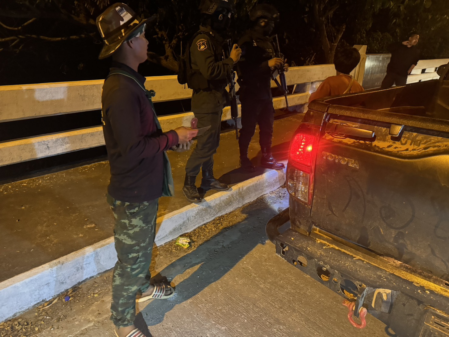 เมื่อ 262000 ม.ค. 69 มว.ตชด.3443 จัดให้ส.ต.ต.ธิบดินทร์ สมบัติทอง พร้อม กพ. รวม 4 นาย ออกตรวจในพท.ฯ ม.1 ,ม.2ต.แม่ต้าน อ.ท่าสองยาง จว.ตาก ตามเส้นทาง/ช่องทาง/ท่าข้ามและ พท.สุ่มเสี่ยงก่ออาชญากรรม เพื่อ ตรวจสอบ /ป้องกัน /ป้องปราม การลักลอบนําเข้า - ส่งออก ของโค ,สุกร ,พืชผลทางการเกษตร ,แรงงานต่างด้าว ,เฝ้าระวังการรุกล้ำอธิปไตย ของ กกล. ต่างชาติ และการกระทำผิดตาม พรบ. ที่มีโทษทางอาญา ตรวจสอบเครือข่ายแก็งคอลเซ็นเตอร์ฯ เพื่อป้องกันการลักลอบเข้า/ออกราชอาณาจักรโดยผิดกฎหมาย การลักลอบขนน้ำมันเชื้อเพลิงออกนอกราชอาณาจักร ป้องกันการลักลอบลำเลียงยาเสพติด สารตั้งต้น และเคมีภัณฑ์