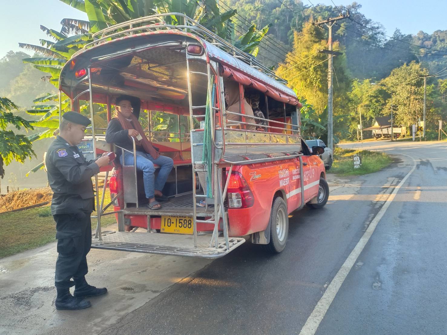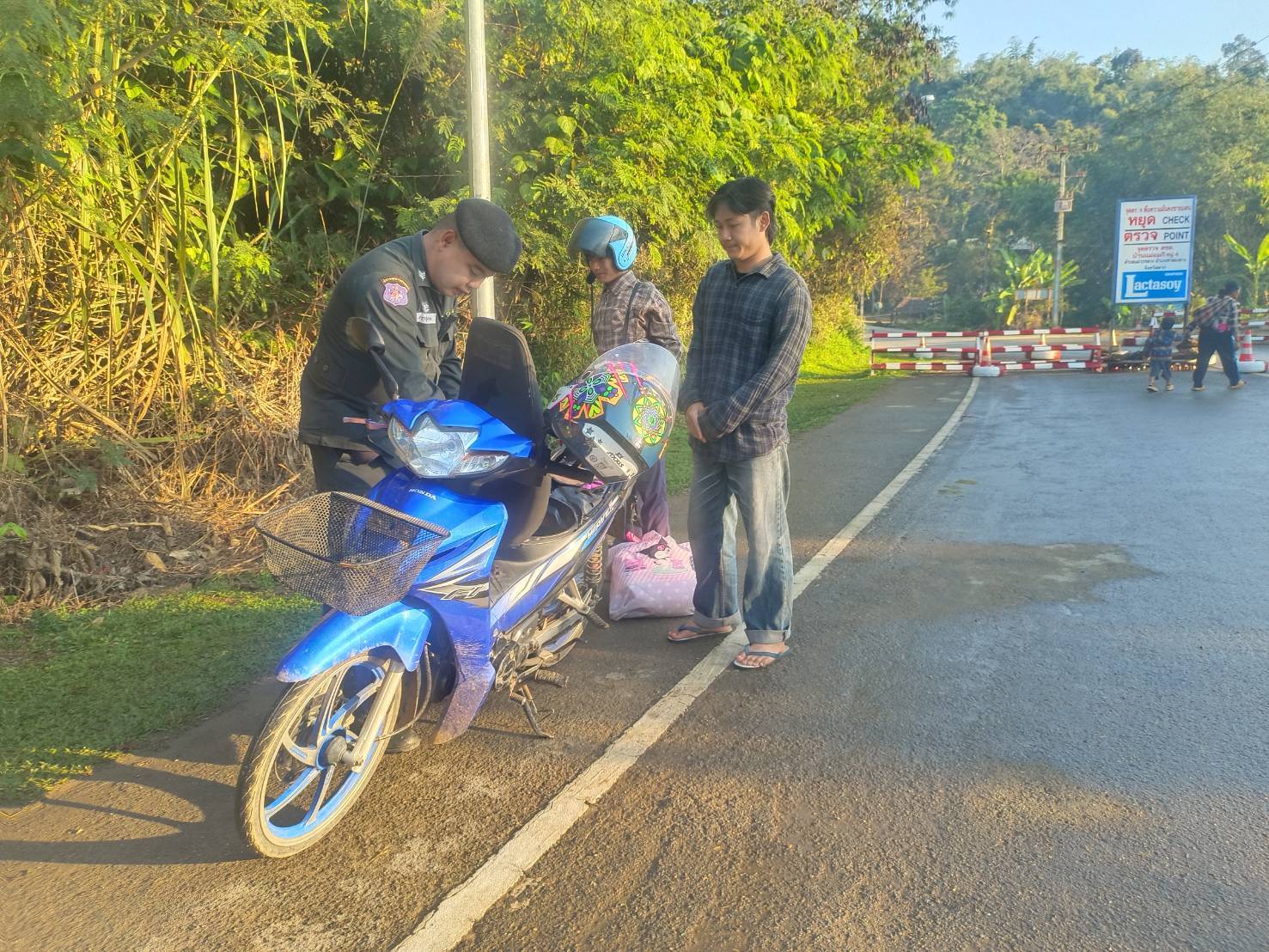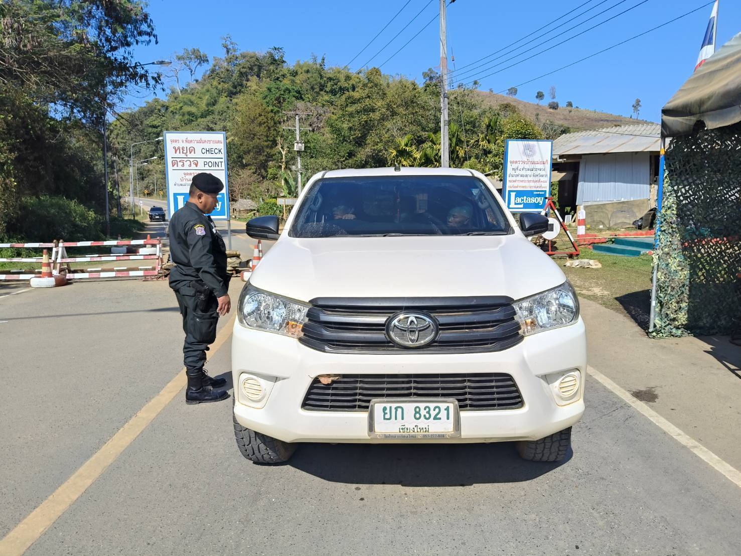 เมื่อ 310800-010759 ก.พ.69 ชฝต.บ้านแม่อมกิจัด กพ 3 นาย ทำการตั้งจุดตรวจ-จุดสกัด บนทางหลวงหมายเลข 105 (แม่สอด-แม่สะเรียง) บริเวณหน้าจุดตรวจบ้านแม่อมกิ ม.4 ต.แม่วะหลวง อ.ท่าสองยาง จ.ตาก เพื่อป้องกันปราบปรามอาชญากรรมสำคัญ การลักลอบลำเลียงยาเสพติด สารตั้งต้นและเคมีภัณฑ์,การปราบปรามคนร้ายข้ามชาติและเข้าเมืองโดยผิดกฎหมาย ป้องกันและควบคุมการลักลอบเคลื่อนย้ายสัตว์และซากสัตว์ ประชาสัมพันธ์ให้ประชาชนได้รับทราบ