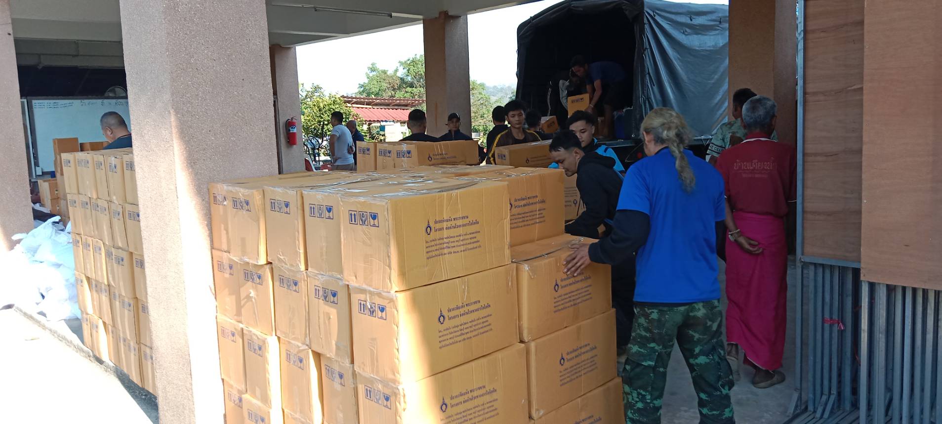 เมื่อ 040900 ก.พ.69 ร้อย ตชด.344 มอบหมายให้ ร.ต.ต.ศรชัย ยอดมิ่ง รอง สว.(ป) กก.ตชด.34 พร้อม กพ.ชุดจิตอาสา ร้อย ตชด.344 จำนวน 3 นาย ช่วยขนสิ่งของพระราชทาน ในโครงการตามพระราชสาร์ต่อต้านโรคขาดสารไอโอโอดิ้น ภายใต้โครงการพัฒนาเด็กและเยาวชนในในถิ่นทรกันดารในสมเด็จพระกนิษฐาธิราชเจ้า กรมสมเด็จพระเทพรัตนราชสุดาฯ สยามบรมราชกมารี ประจำปี 2569 ณ หน้าที่ว่าการอำเภอท่าสองยาง  จังหวัดตาก