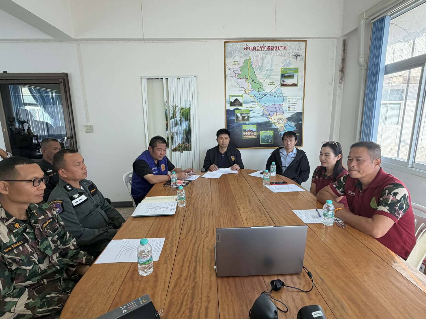 ร้อย ตชด.344 จัด กพ.เข้าร่วมประชุม กับ อำเภอท่าสองยาง เพื่อประชุม ผ่านสื่ออิเล็กทรอนิกส์ กับ กองอำนวยการป้องกันสาธารณภัย จังหวัดตาก เพื่อติดตามสถานการณ์ไฟป่า หมอกควัน และฝุ่นขนาดเล็ก (MP 2.5) ในพื้นที่จังหวัดตาก